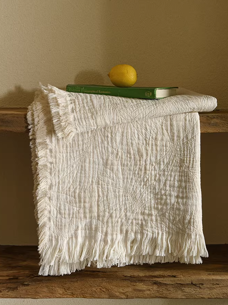 Yarn-Dyed Double-Ply Plants Jacquard Throw Blanket