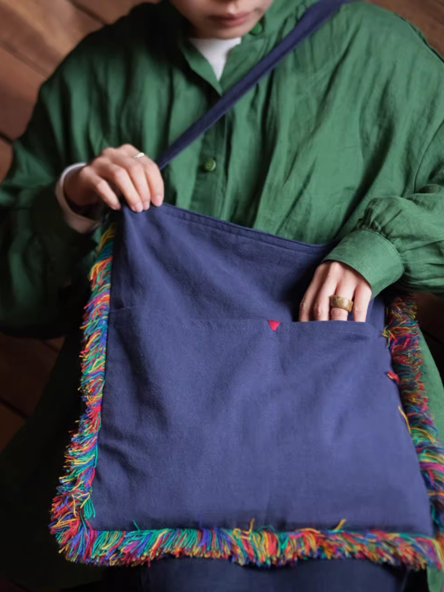 Vintage Navy Blue Rainbow Tassel Shoulder Bag