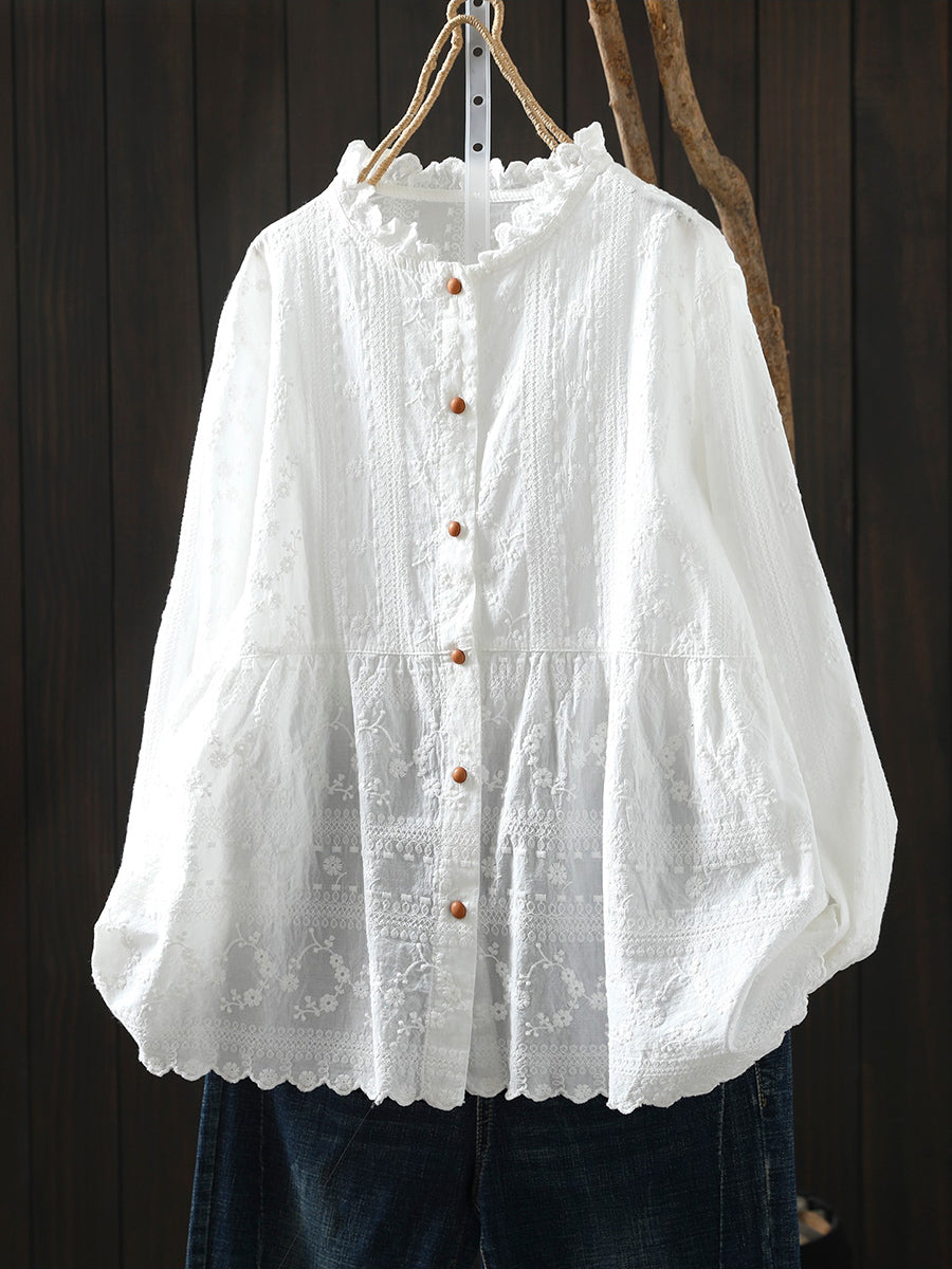Women Artsy Spring Embroidery 100%Cotton Shirt