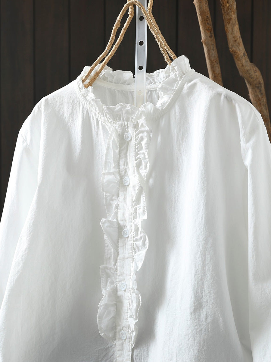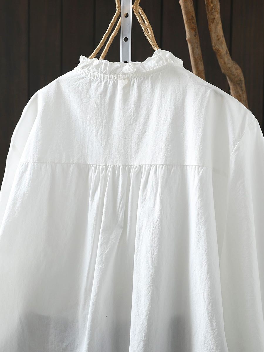 Women Artsy Spring Stand Collar 100%Cotton Shirt