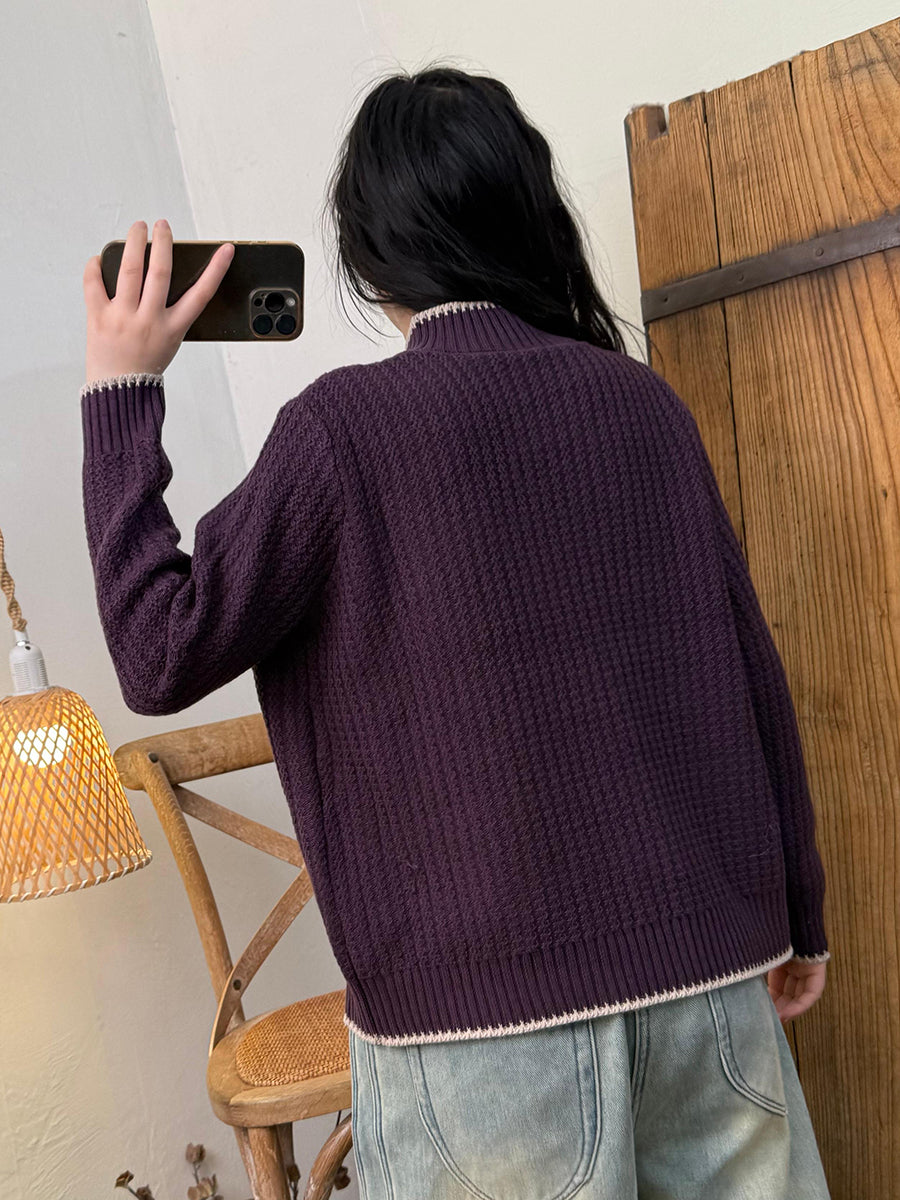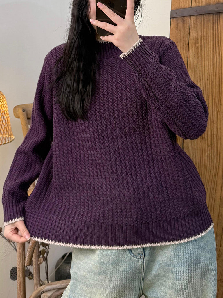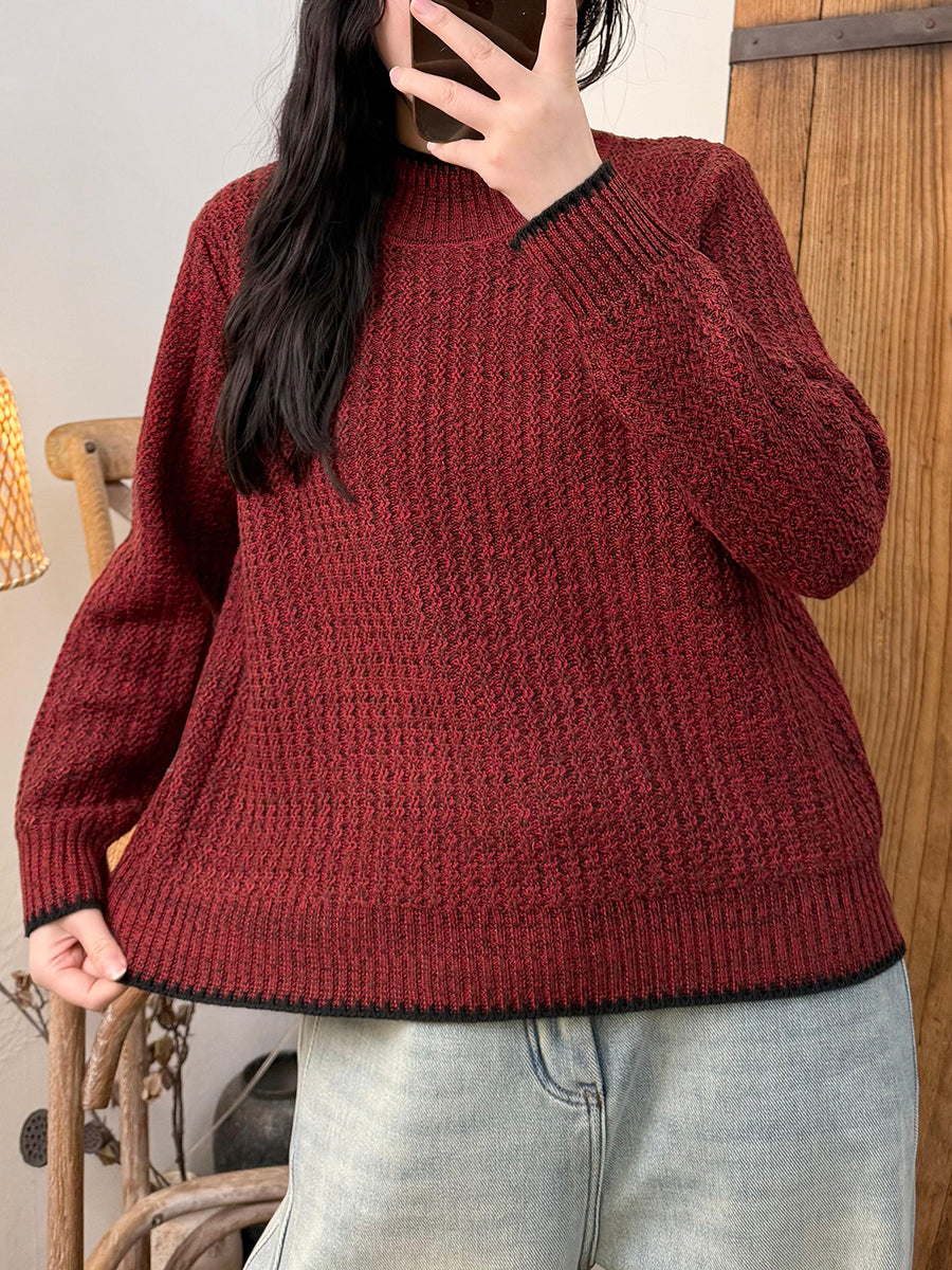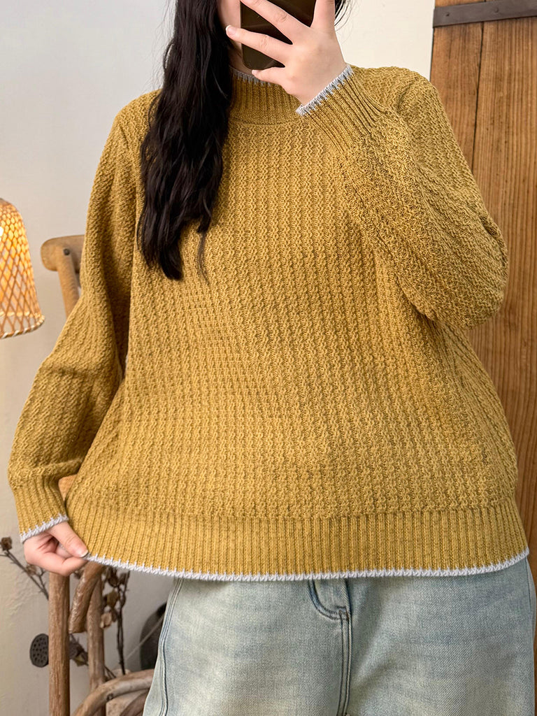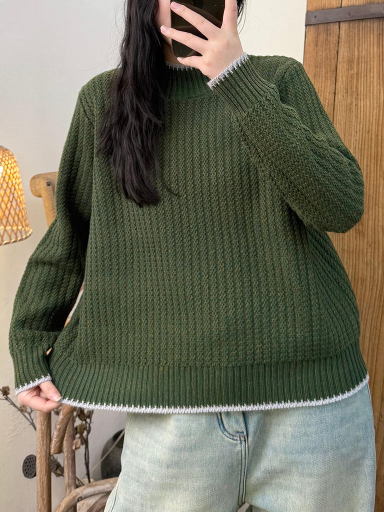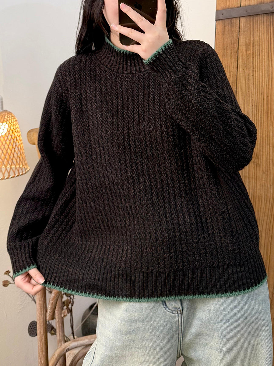 Women Autumn Casual Pure Color Half-Turtleneck Sweater