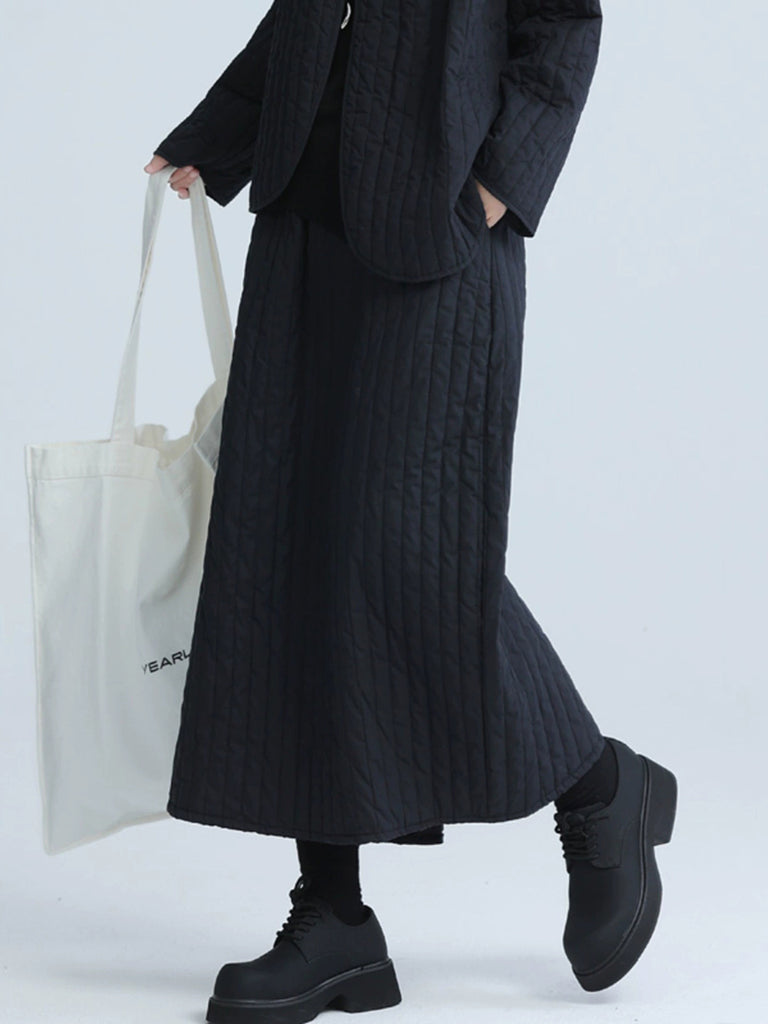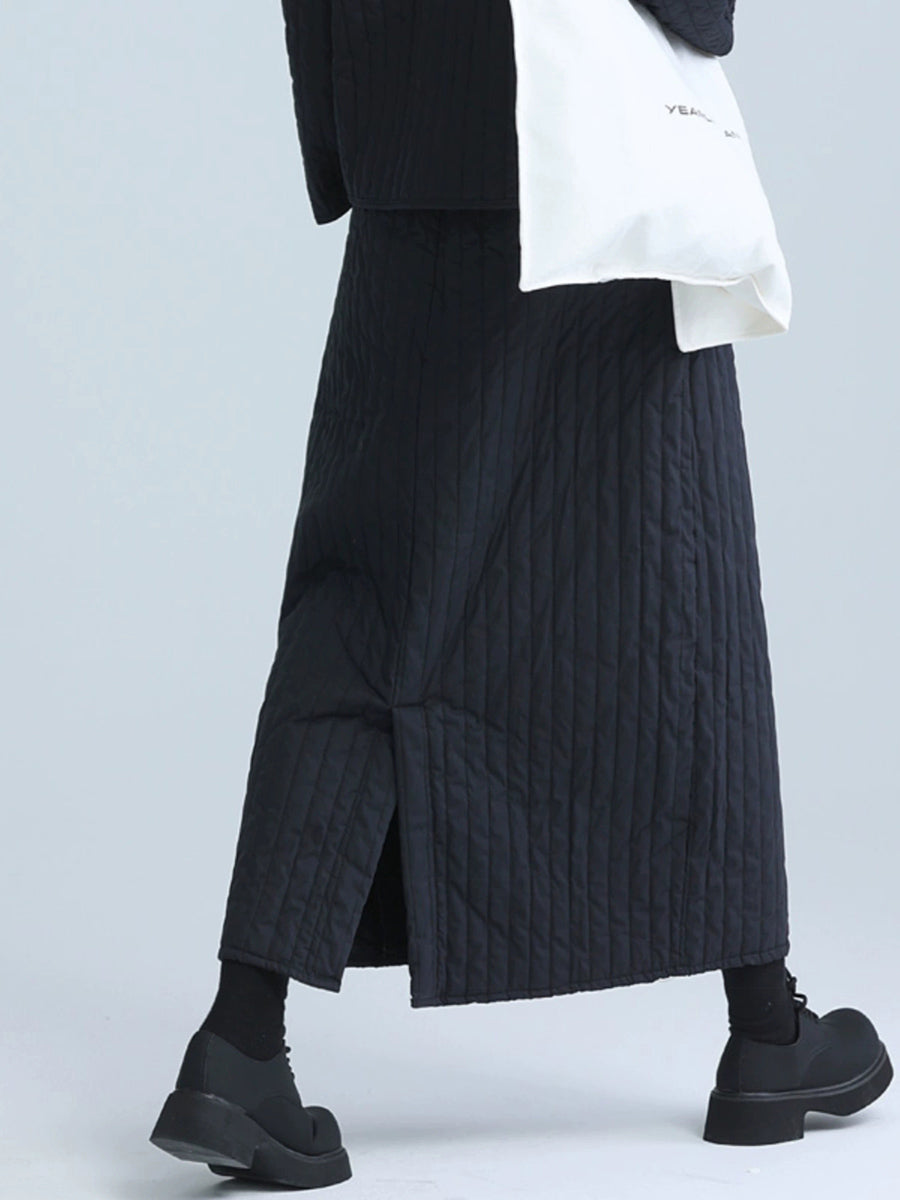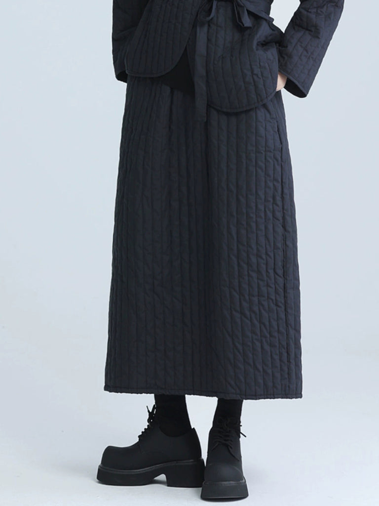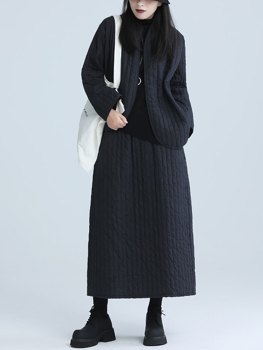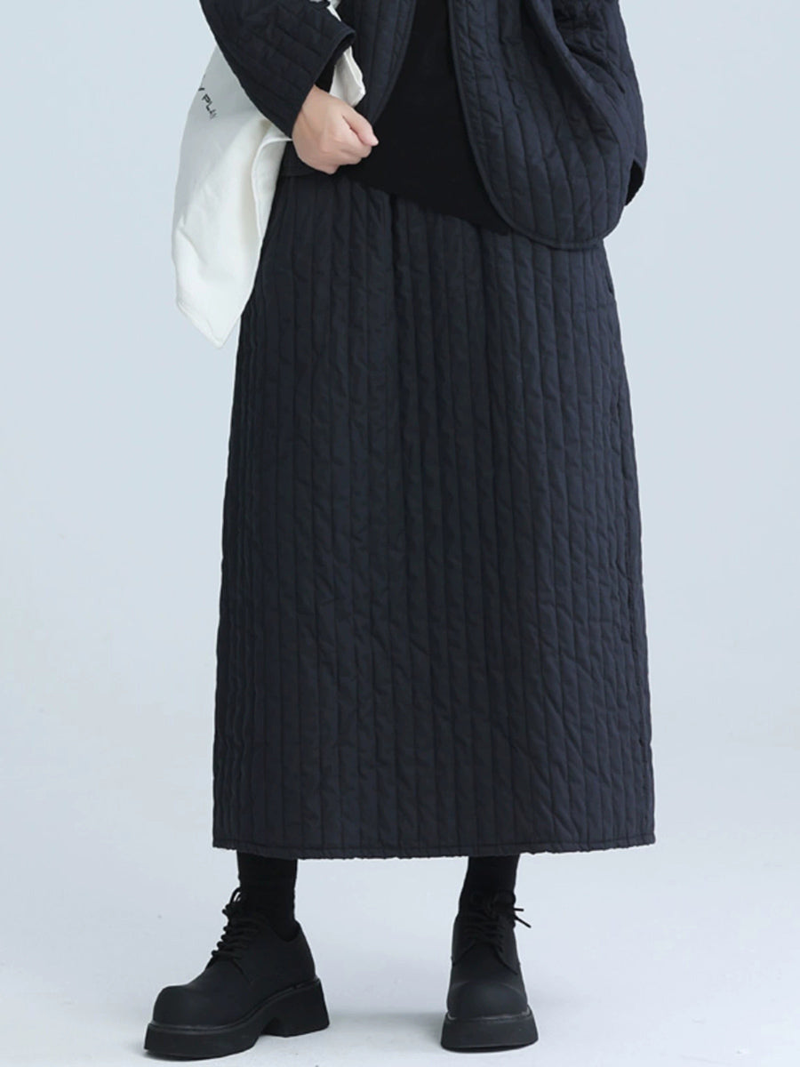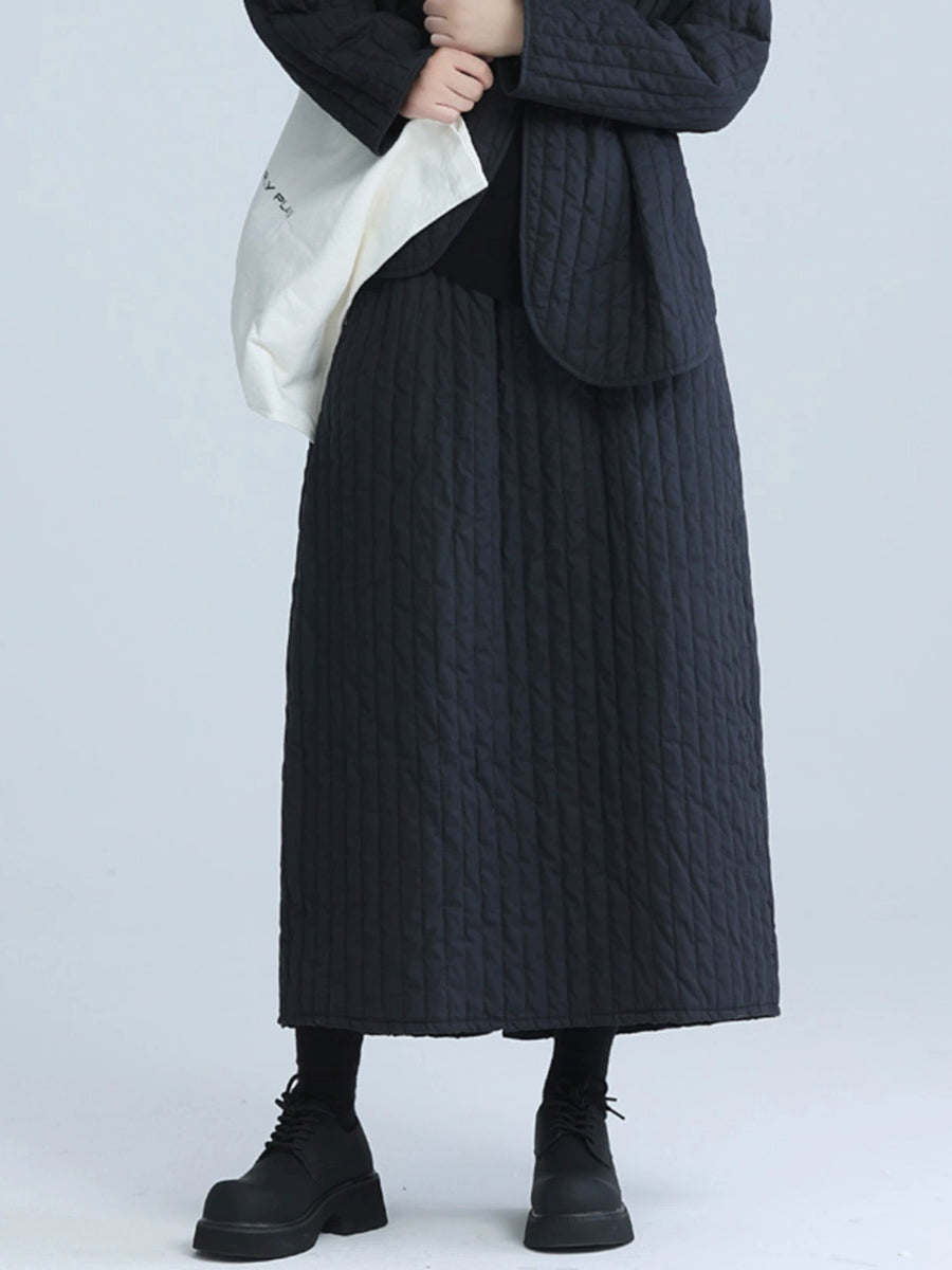 Women Autumn Casual Pure Color Straight Cotton Skirt
