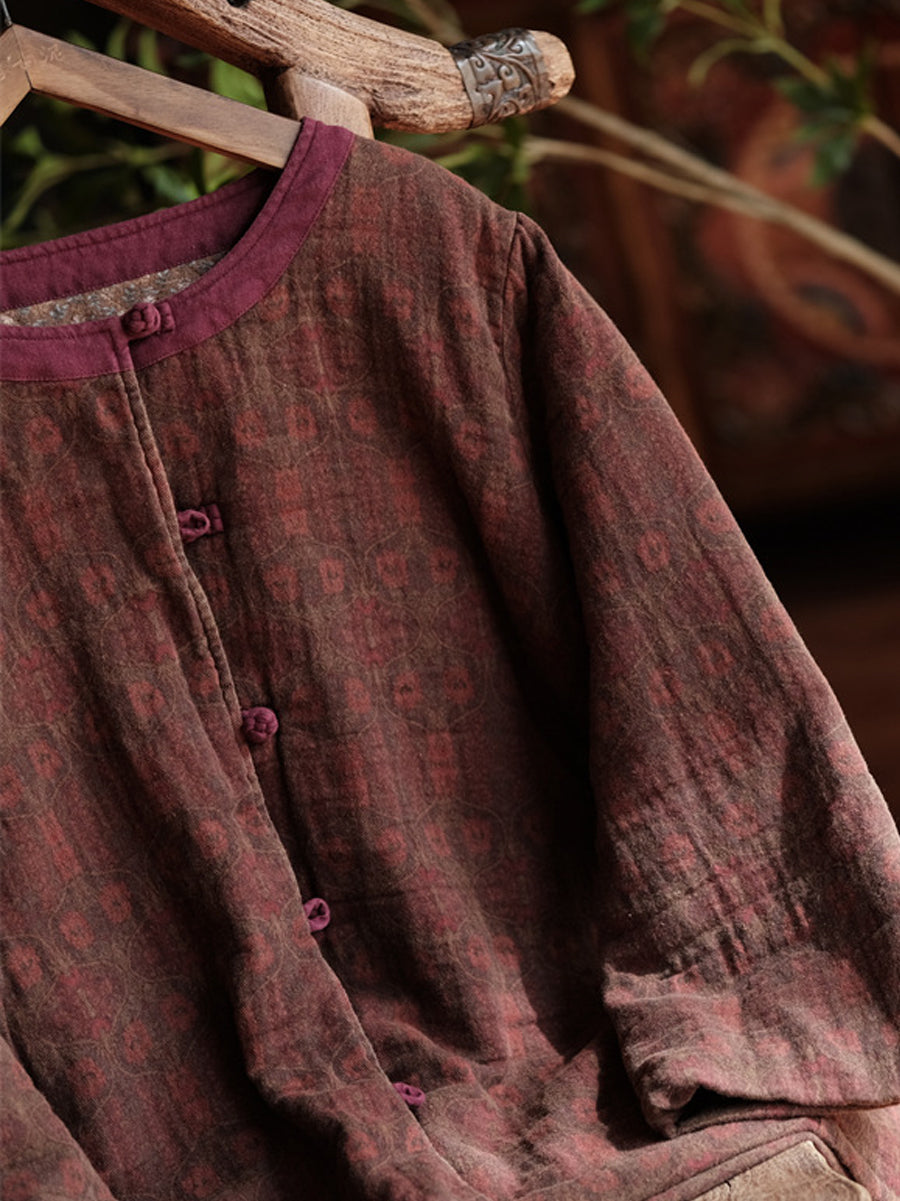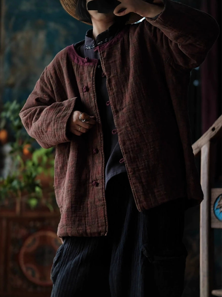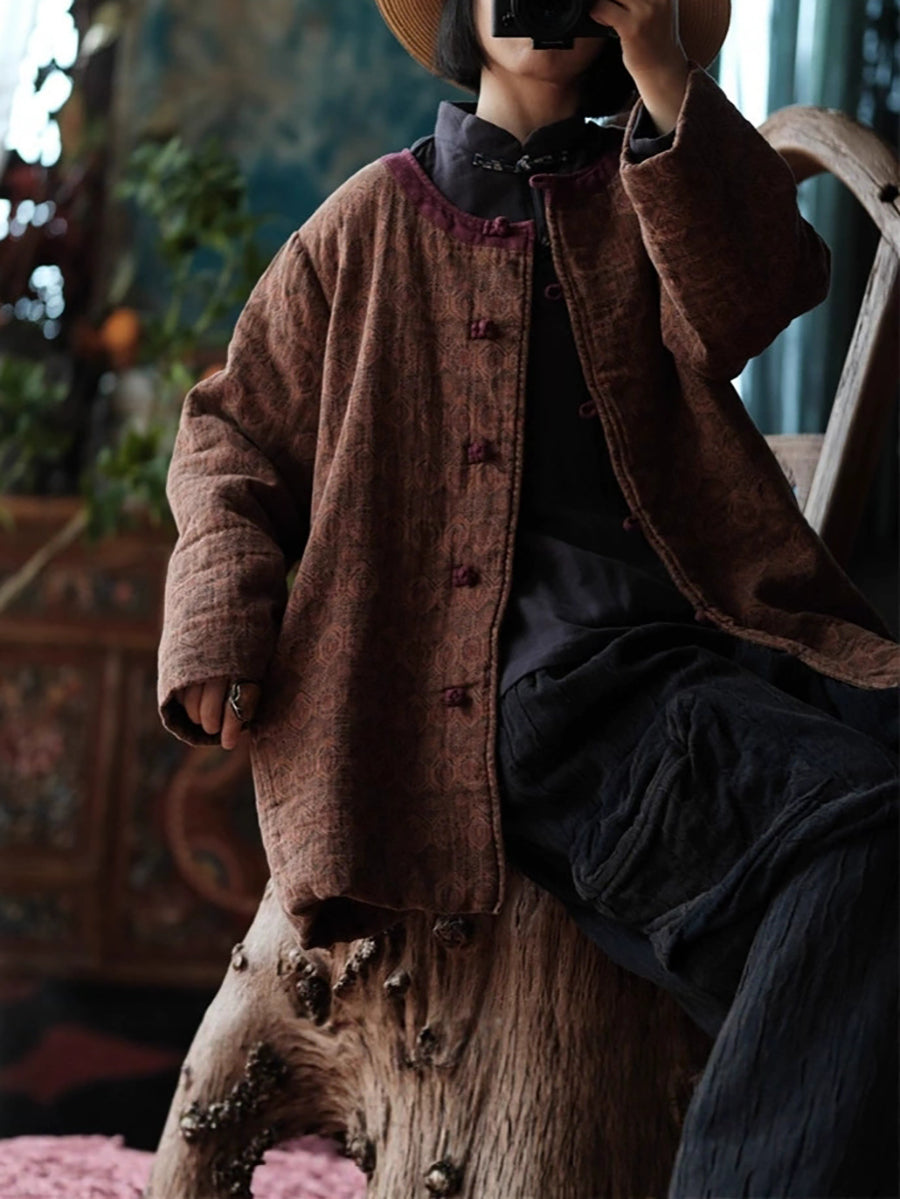 Women Autumn Ethnic Pure Color O-Neck Cotton Padded Coat