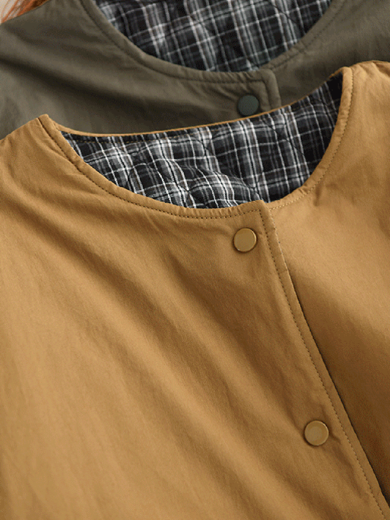 Women Autumn Pure Color 100%Cotton O-Neck Padded Jacket