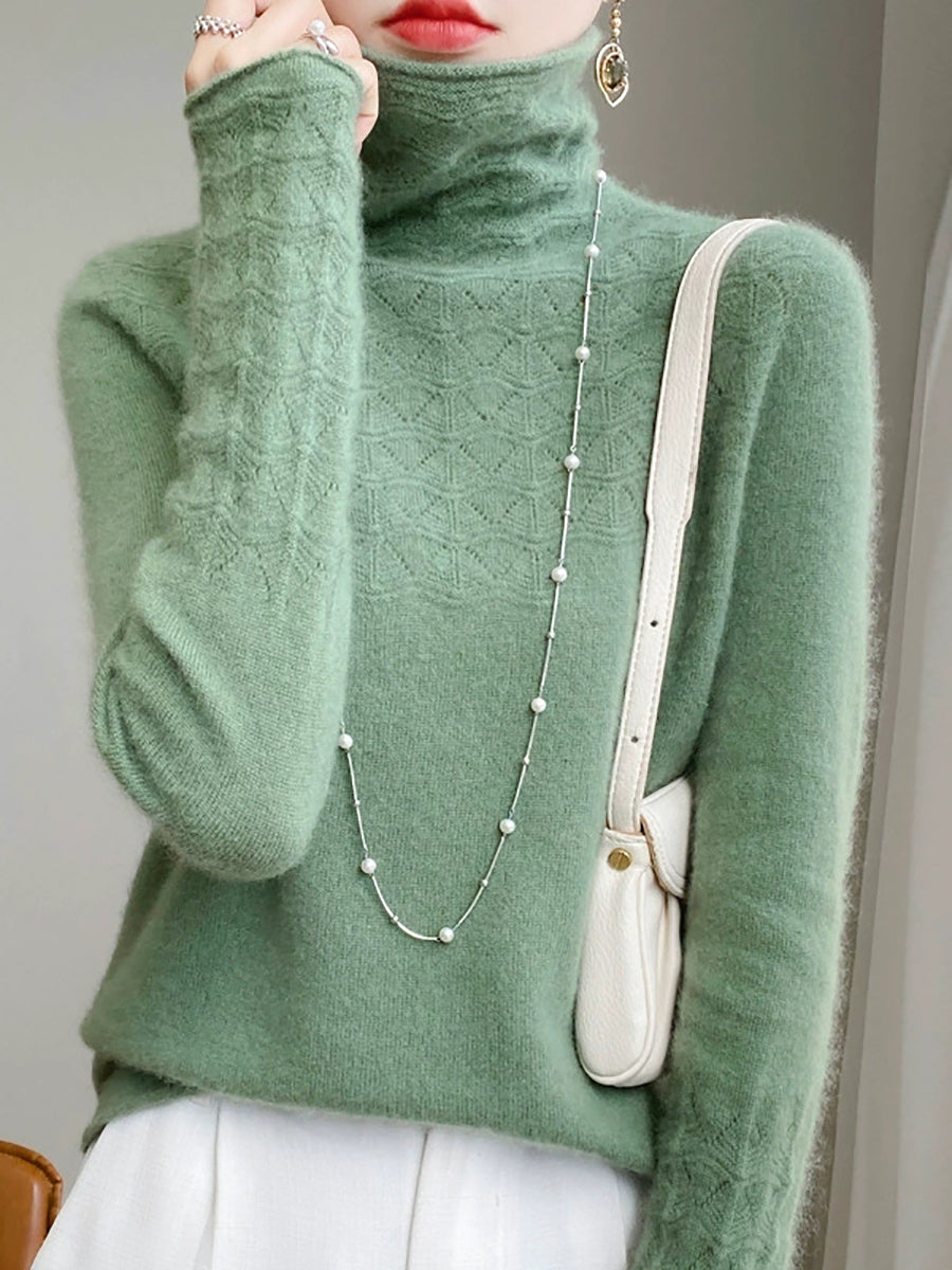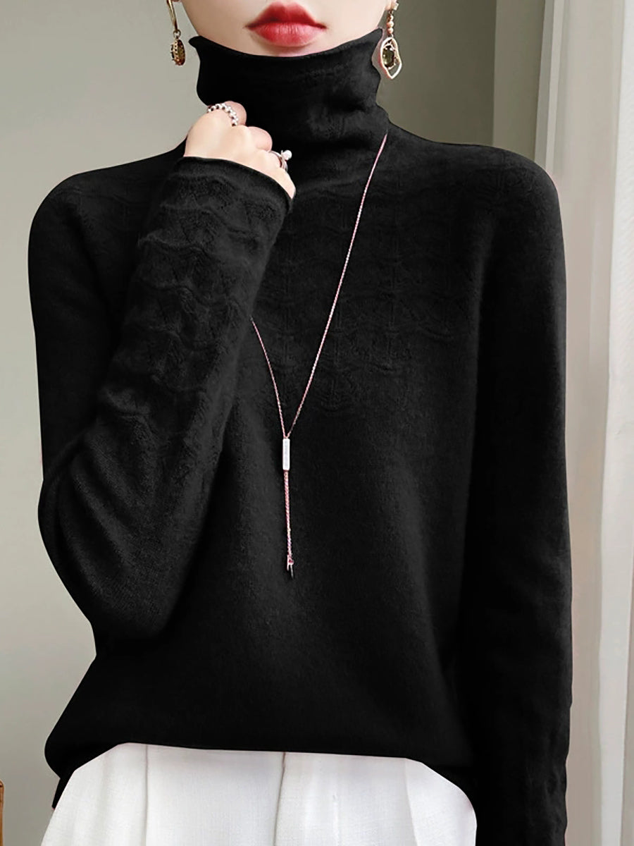 Women Autumn Pure Color Wool Turtleneck Sweater