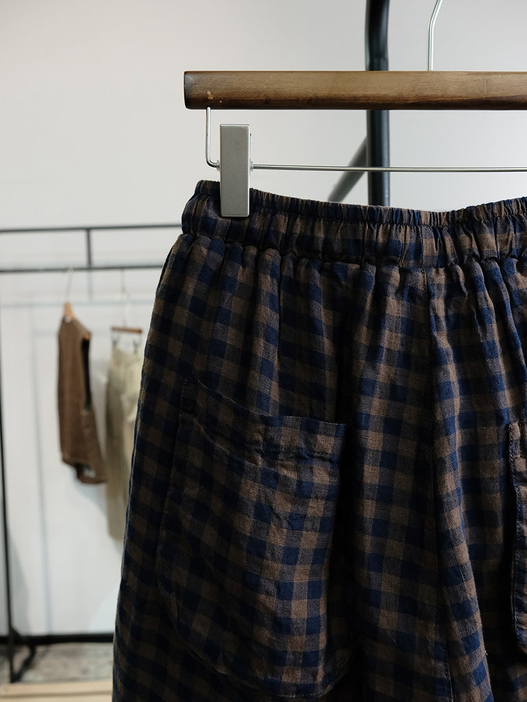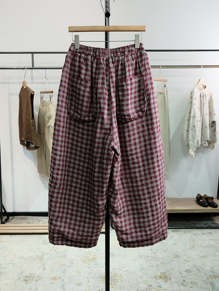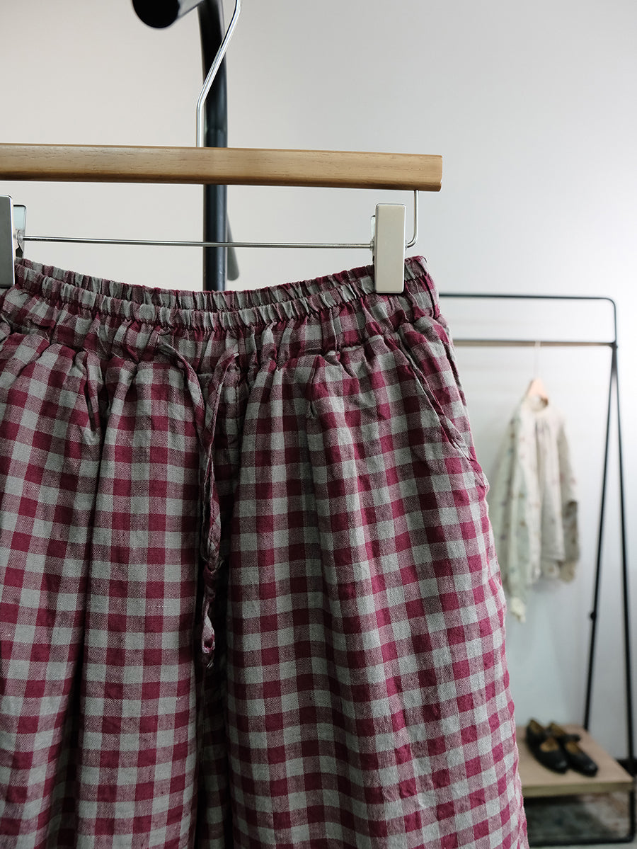 Women Autumn Retro Plaid Thigh Wide-leg Pants