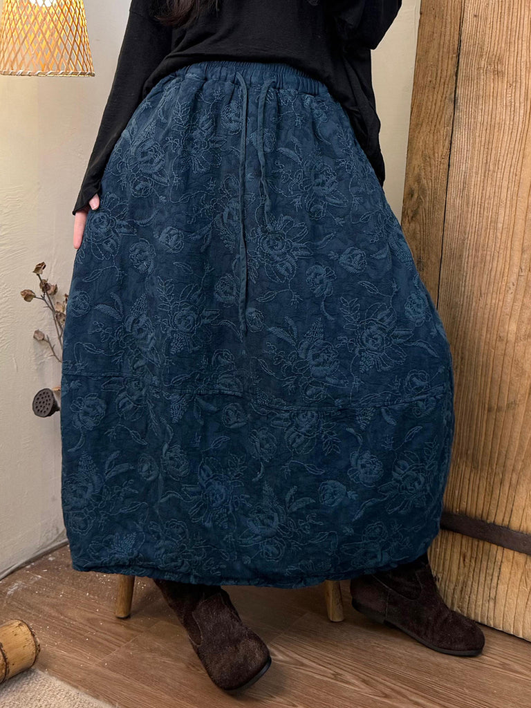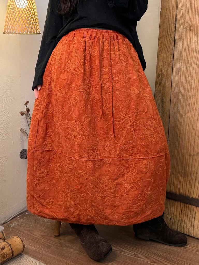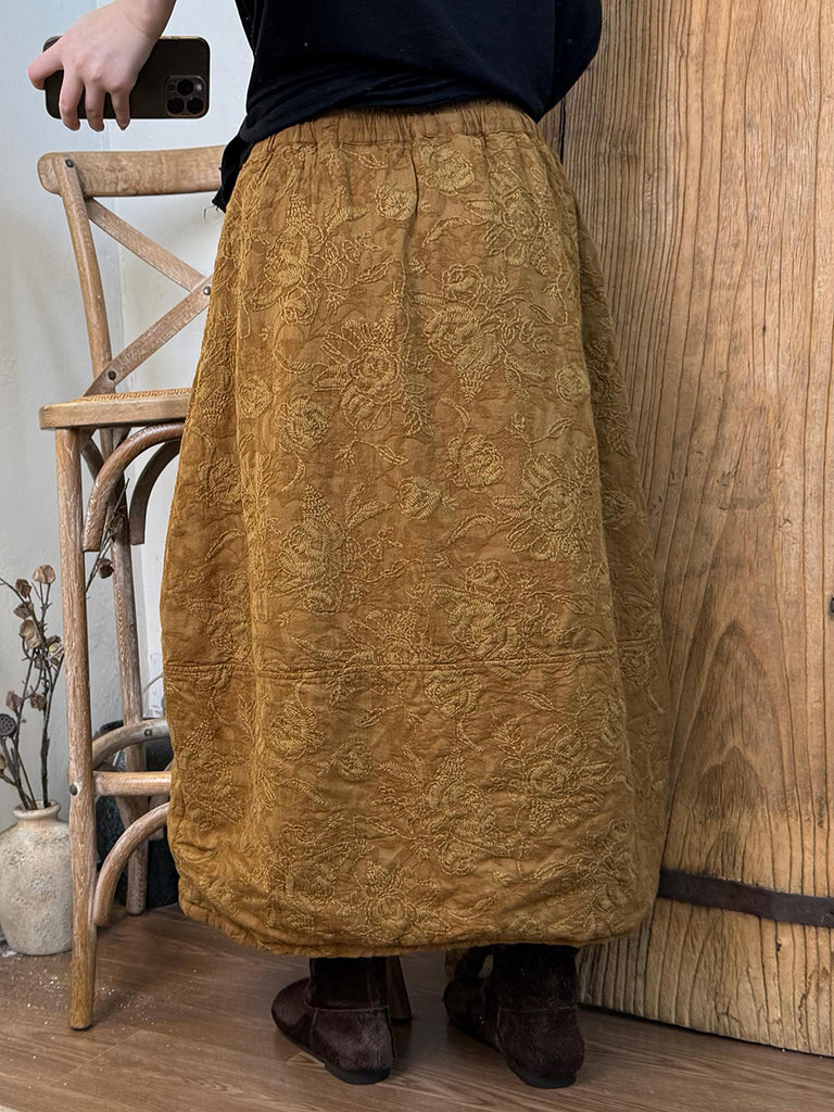 Women Autumn Vintage Embroidery A-Shape Linen Skirt