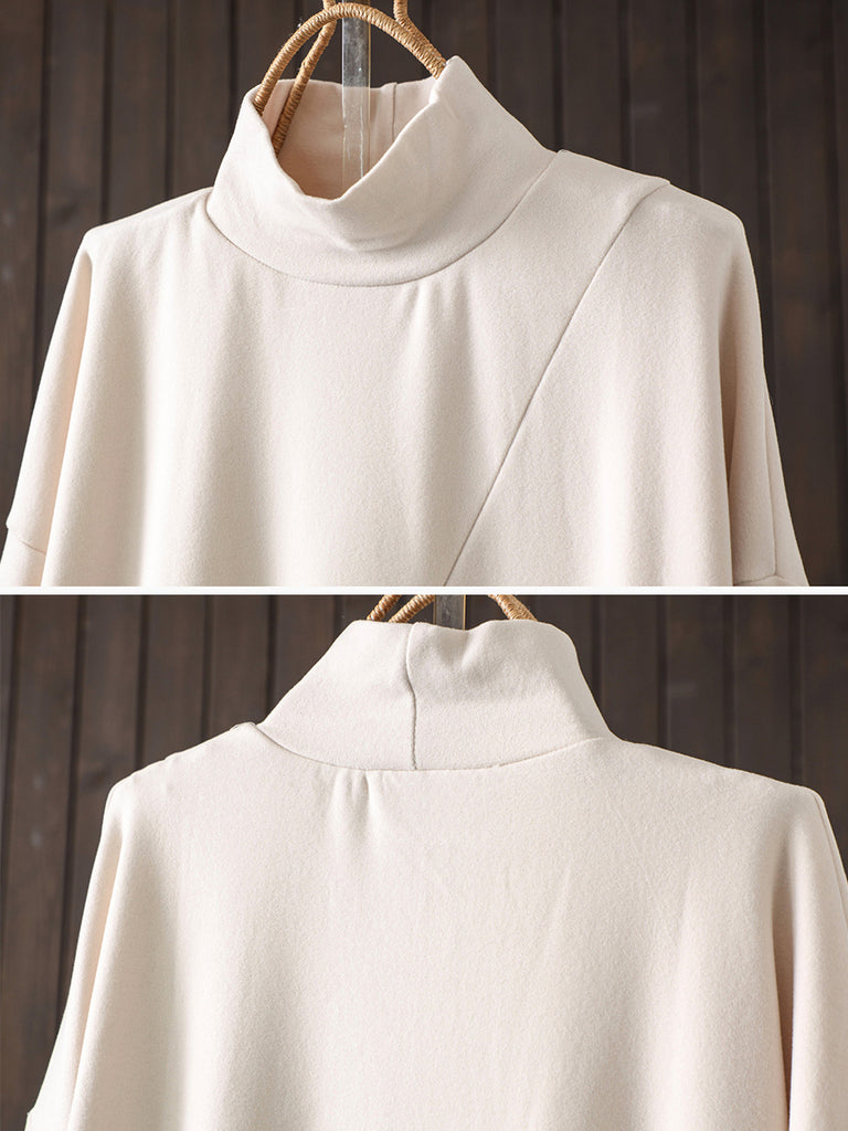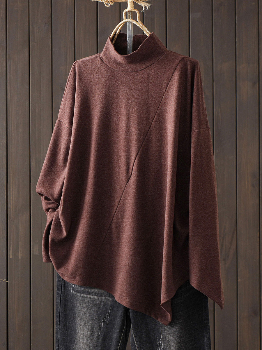 Women Casual Autumn Pure Color Turtleneck Blouse
