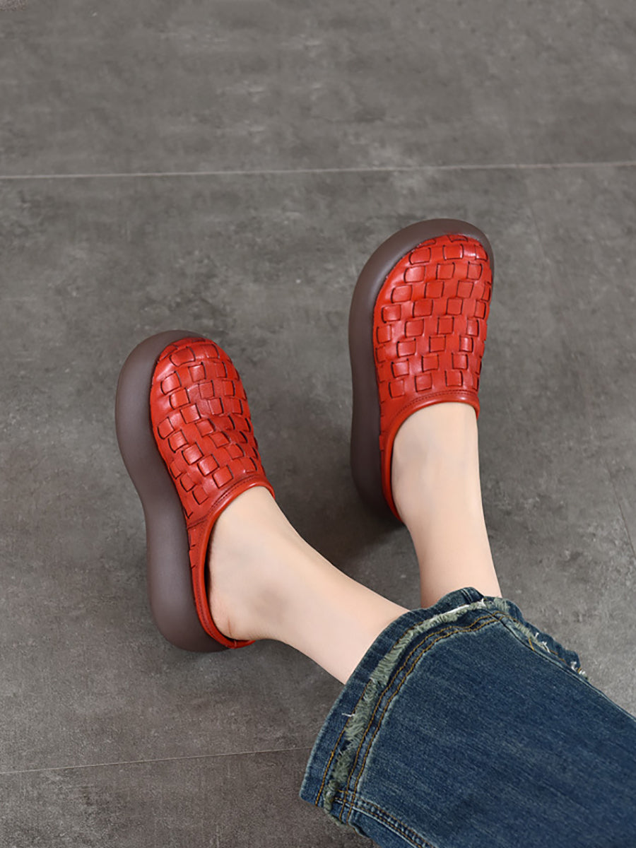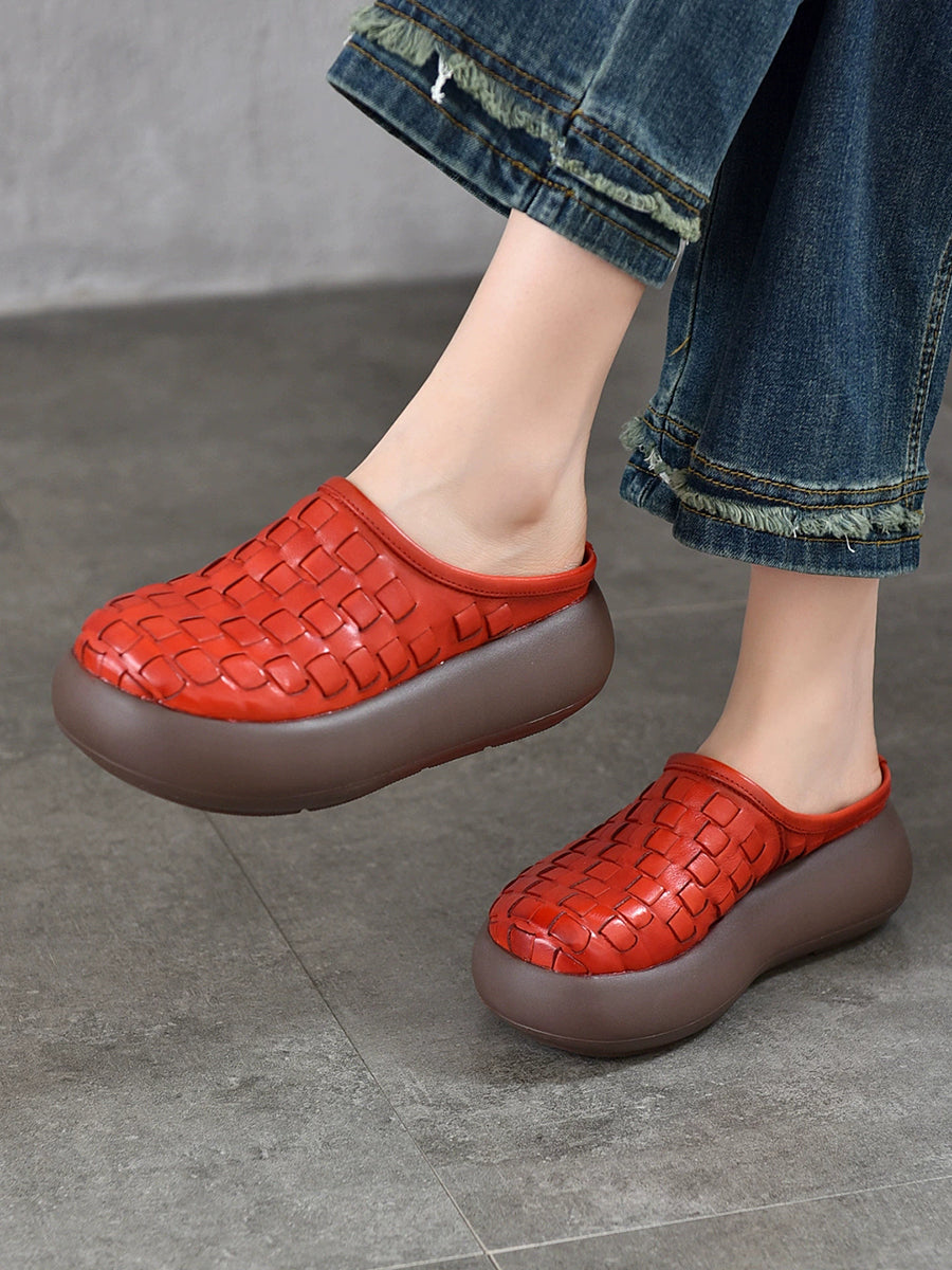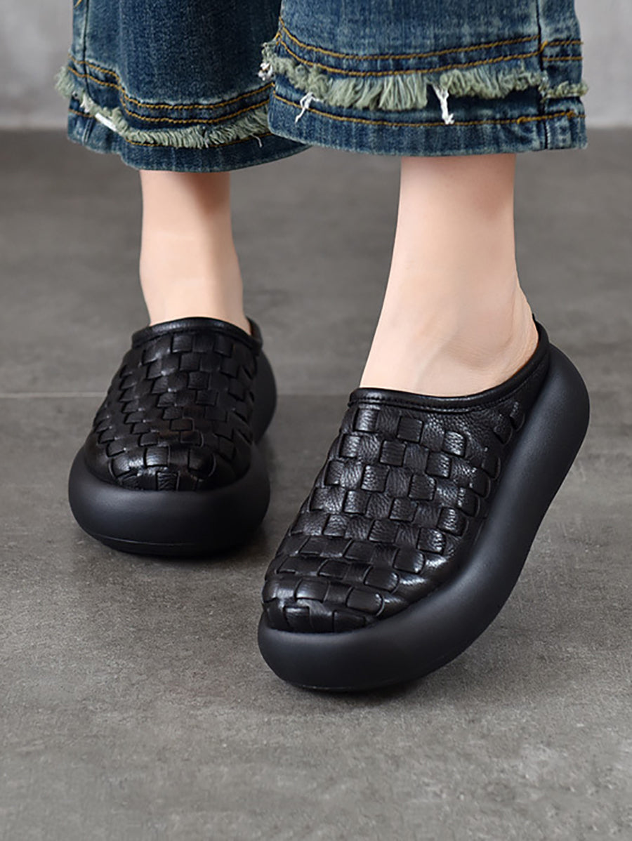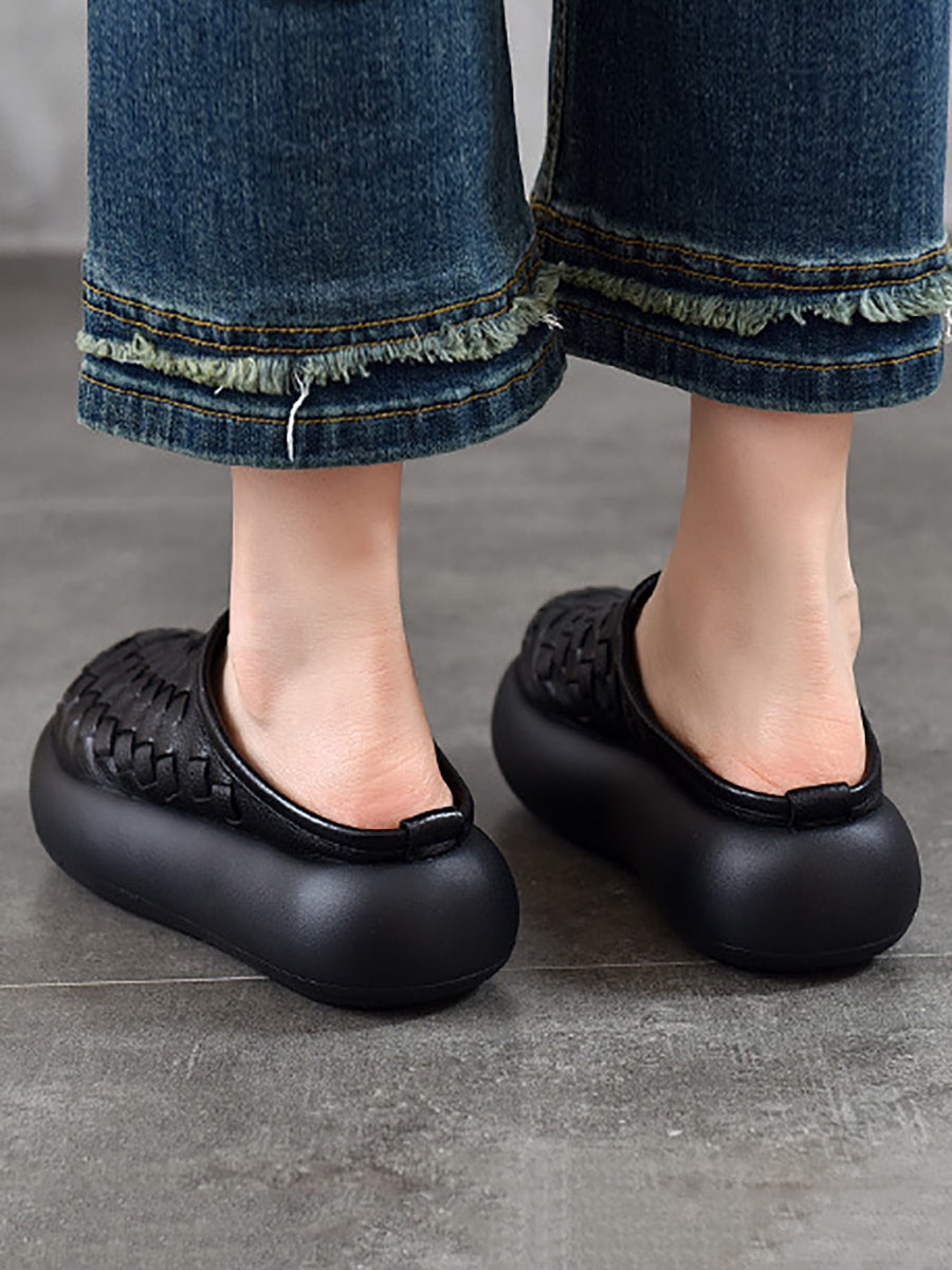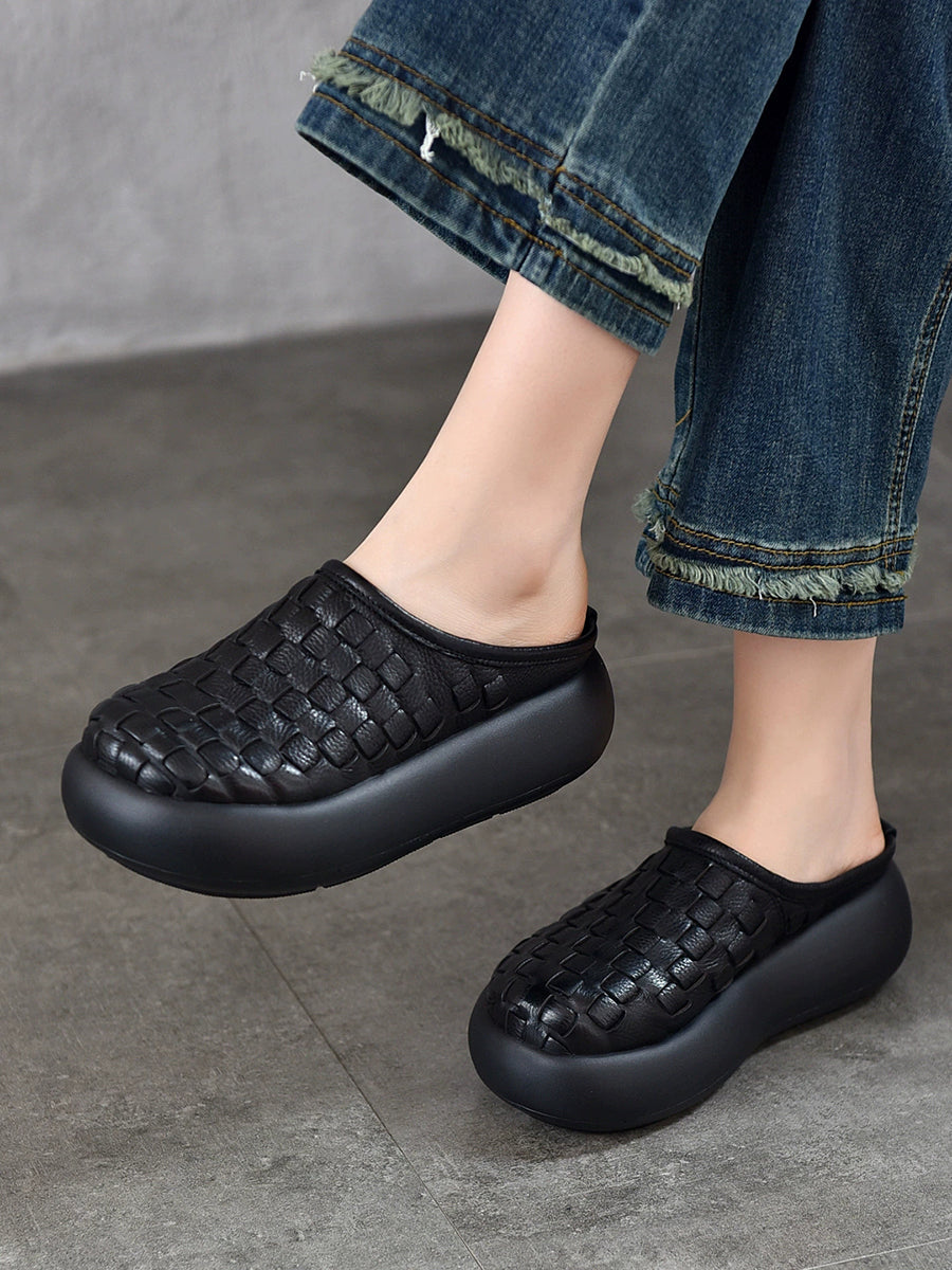Women Casual Genuine Leather Platform Slippers