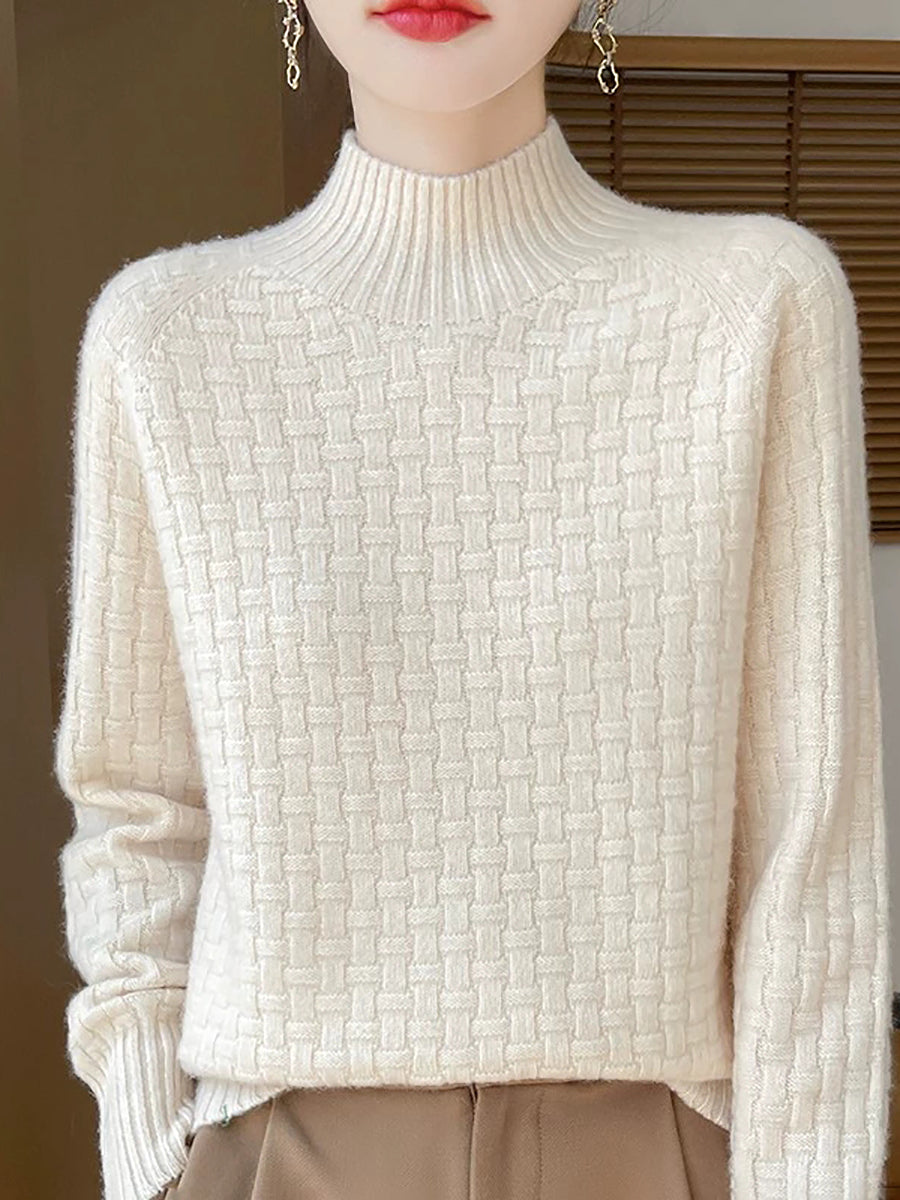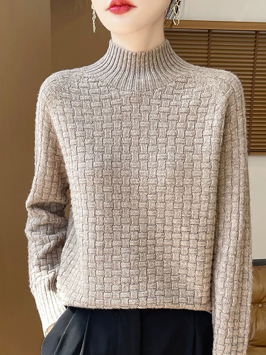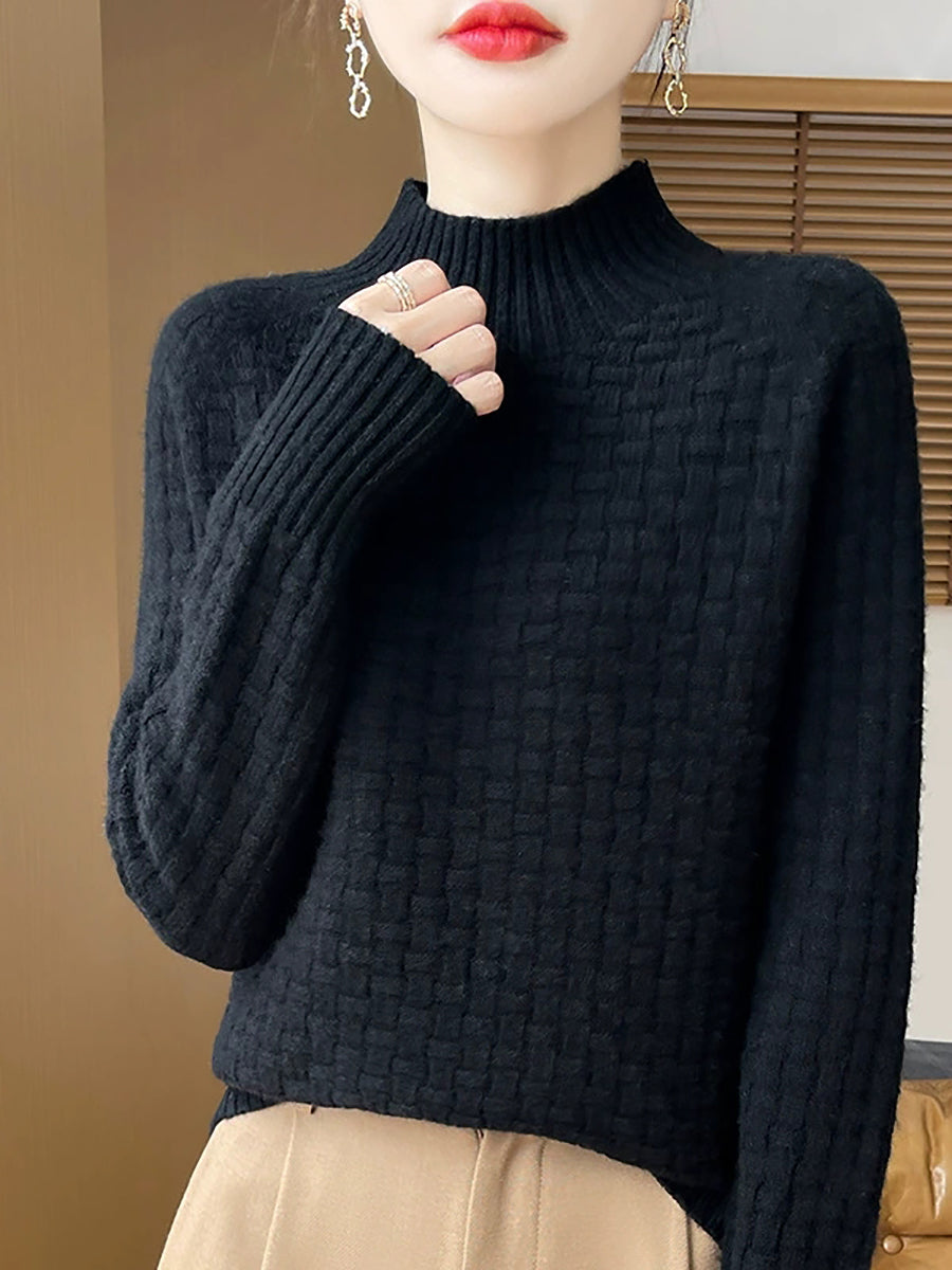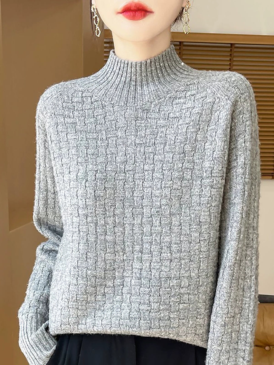 Women Casual Spring Pure Color Half-turtleneck Sweater