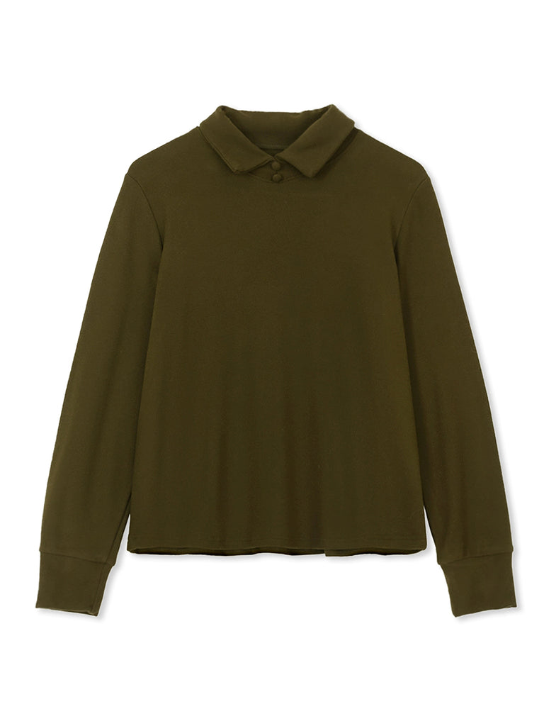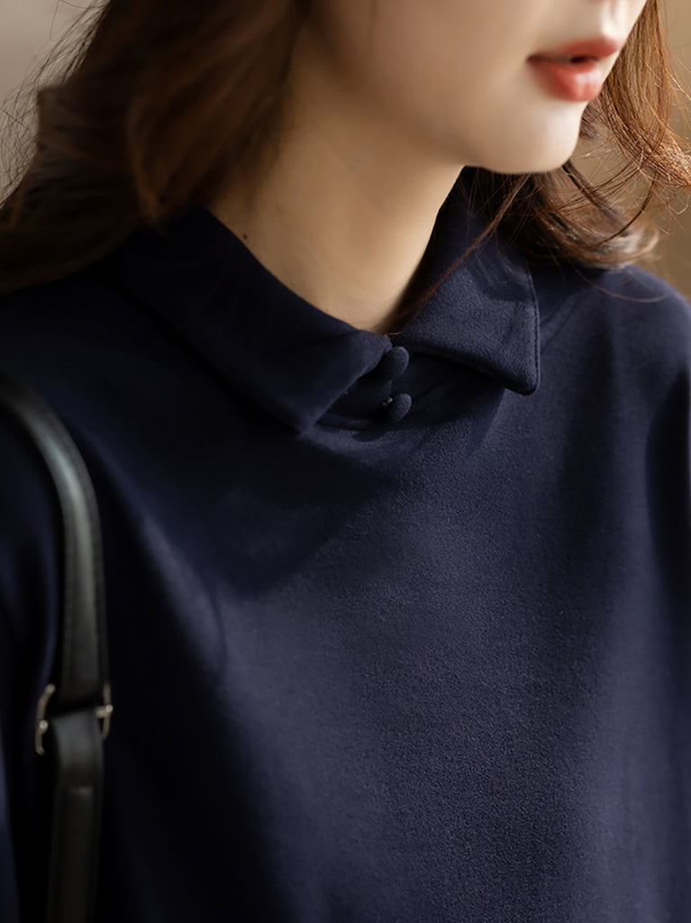 Women Casual Winter Pure Color Turn-down Collar Shirt
