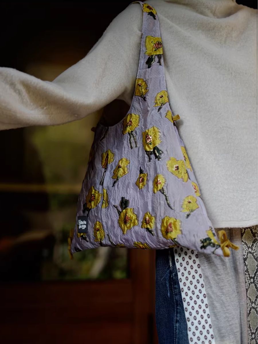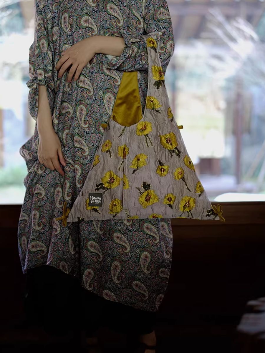 Women Retro Jacquard Flower Shoulder Bag