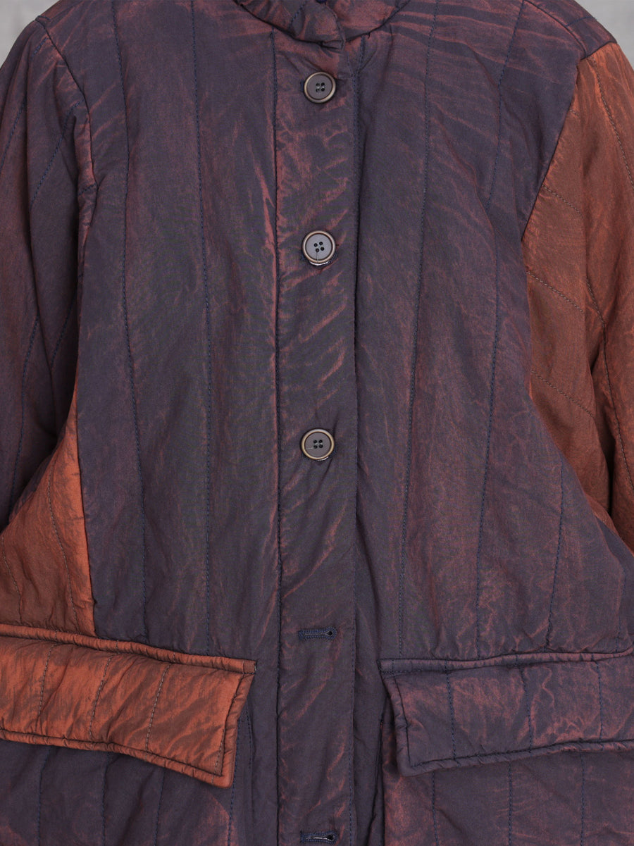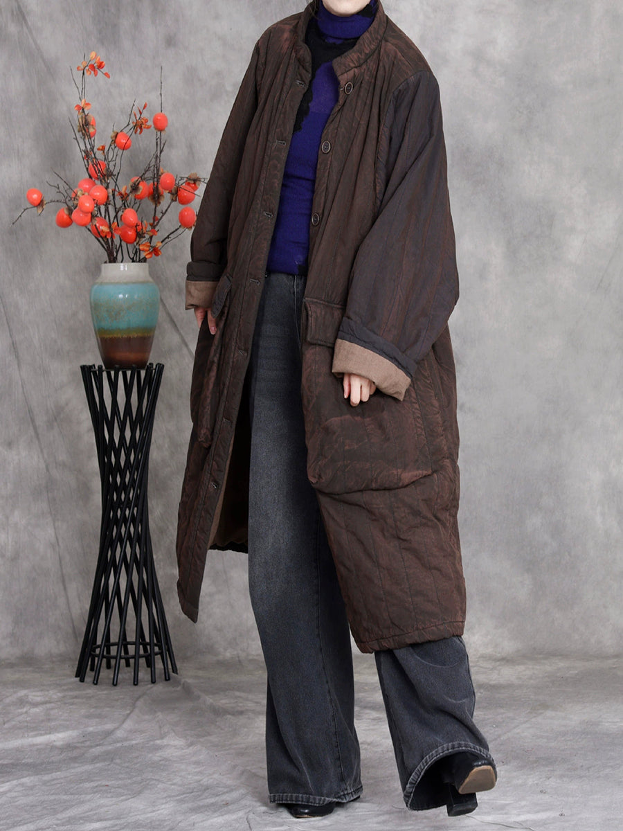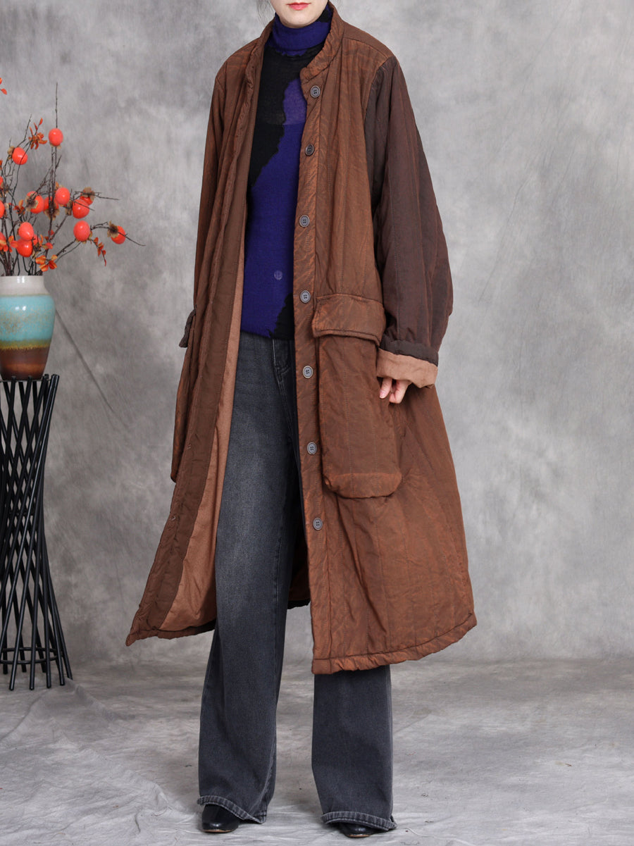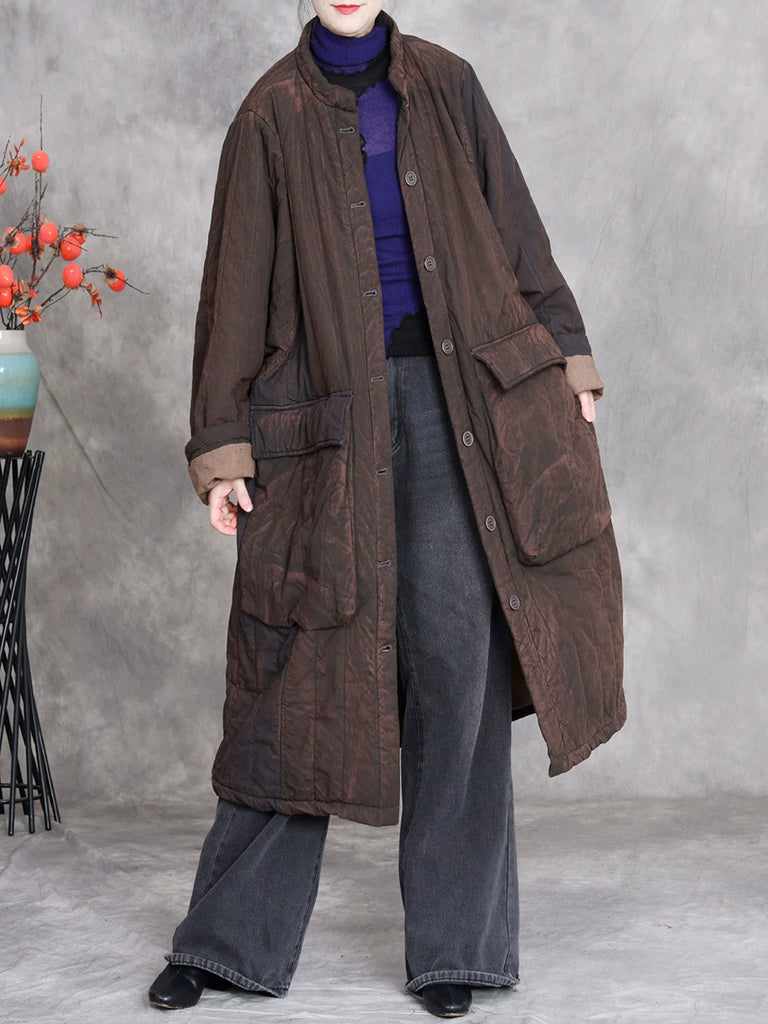 Women Retro Winter Colorblock Stand Collar Padded Coat
