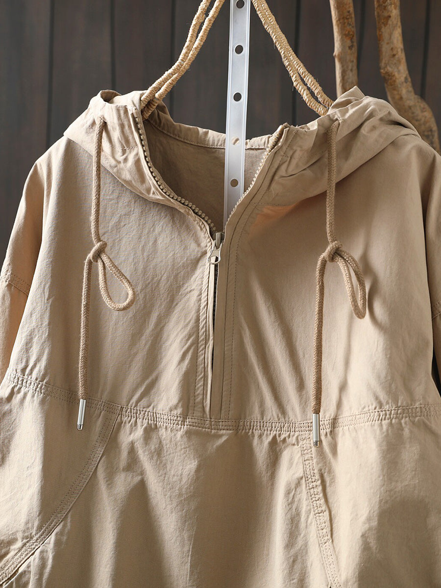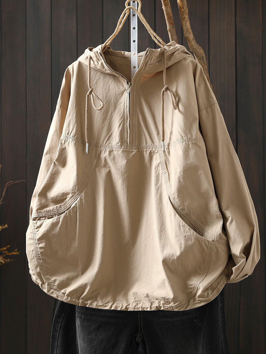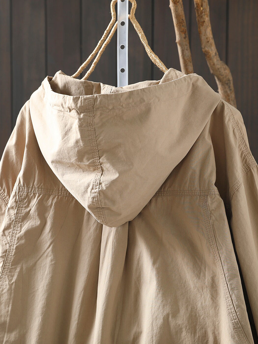 Women Spring Artsy Cotton Pure Color Hoodie