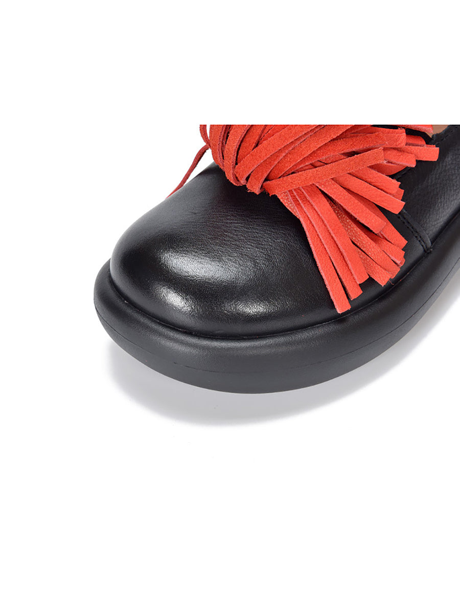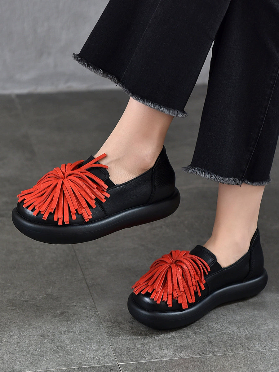 Women Spring Casual Genuine Leather Tassel Flat Shoes
