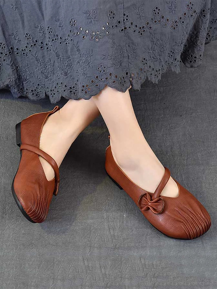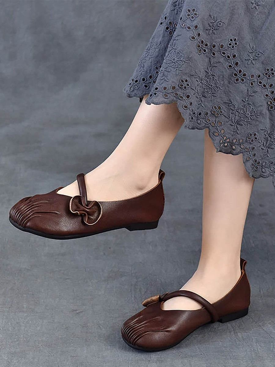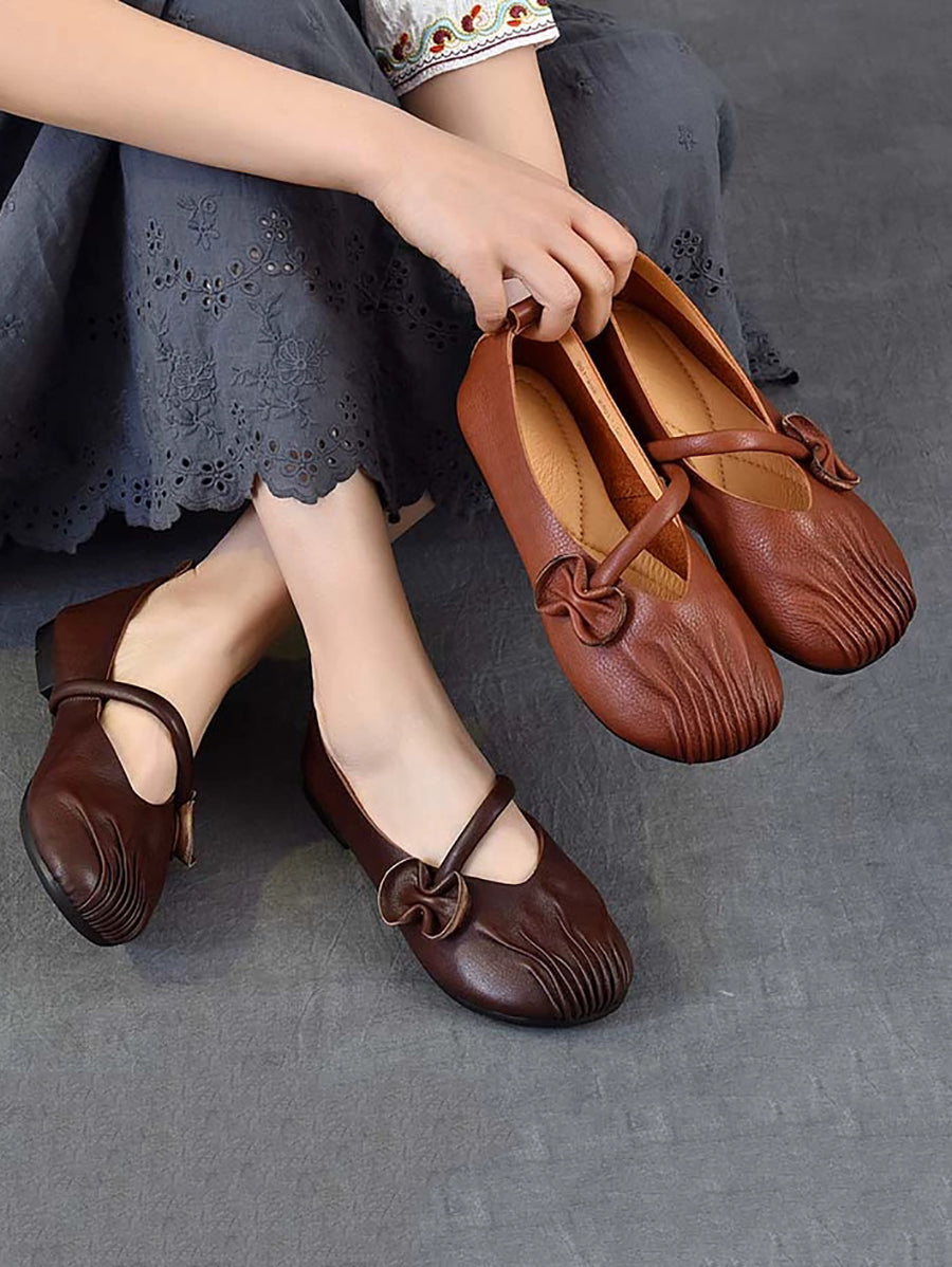 Women Spring Retro Genuine Leather Low Heel Shoes
