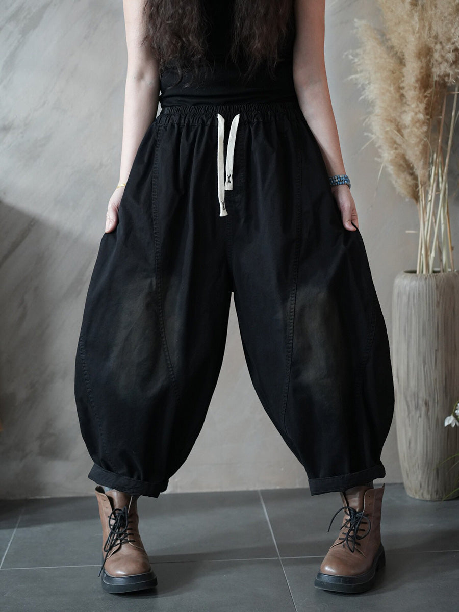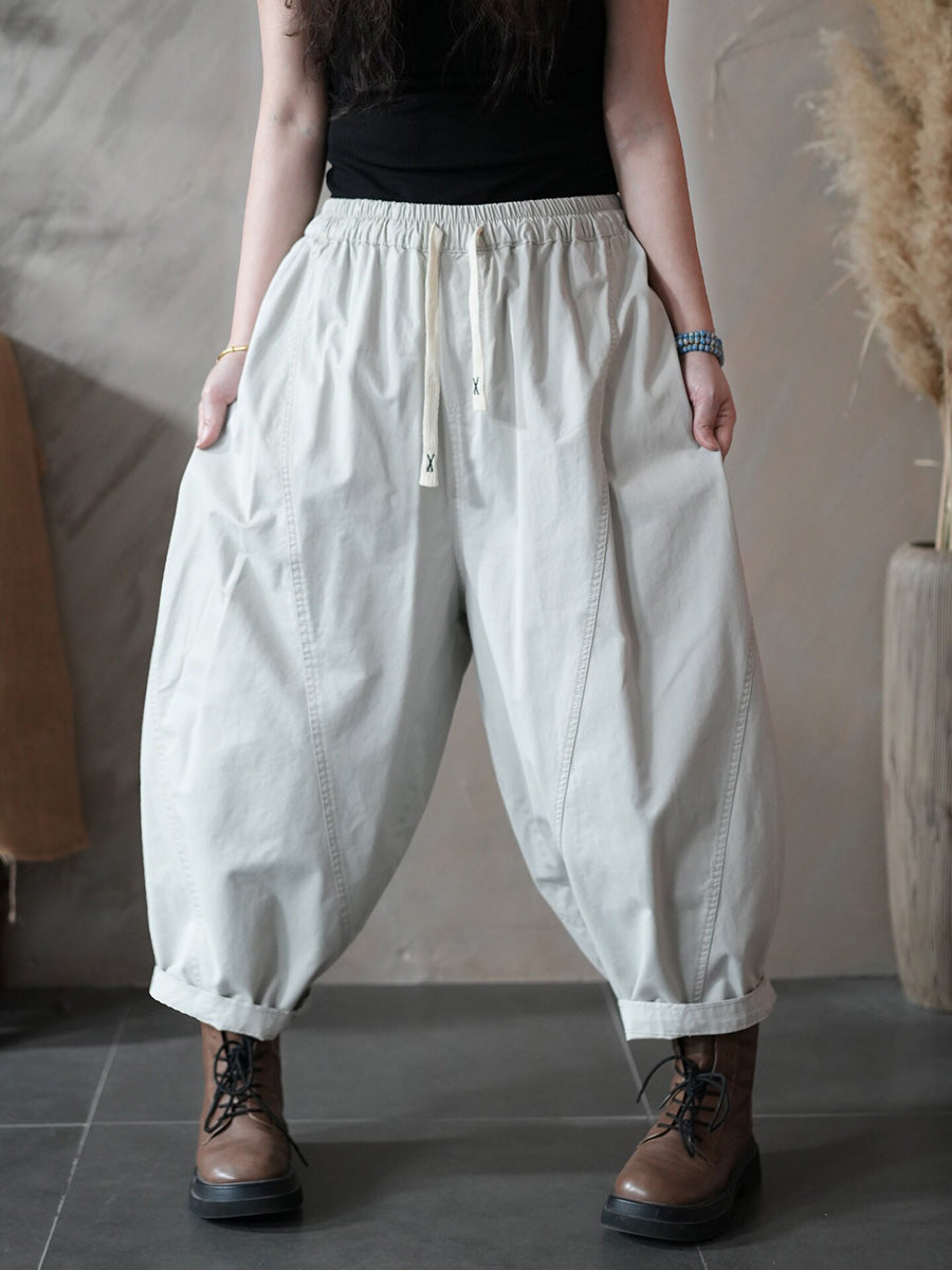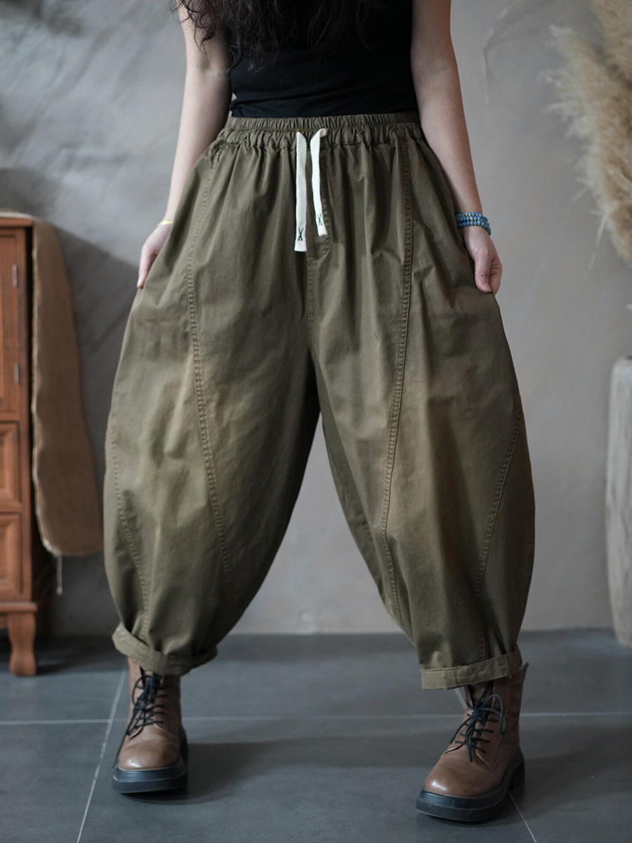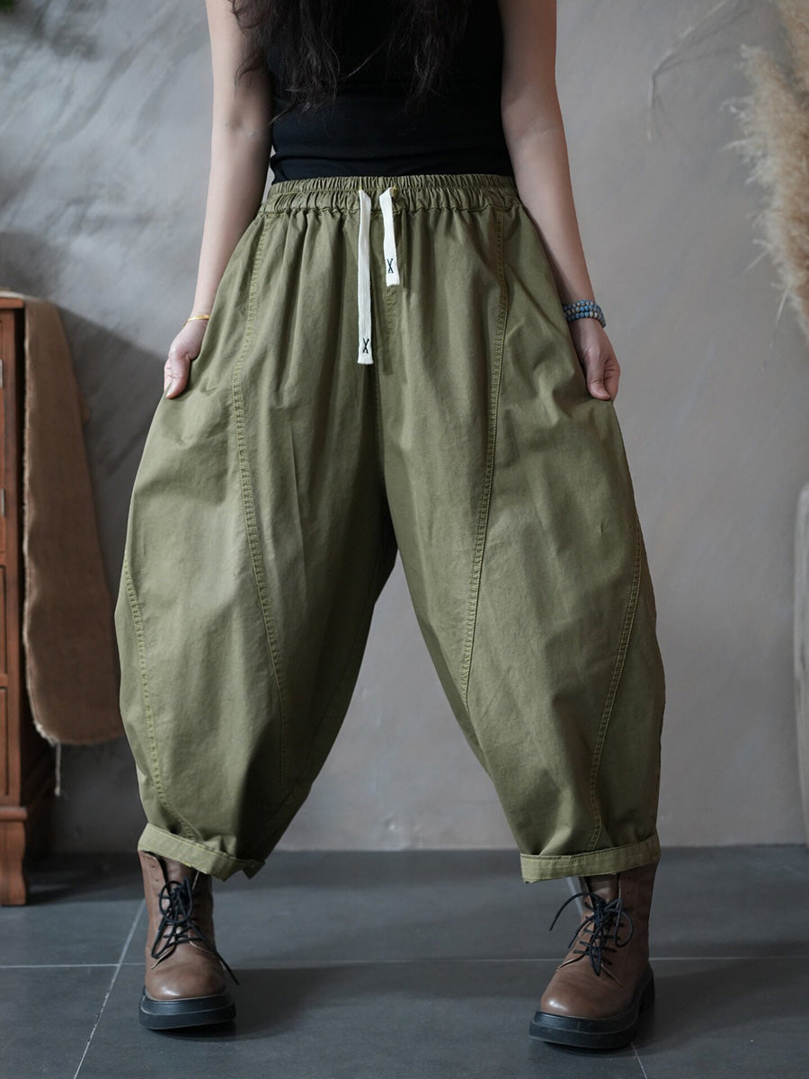 Women Spring Retro Pure Color Harem Pants