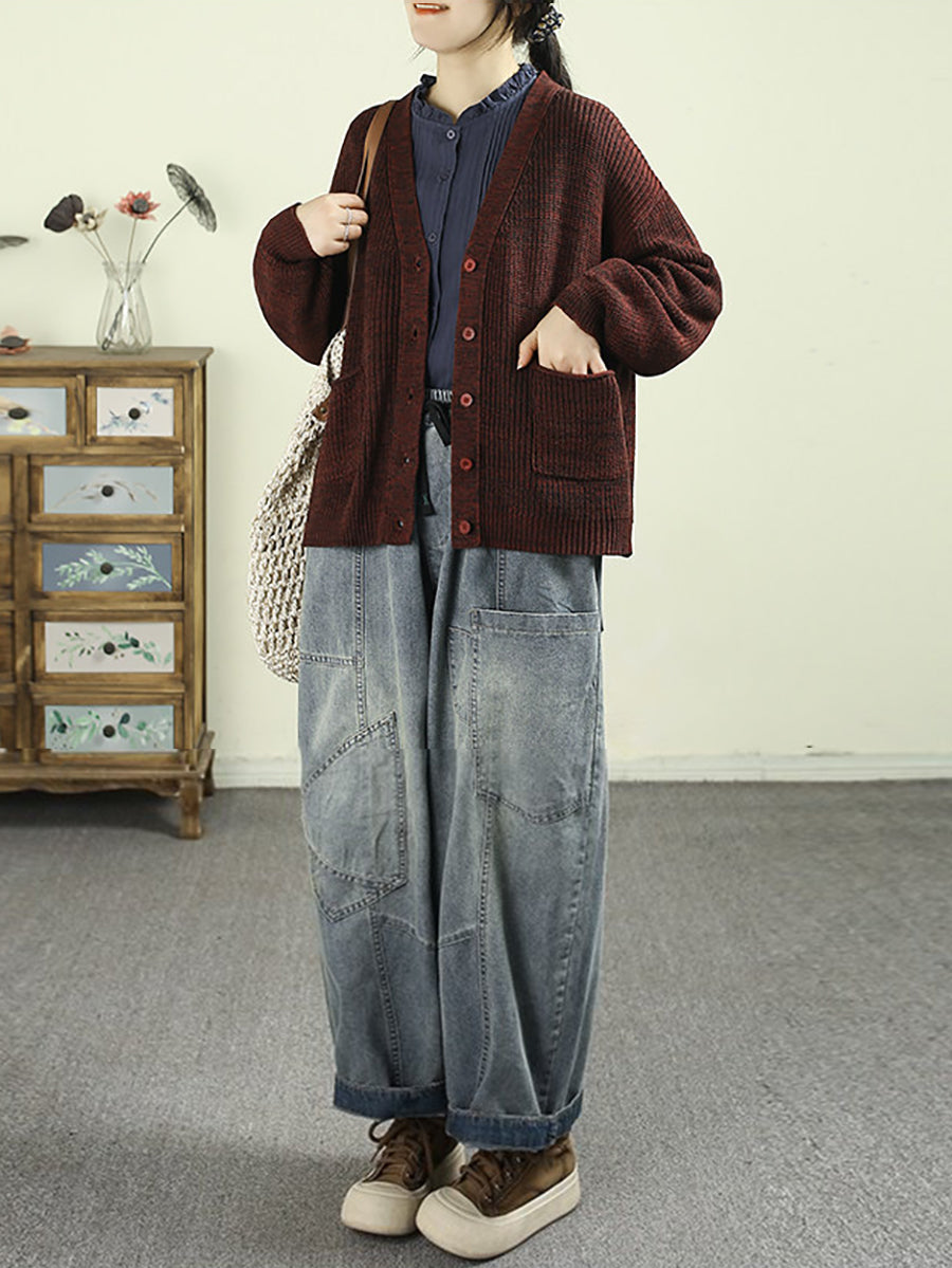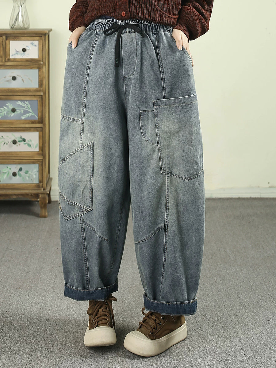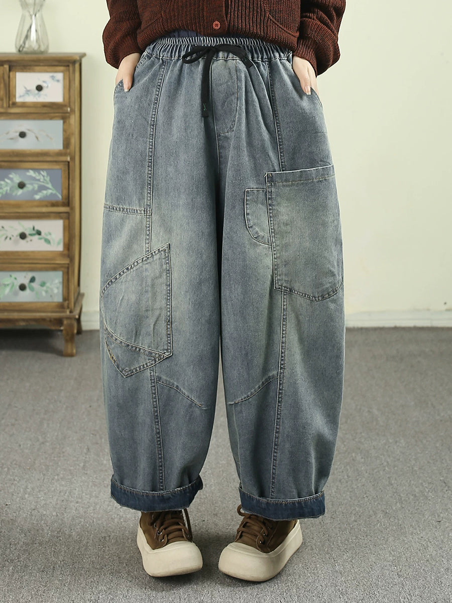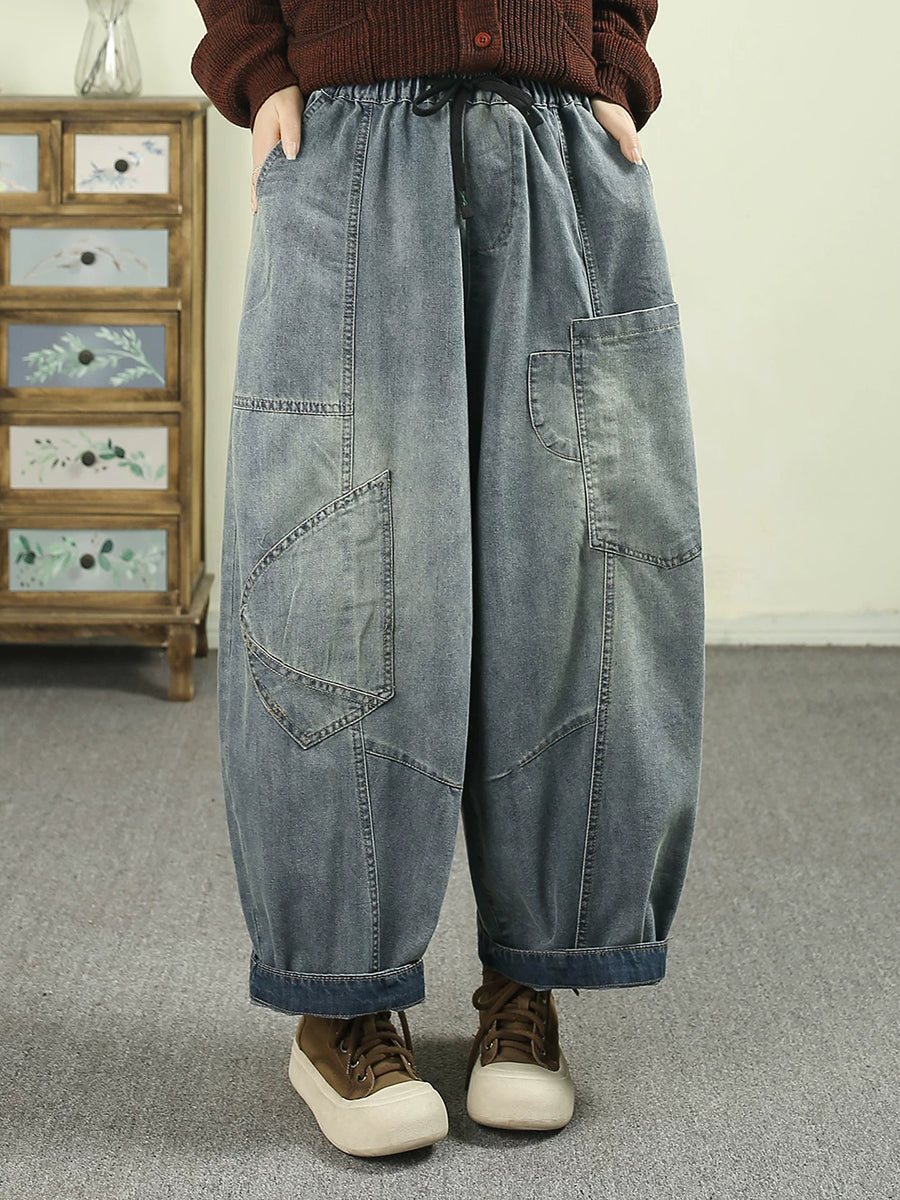 Women Spring Vintage Denim Spliced Harem Pants
