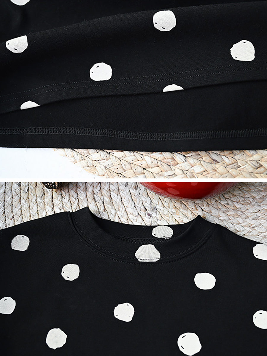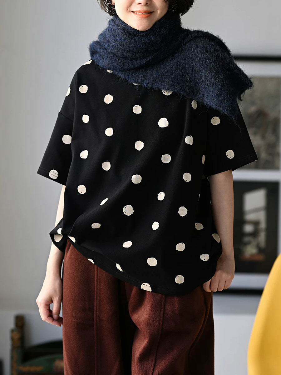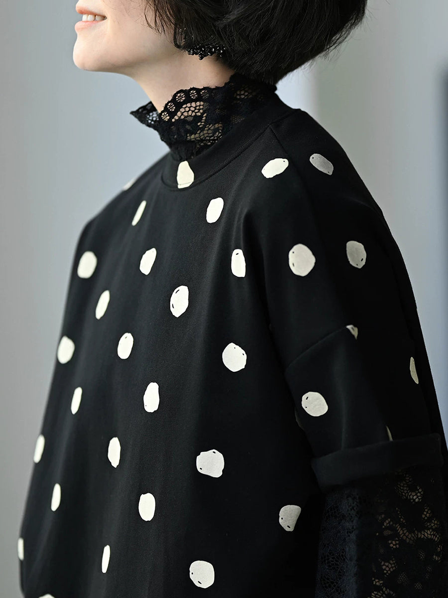 Women Spring Vintage Dot O-Neck Thick Blouse
