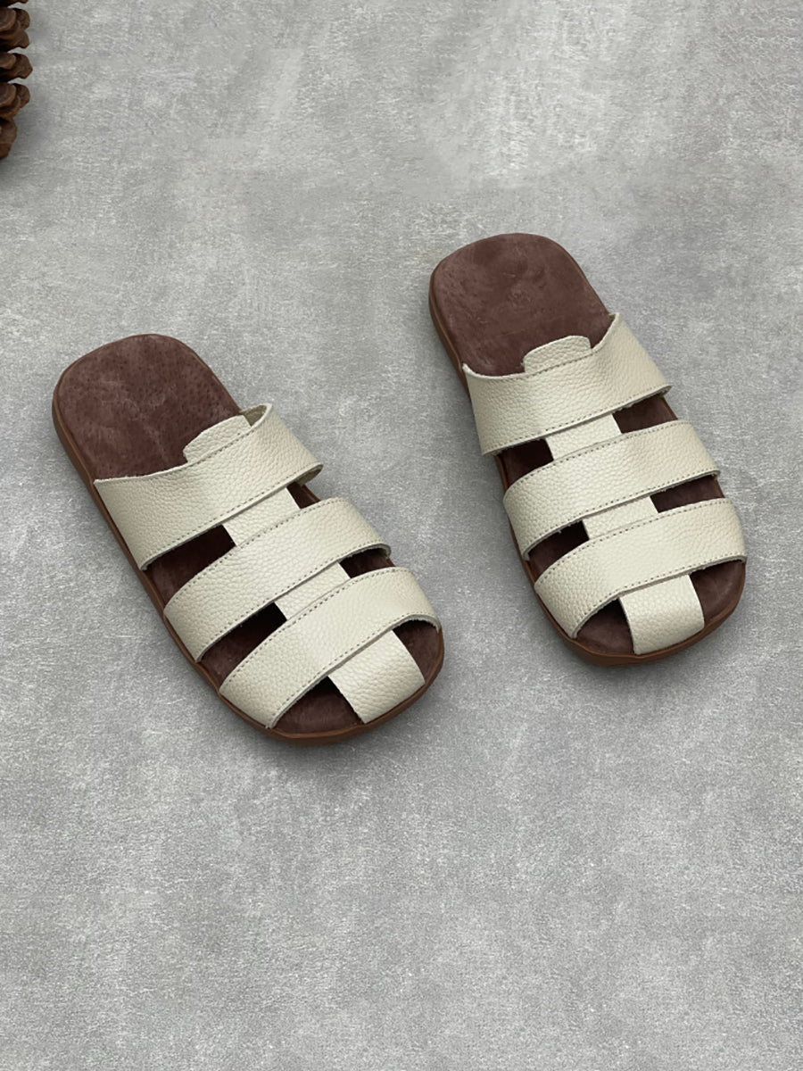 Women Summer Genuine Leather Flat Slippers