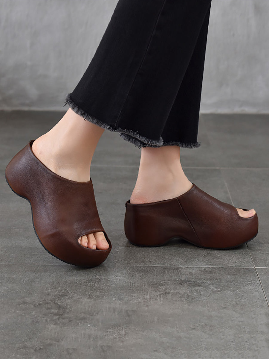 Women Summer Genuine Leather Platform Slippers