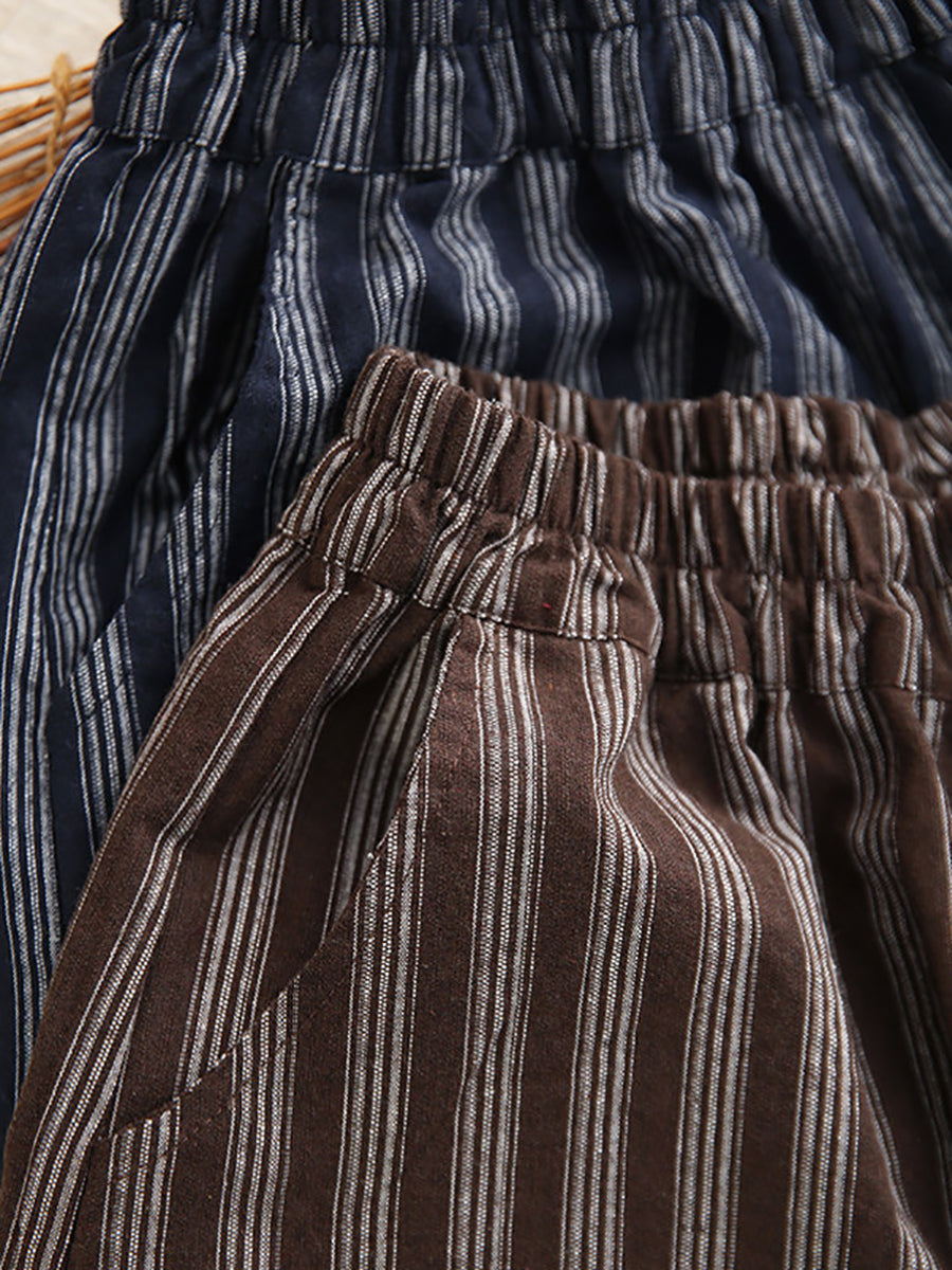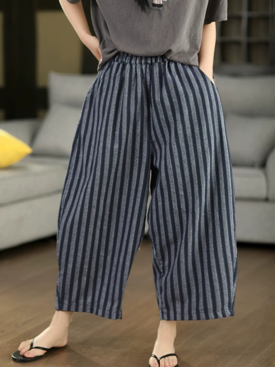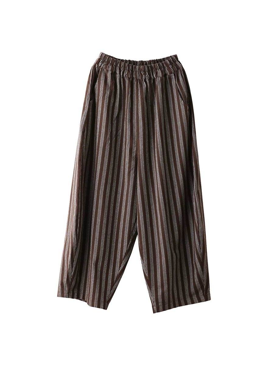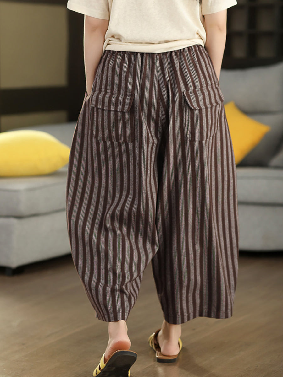 Women Summer Retro Stripe 100%Linen Harem Pants