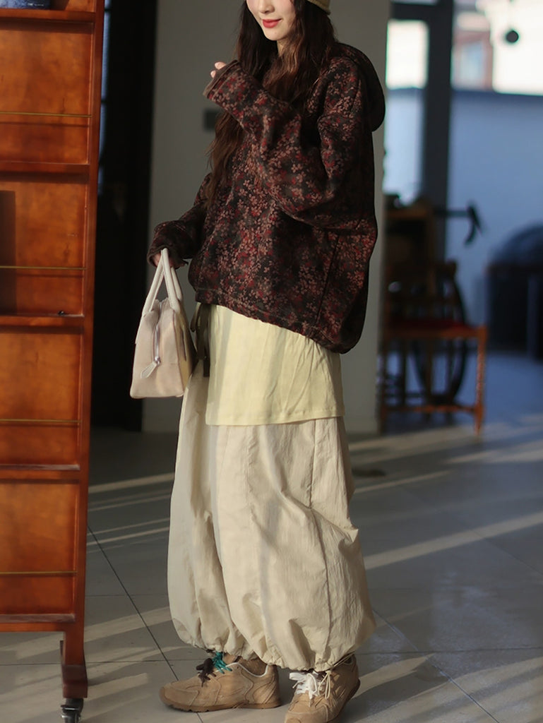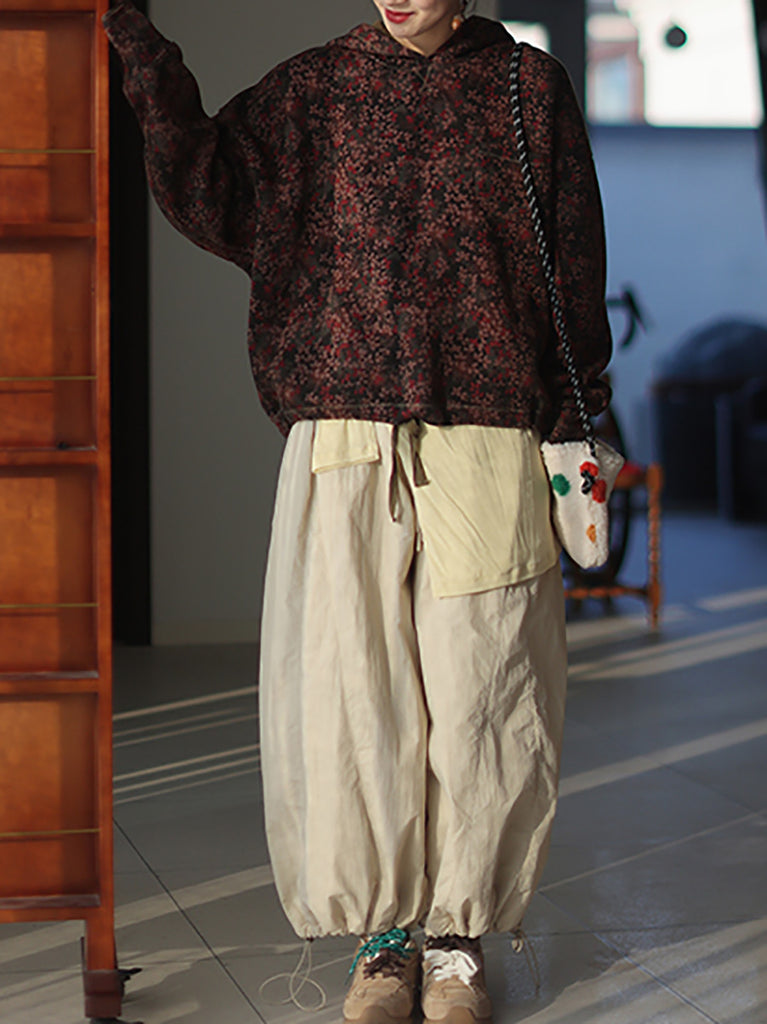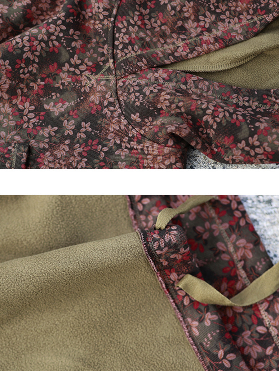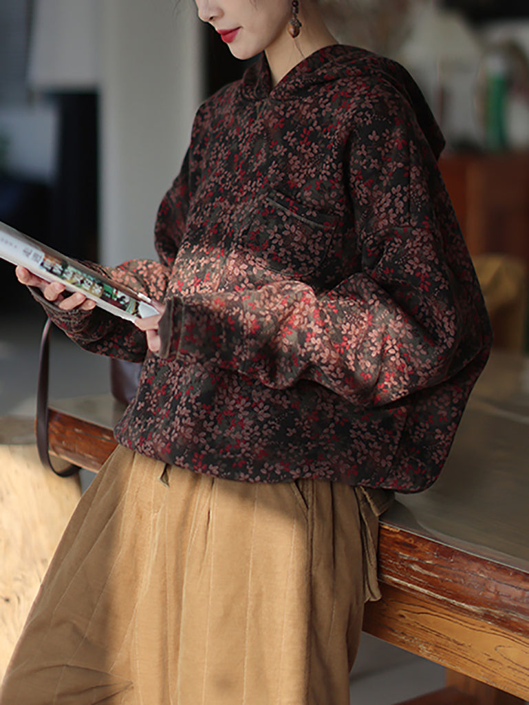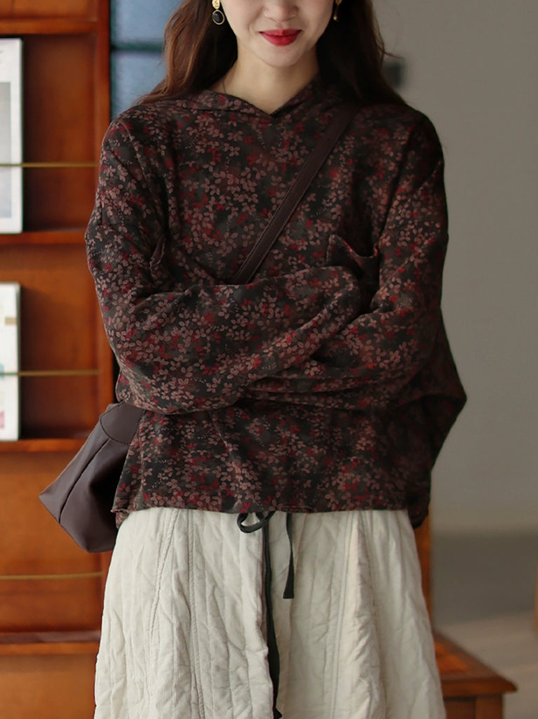 Women Vintage Autumn Flower Fleece-lined Hoodie
