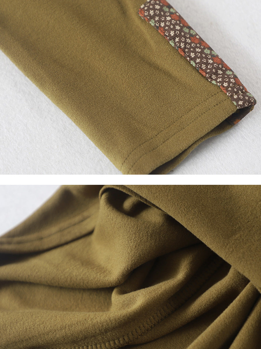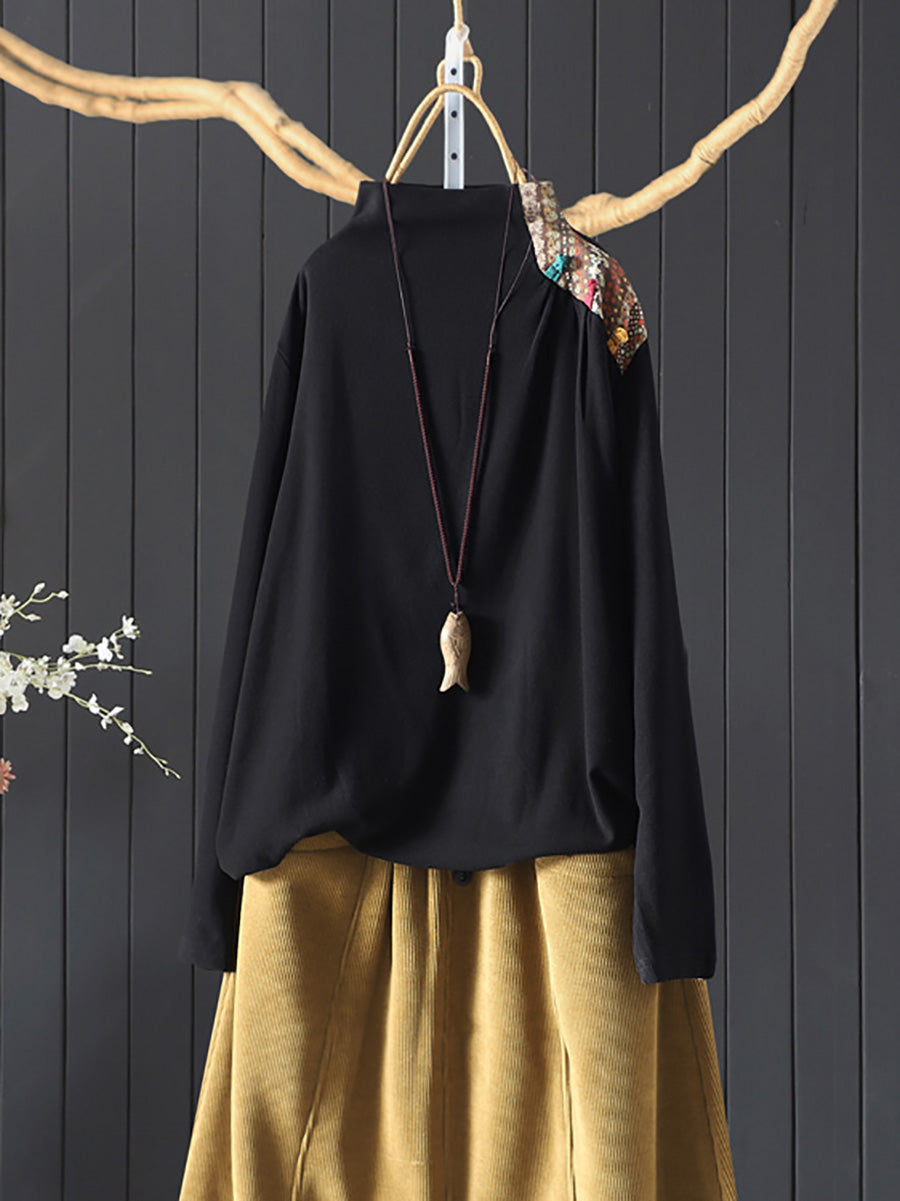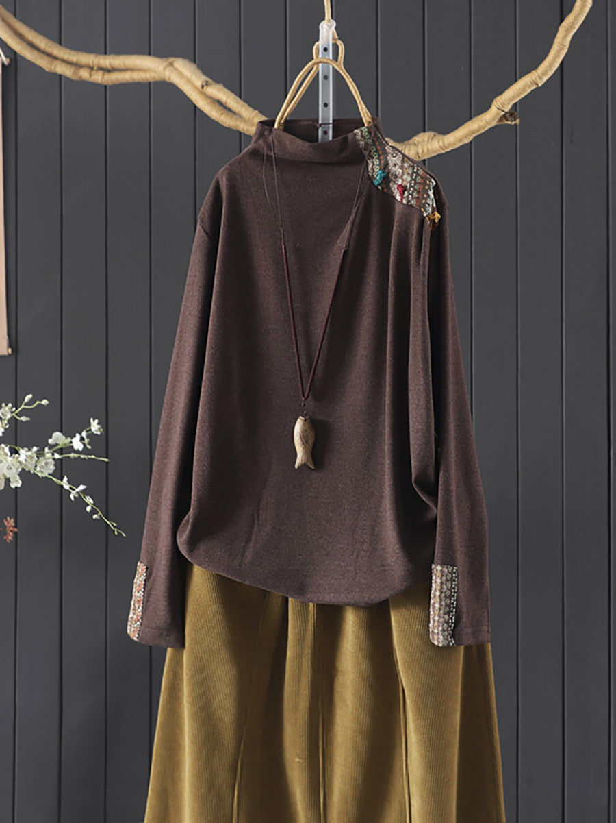 Women Vintage Autumn Patchwork Half-Turtleneck Blouse