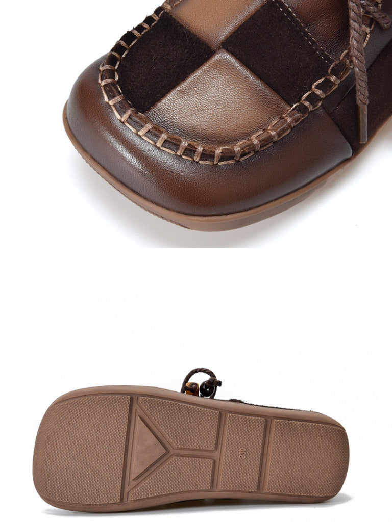 Women Vintage Colorblock Leather Strap Flat Shoes