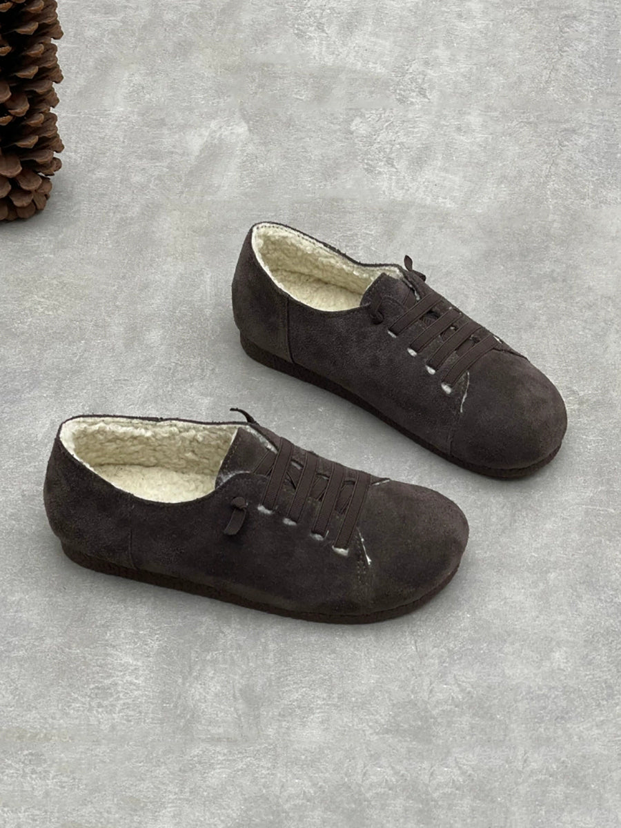 Women Vintage Genuine Leather Fleece-lined Shoes