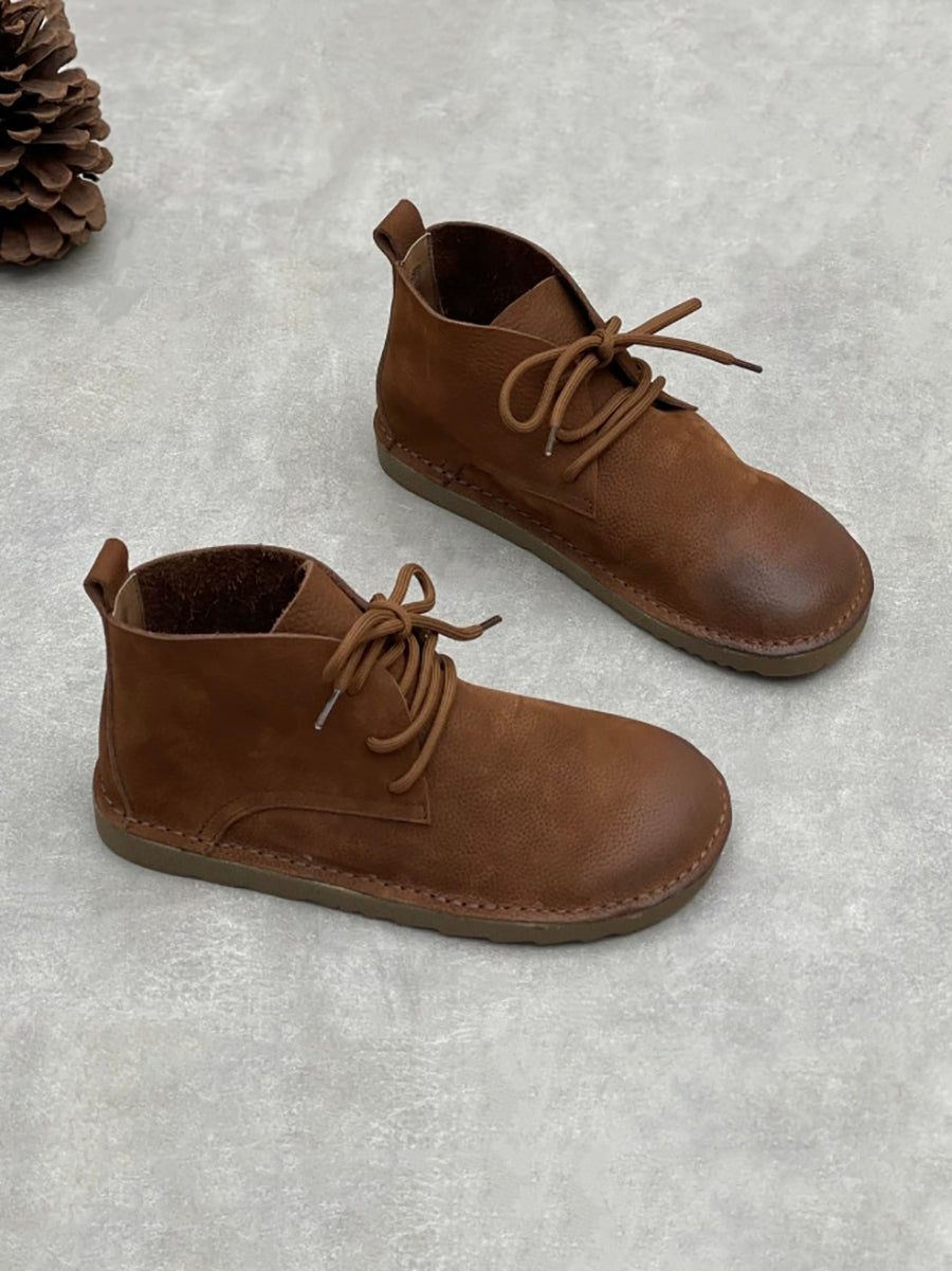 Women Vintage Genuine Leather Strap Ankle Boots