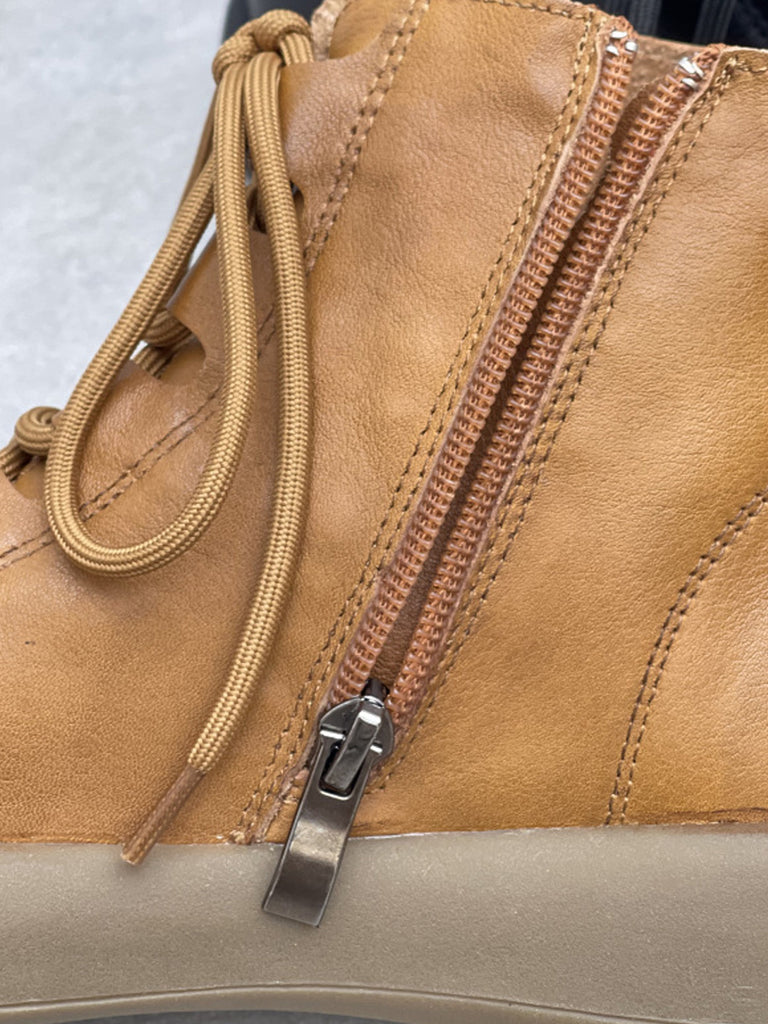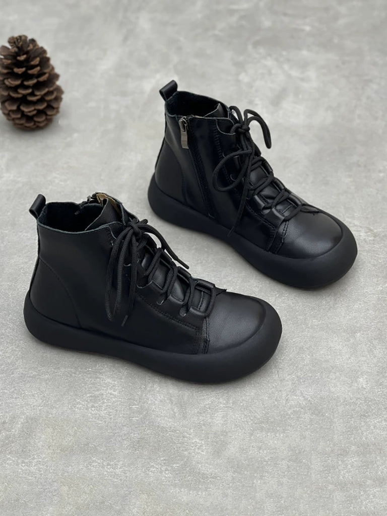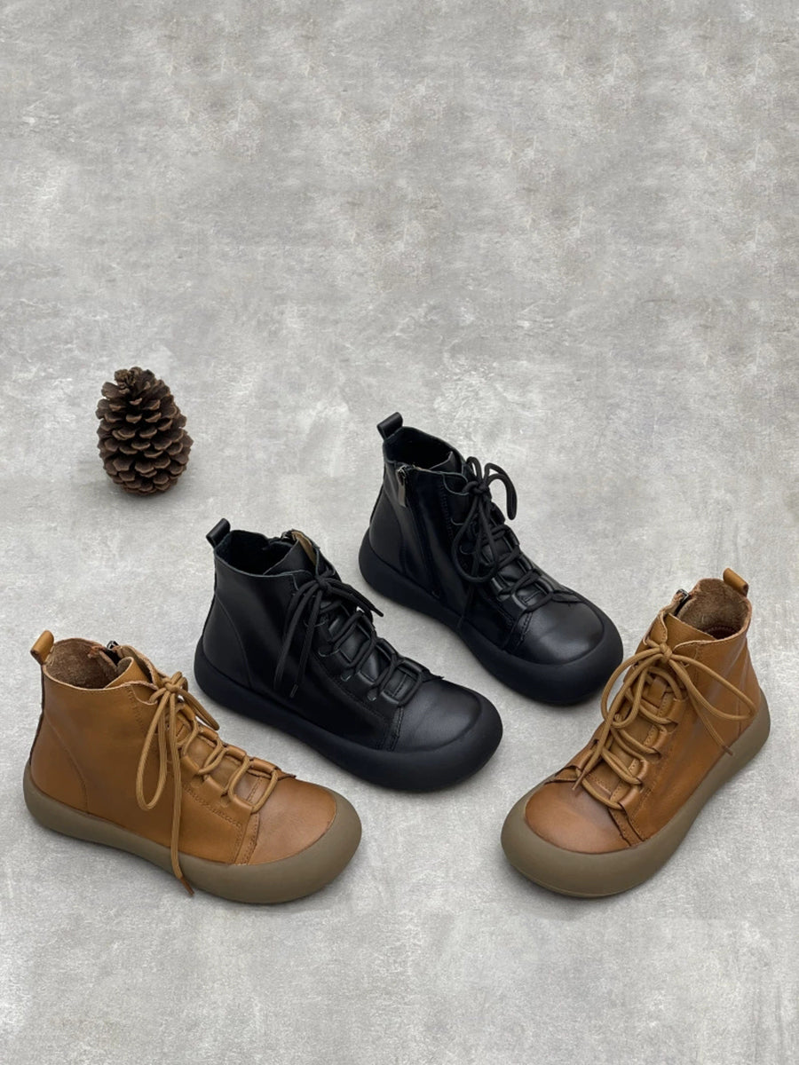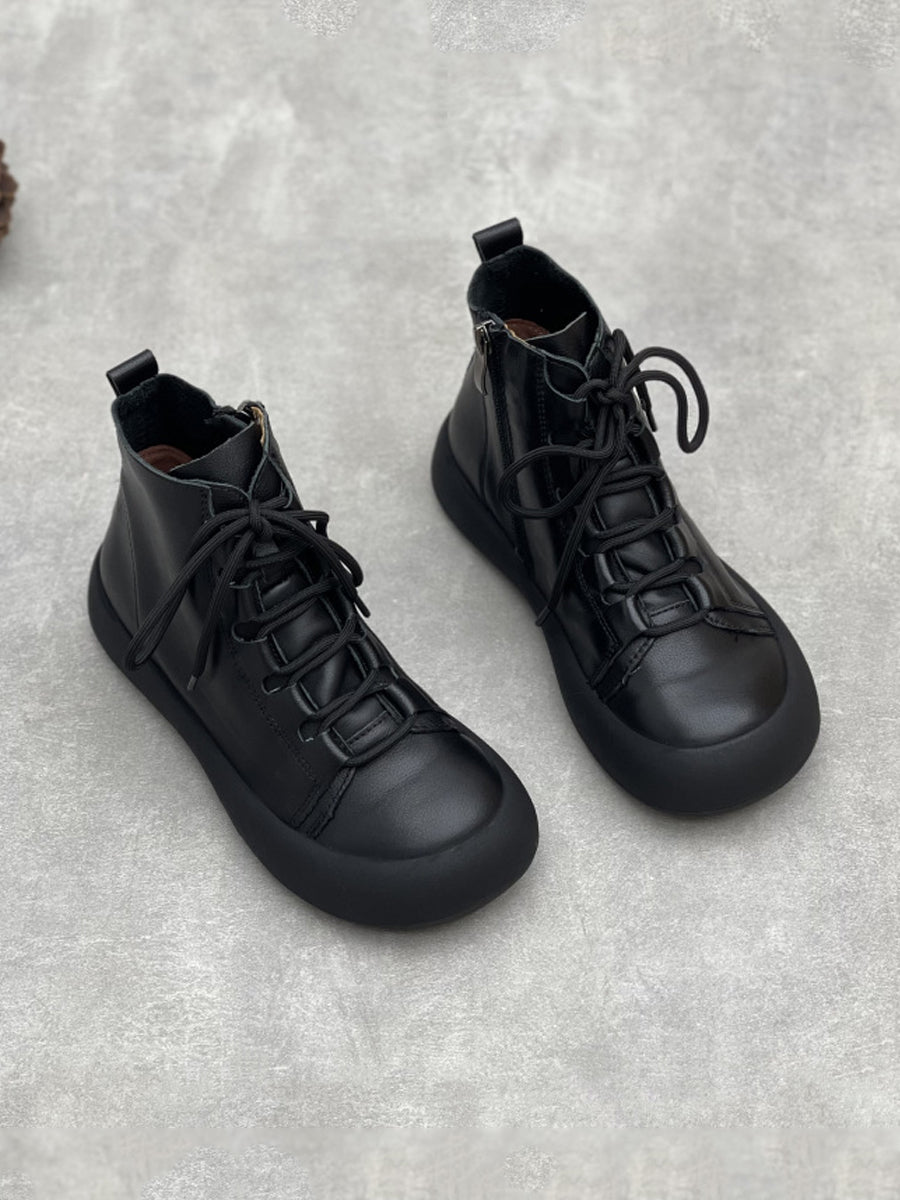 Women Vintage Pure Color Genuine Leather Ankle Boots