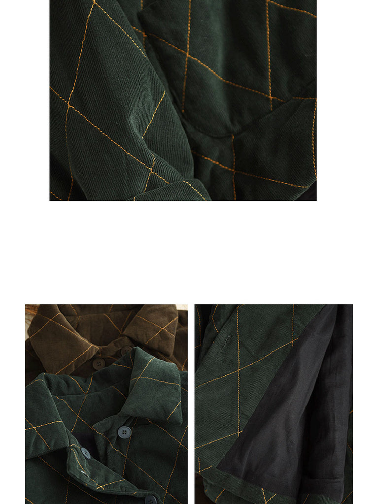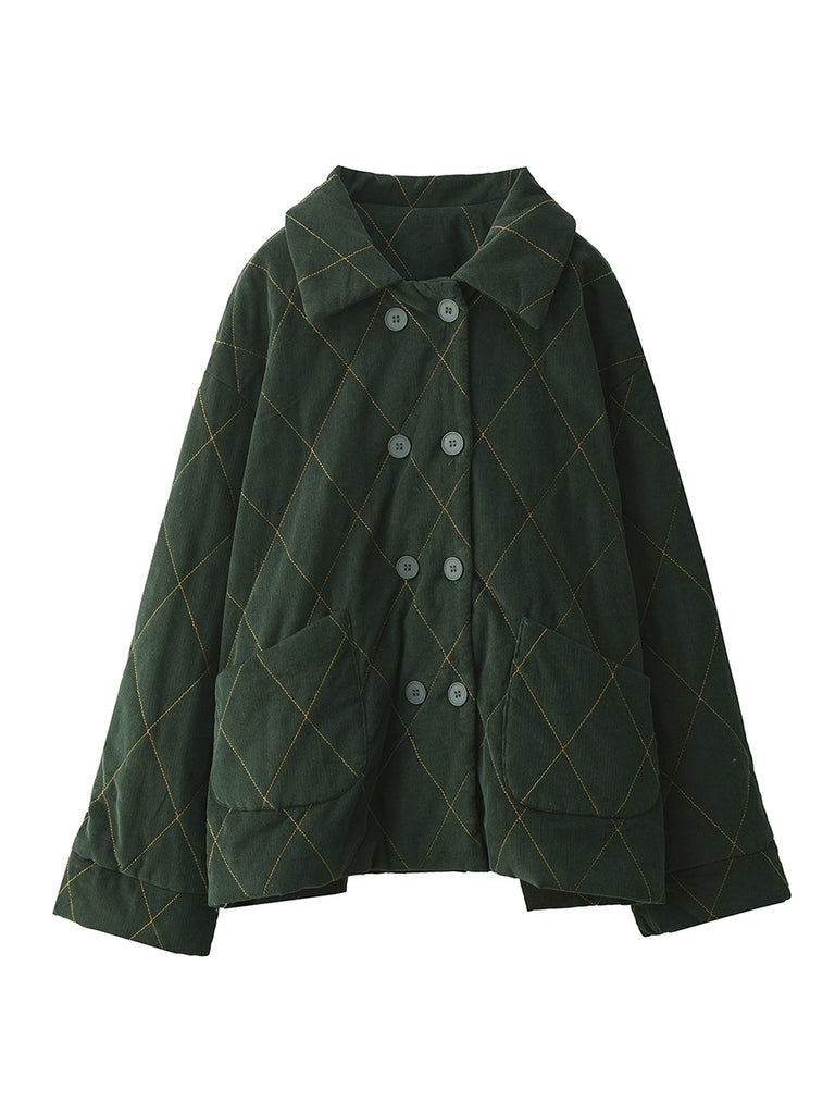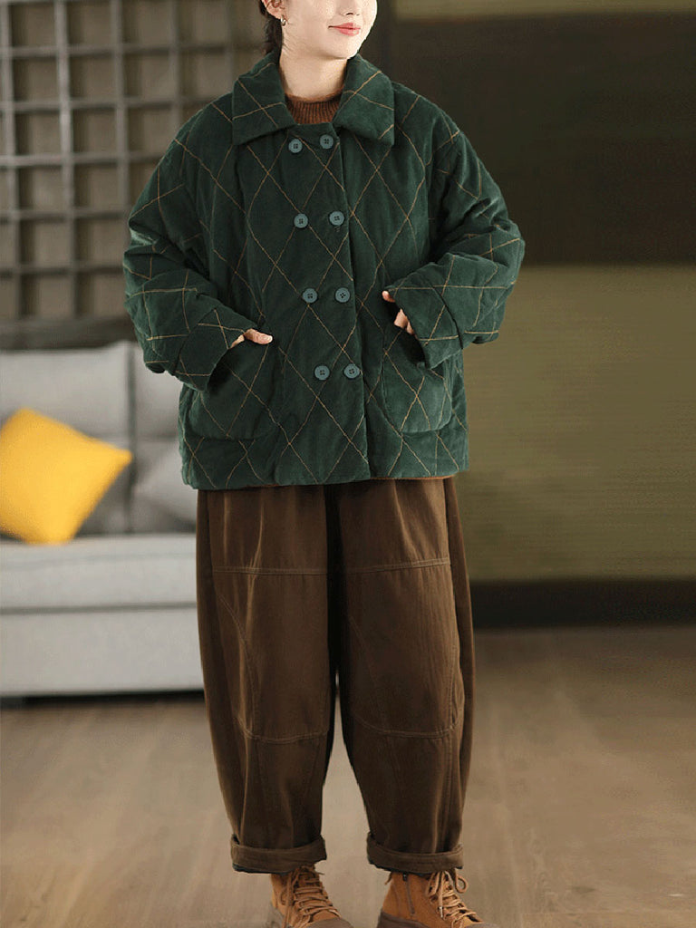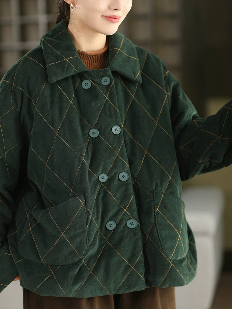 Women Vintage Rhomboids Turn-down Collar Padded Jacket