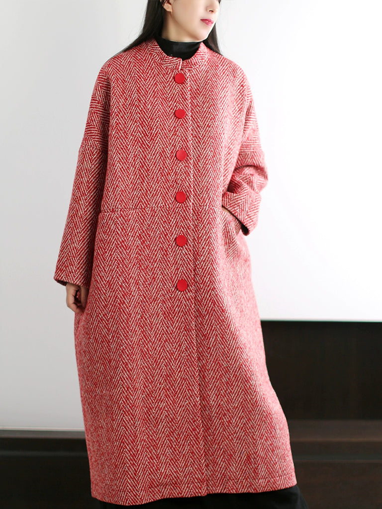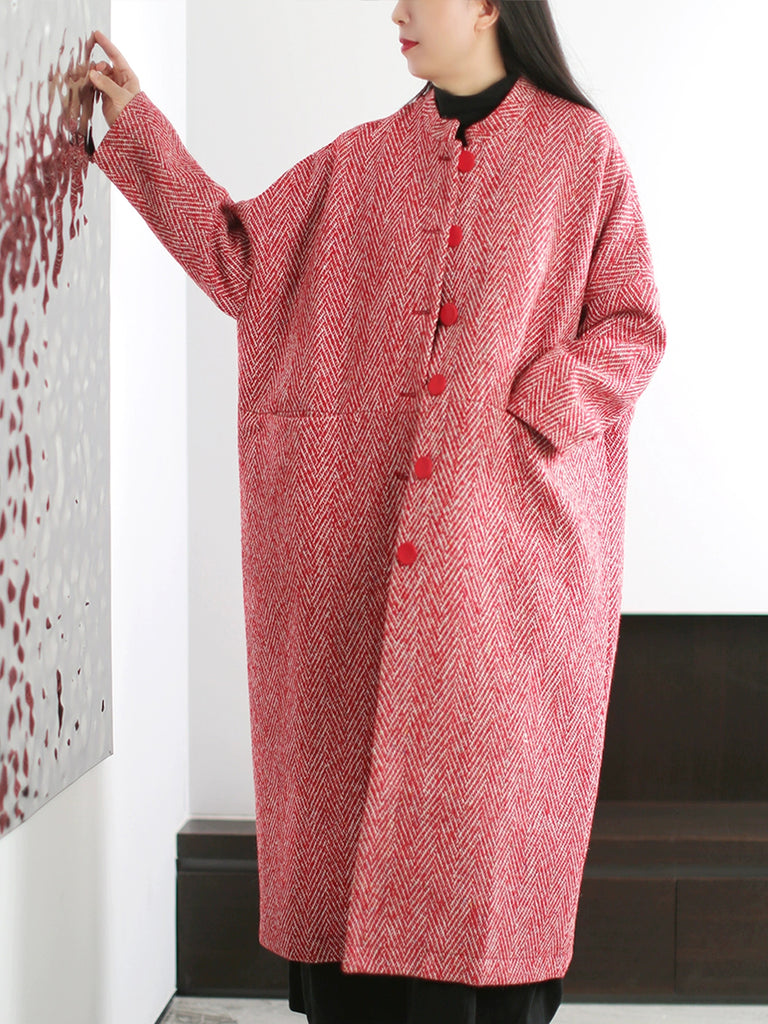 Women Vintage Winter Cocoon-shaped Woolen Overcoat