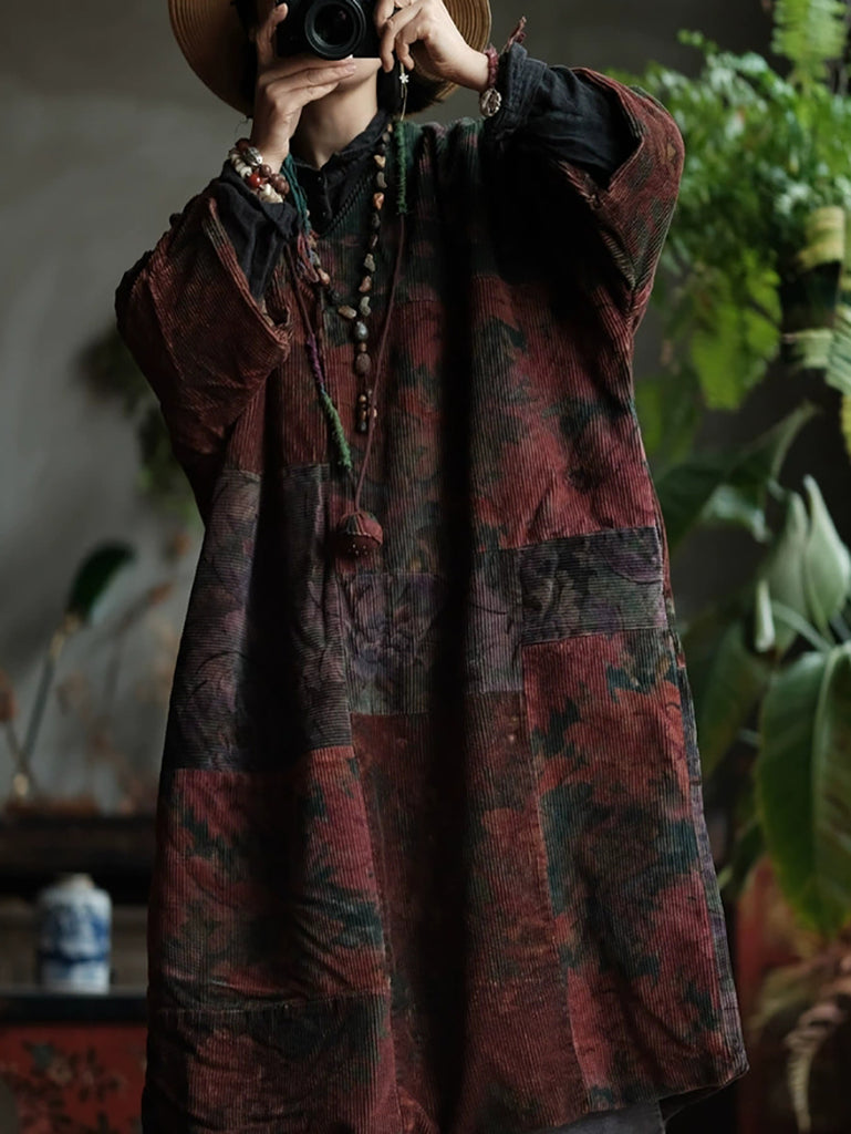 Crafted from premium cotton, this vintage-inspired padded coat combines timeless elegance with practical warmth. The distinctive floral pattern adds character, while the V-neck collar and raglan sleeves create a flattering silhouette. Full-length sleeves provide comprehensive coverage for cooler months. Perfect for autumn and winter layering, this retro piece seamlessly transitions between seasons while maintaining sophisticated style.