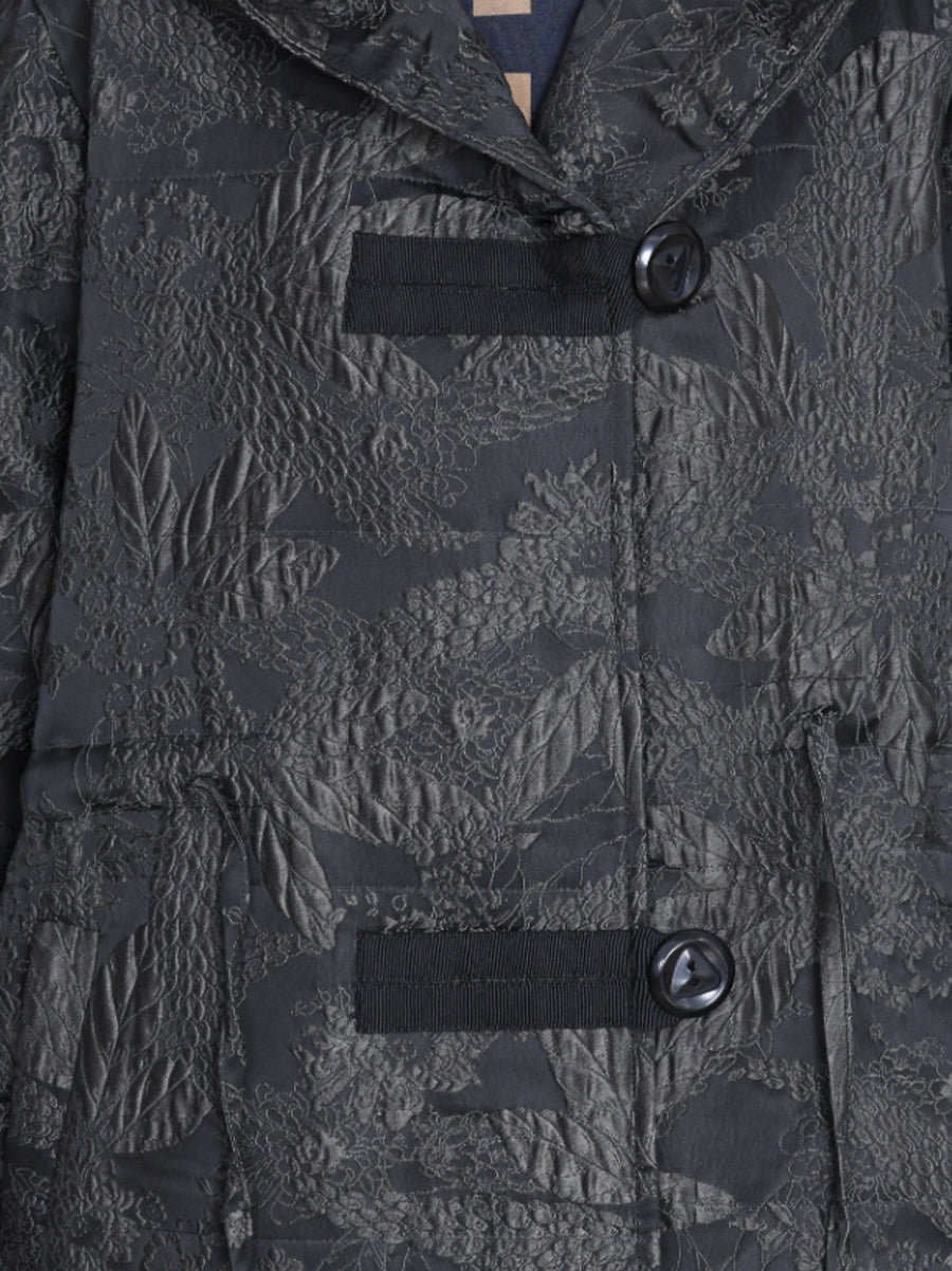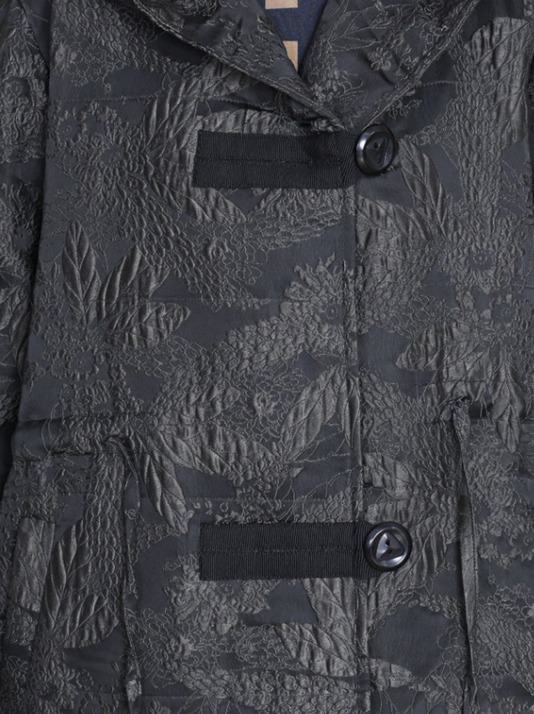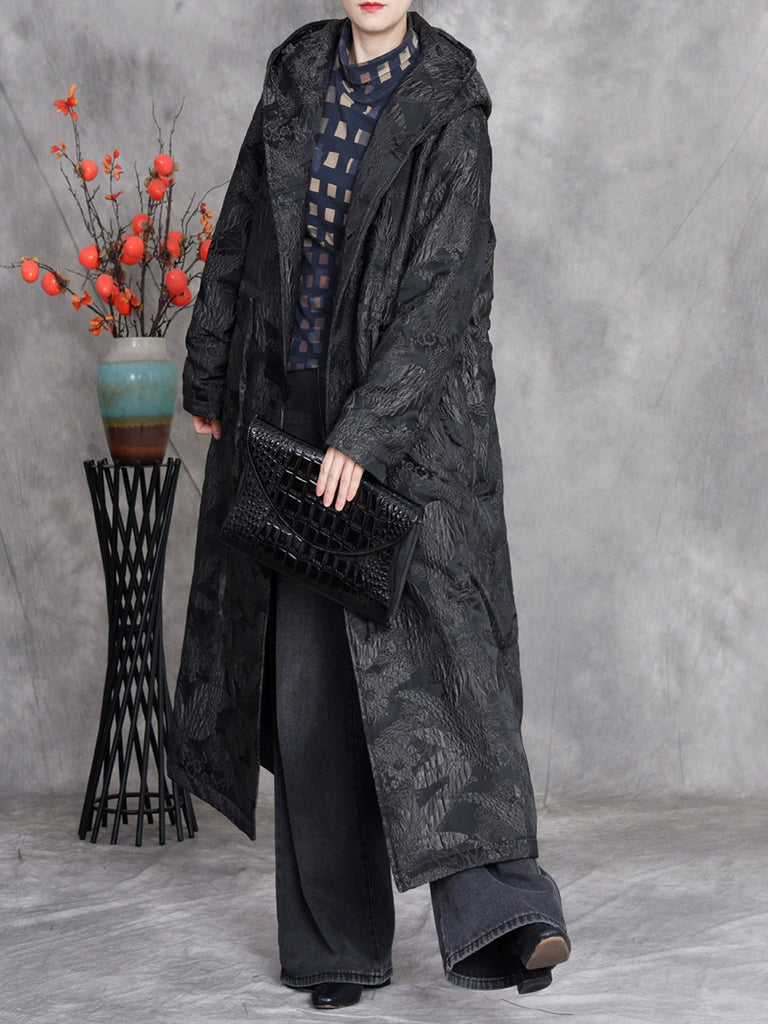 Women Vintage Winter Flower Jacquard Hooded Padded Coat