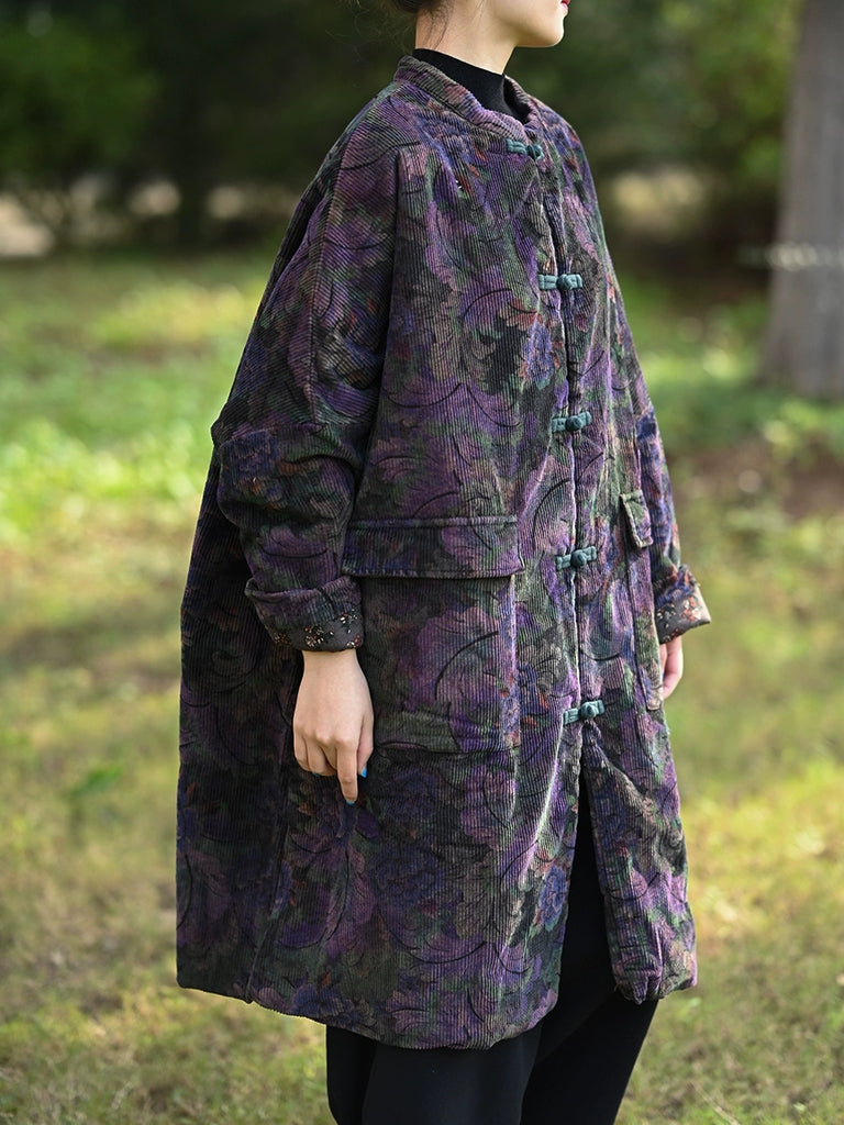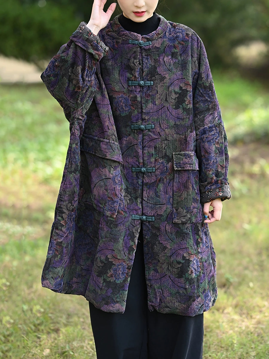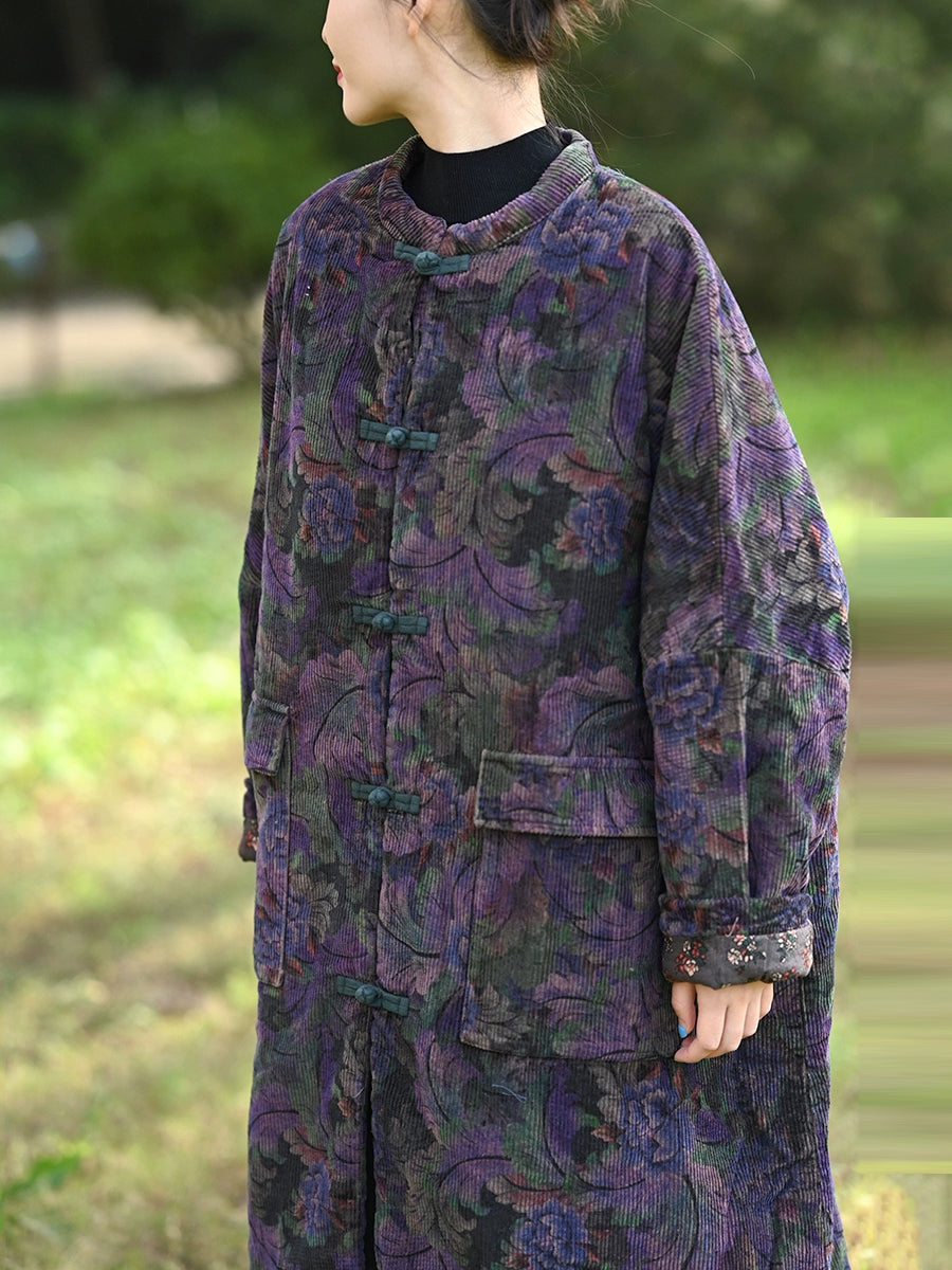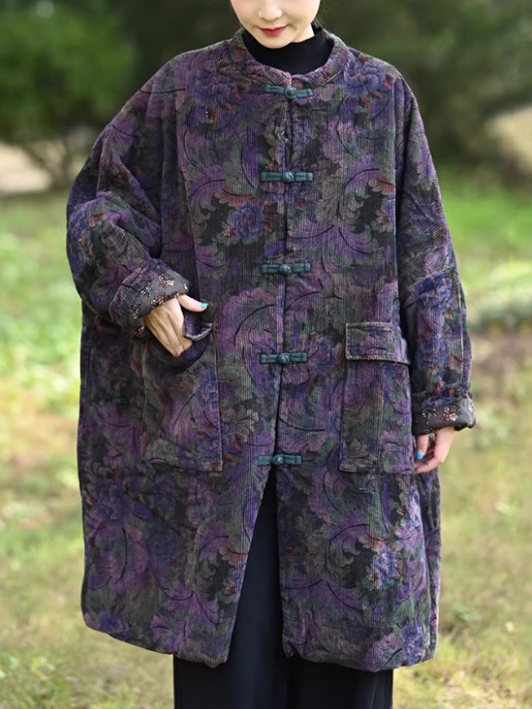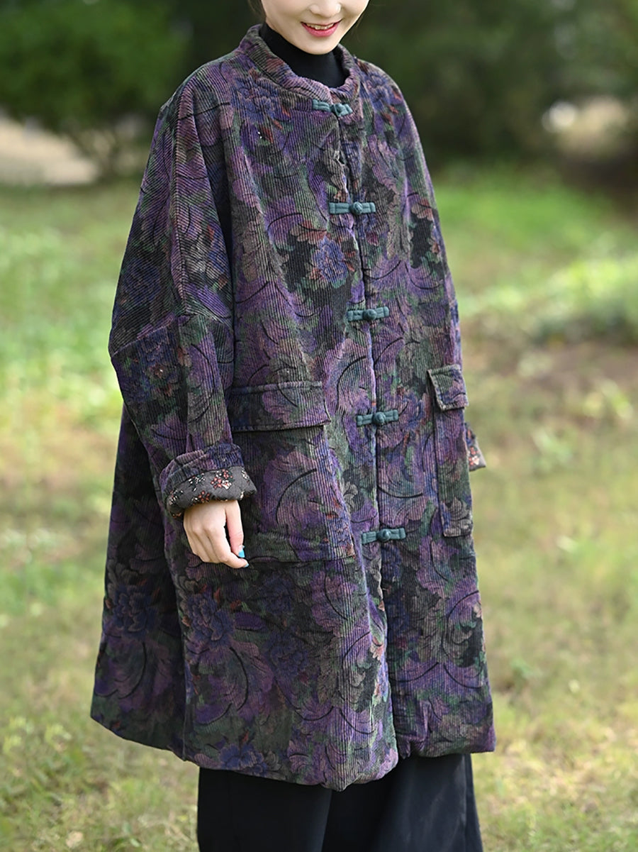 Women Vintage Winter Flower Stand Collar Padded Coat