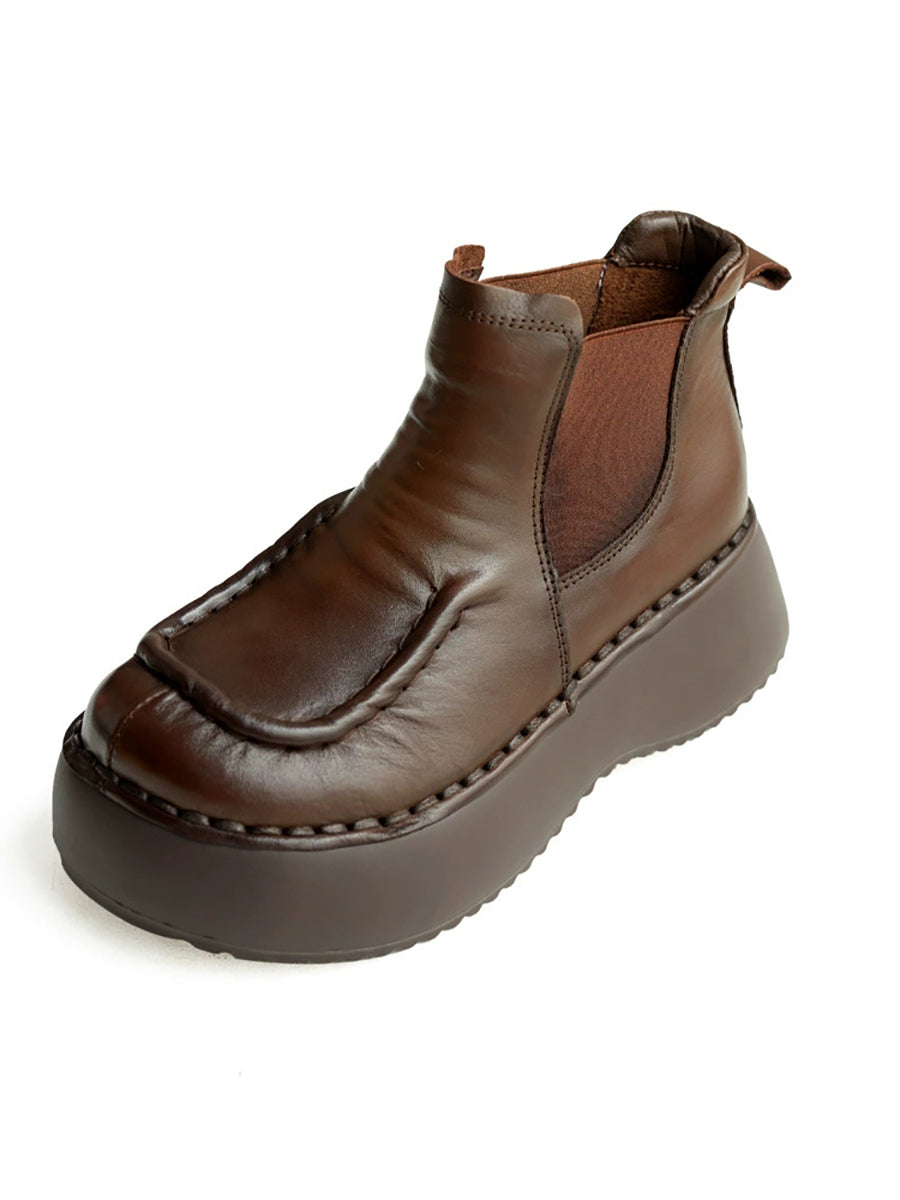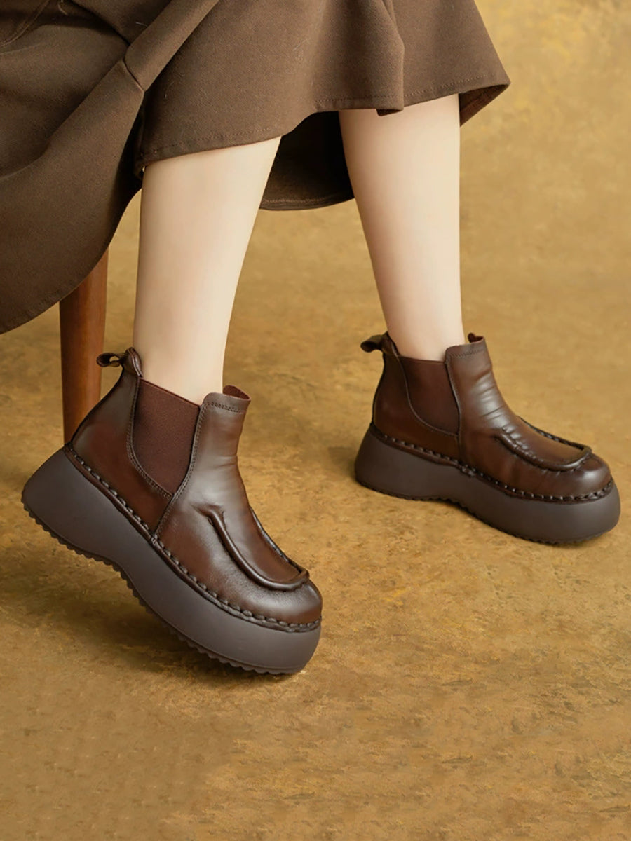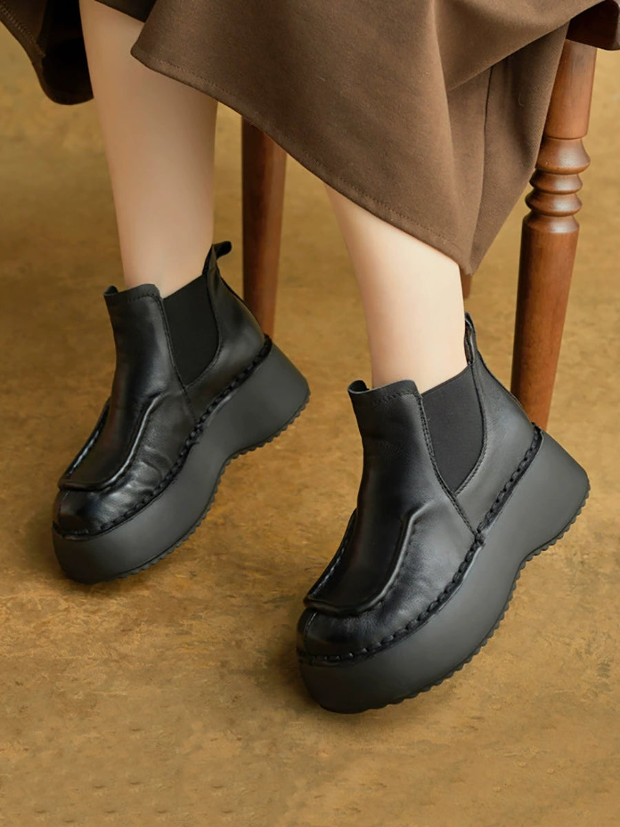 Women Winter Casual Genuine Leather Spliced Platform Boots