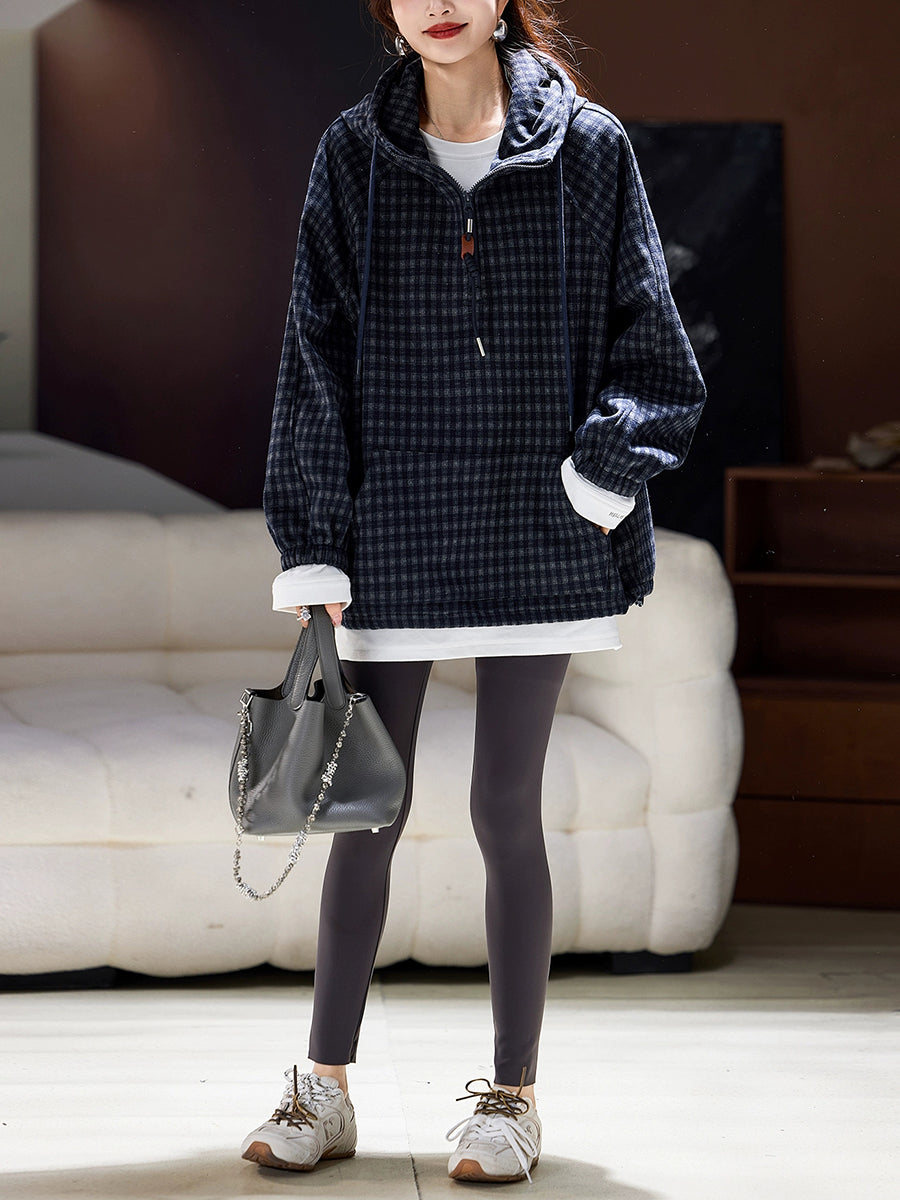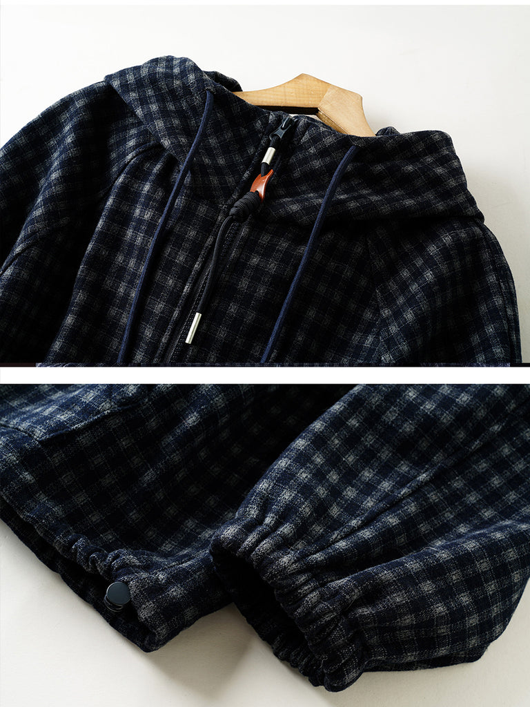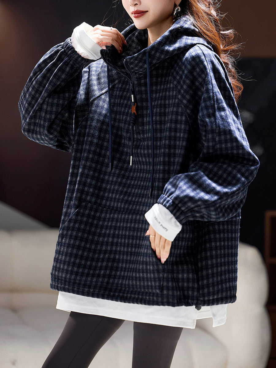 Women Winter Casual Plaid Fleece-lined Hooded Padded Coat