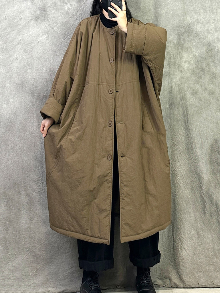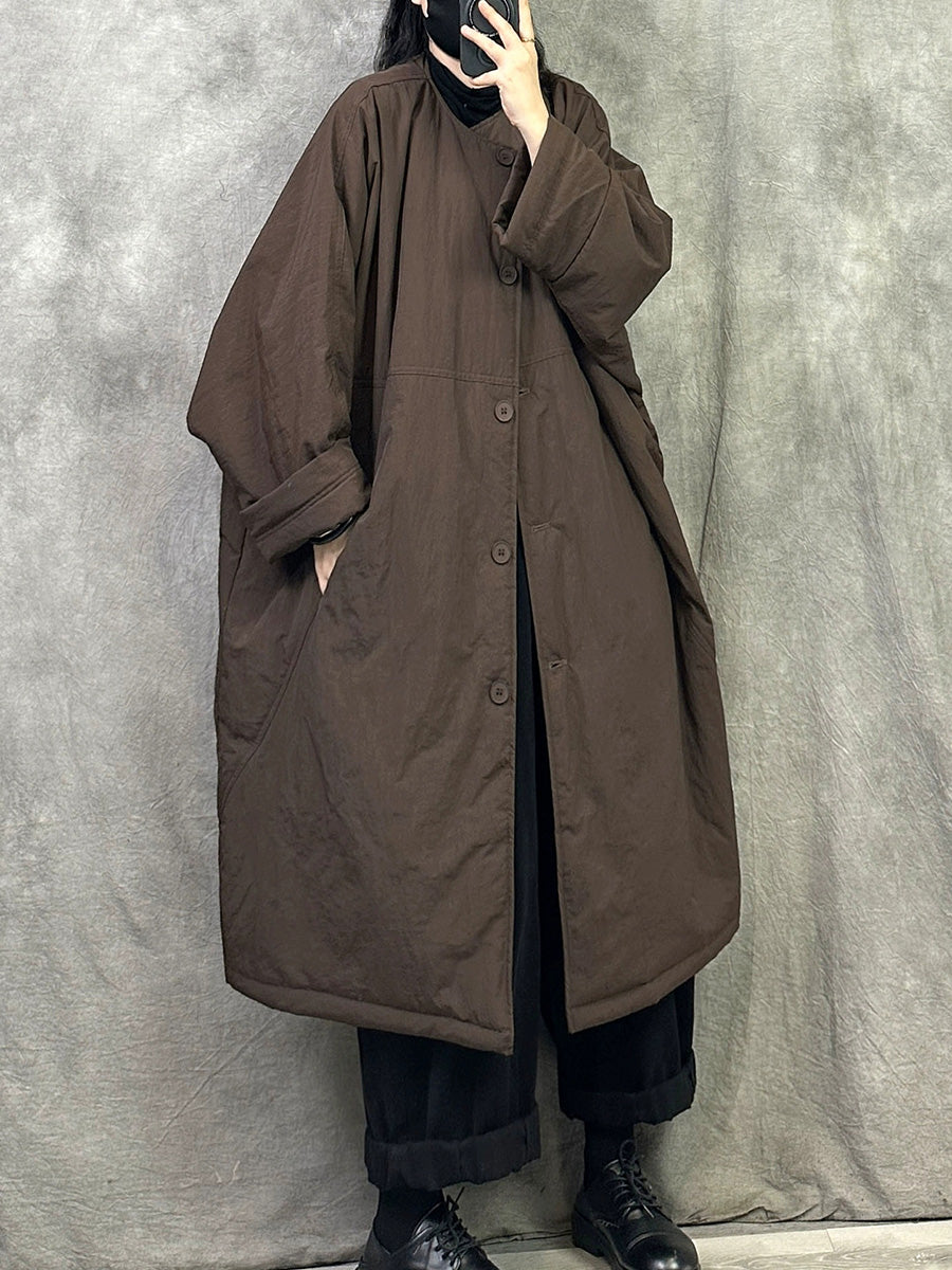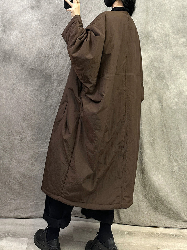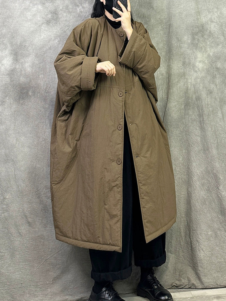 Women Winter Casual Pure Color O-Neck Long Padded Coat