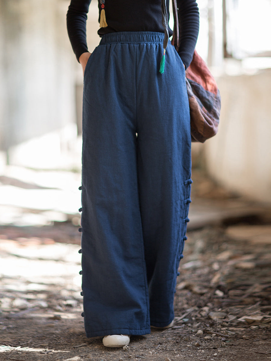 Women Winter Ethnic Pure Color Padded Straight Pants
