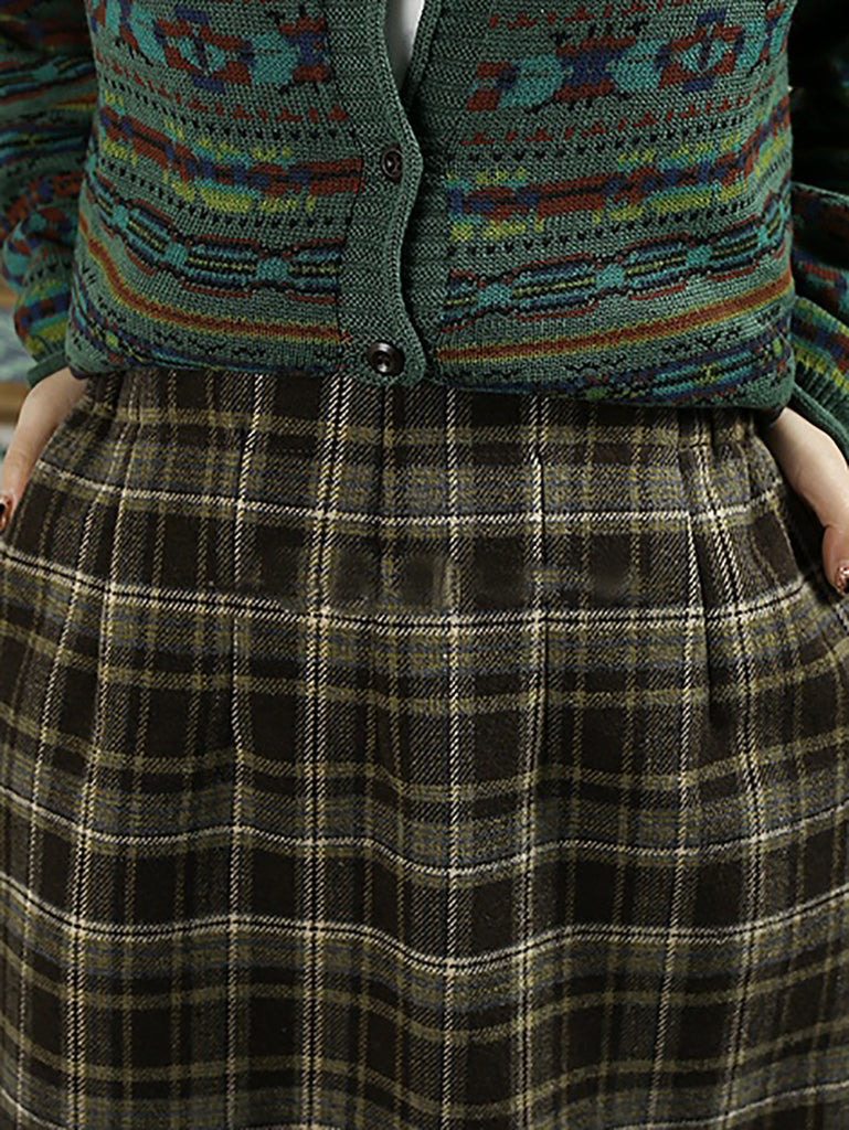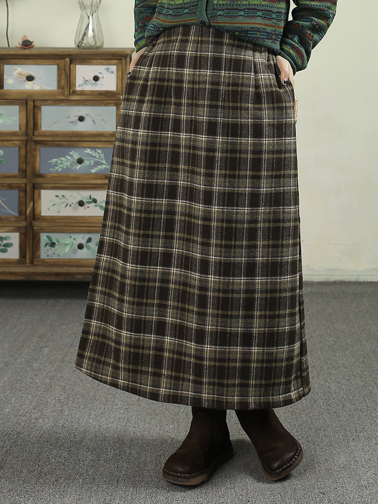 Women Winter Fleece-lined Plaid A-Shape Skirt