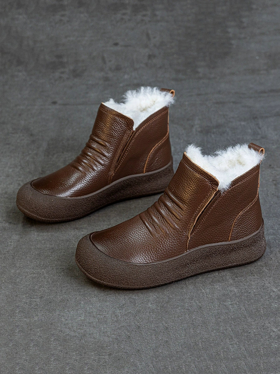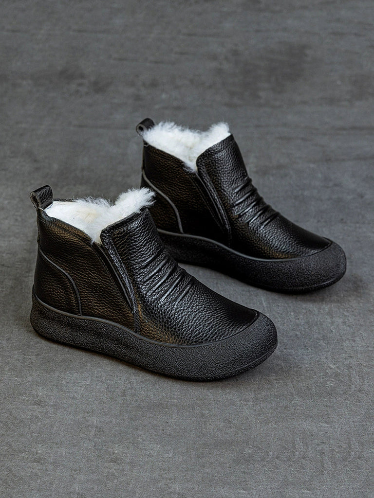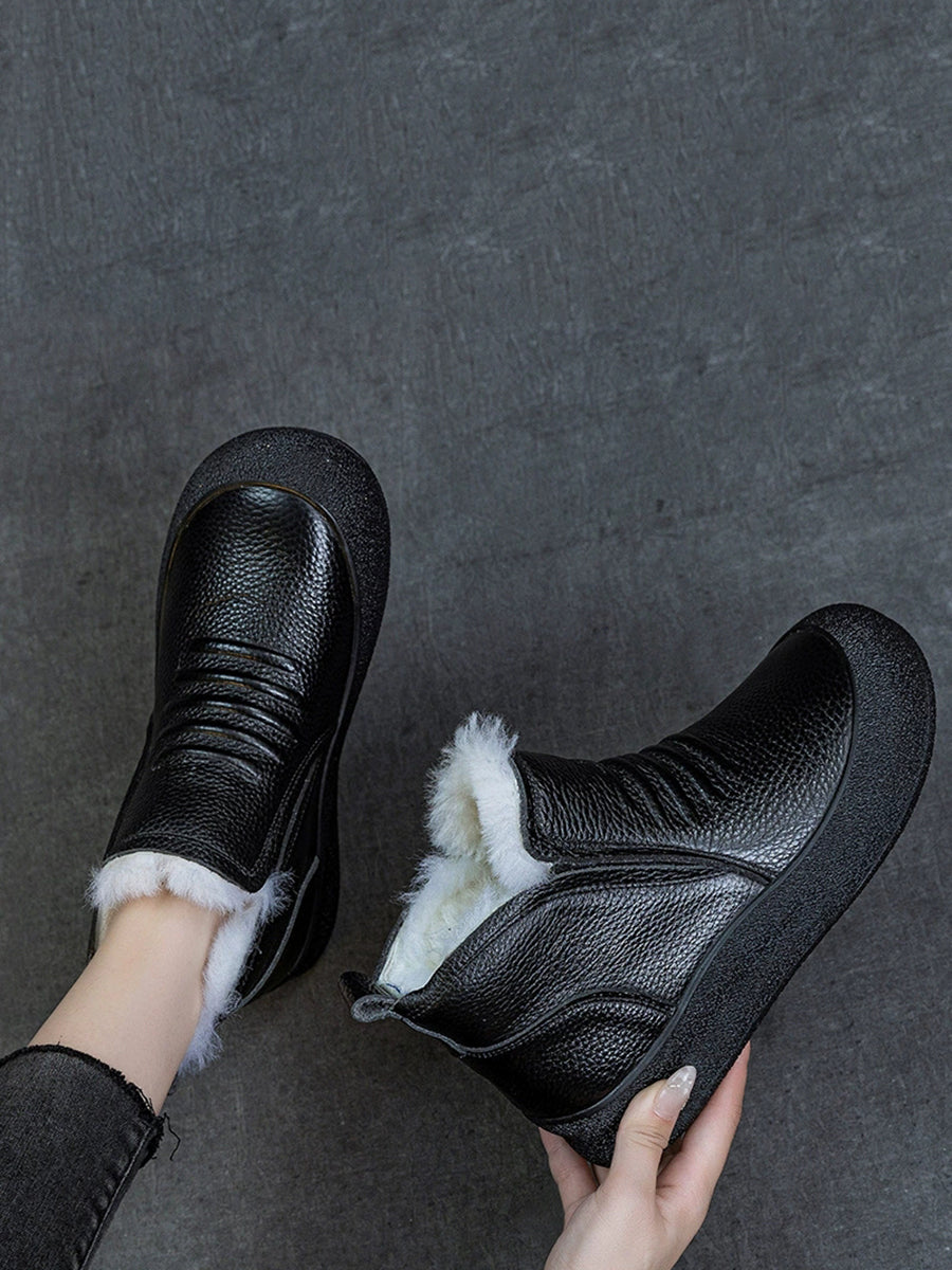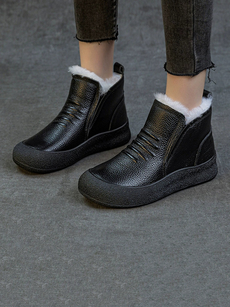 Women Winter Genuine Leather Fleece-lined Ankle Boots