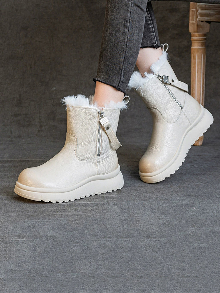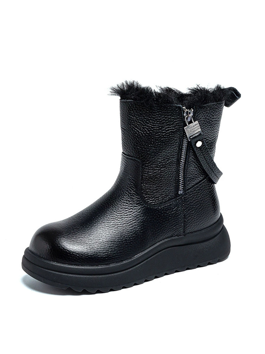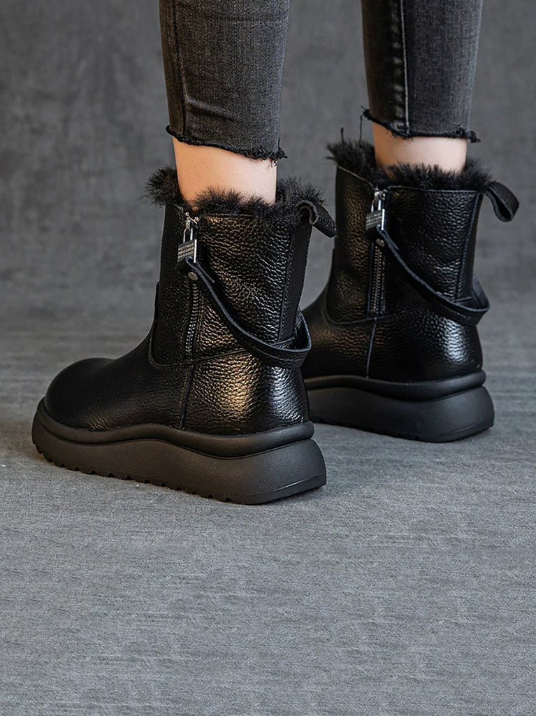 Women Winter Genuine Leather Fleece-lined Boots
