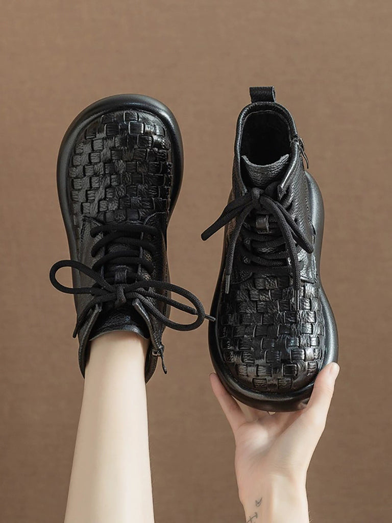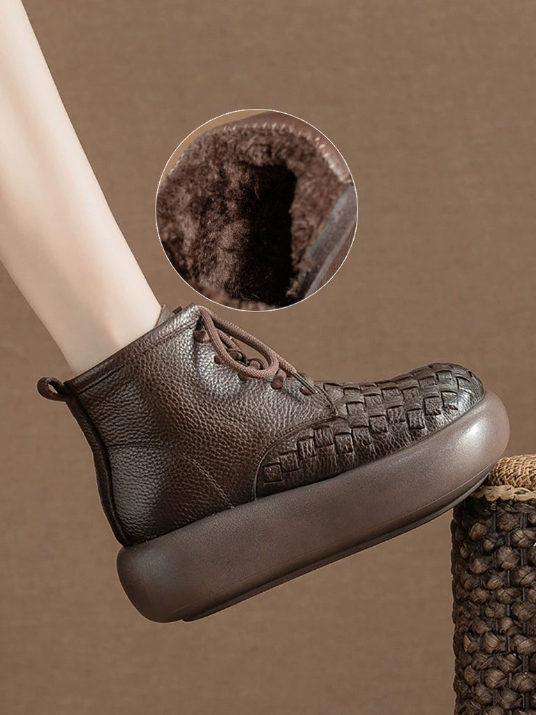Women Winter Genuine Leather Fleece-lined Platform Ankle Boots