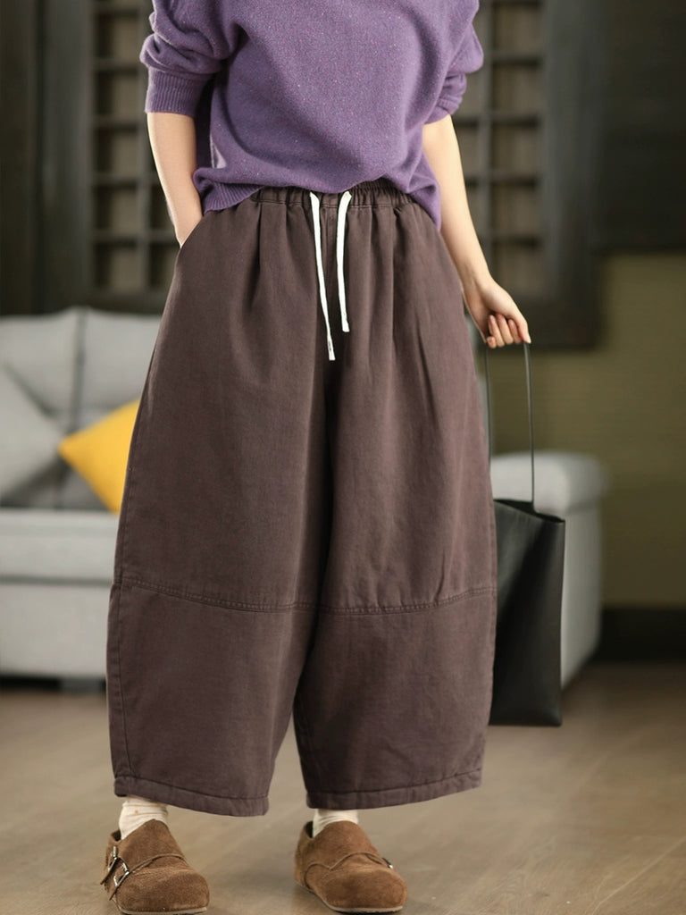 Women Winter Pure Color 100%Cotton Padded Harem Pants