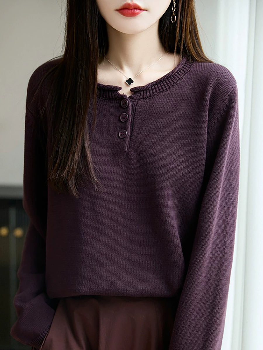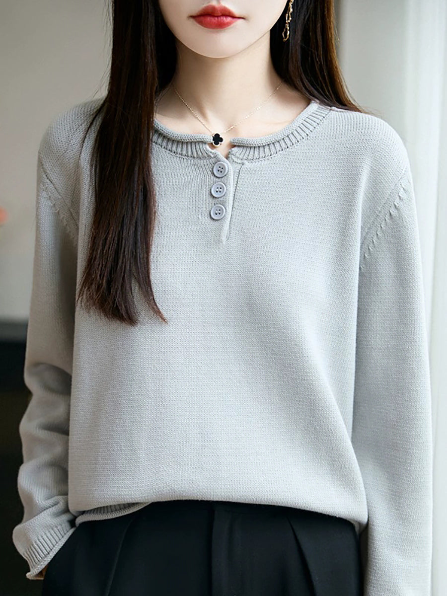Women Winter Pure Color O-Neck Knitted 100%Cotton Sweater