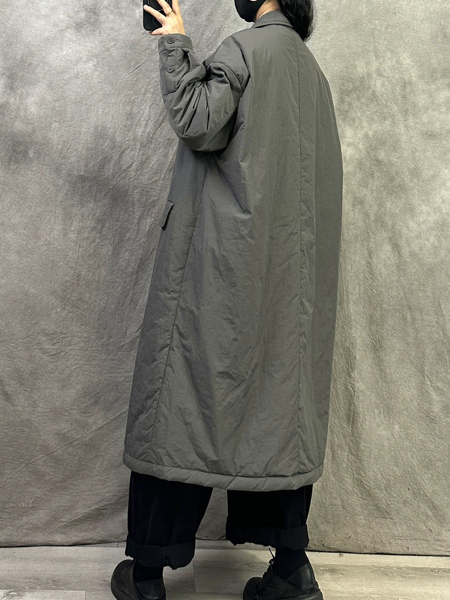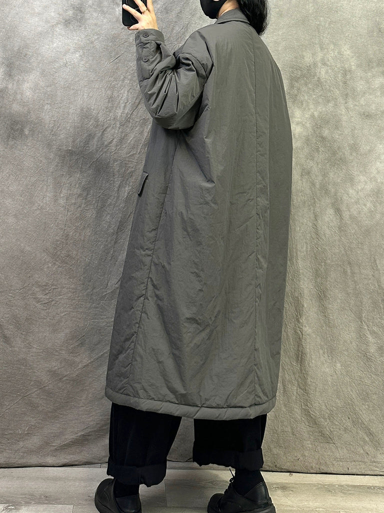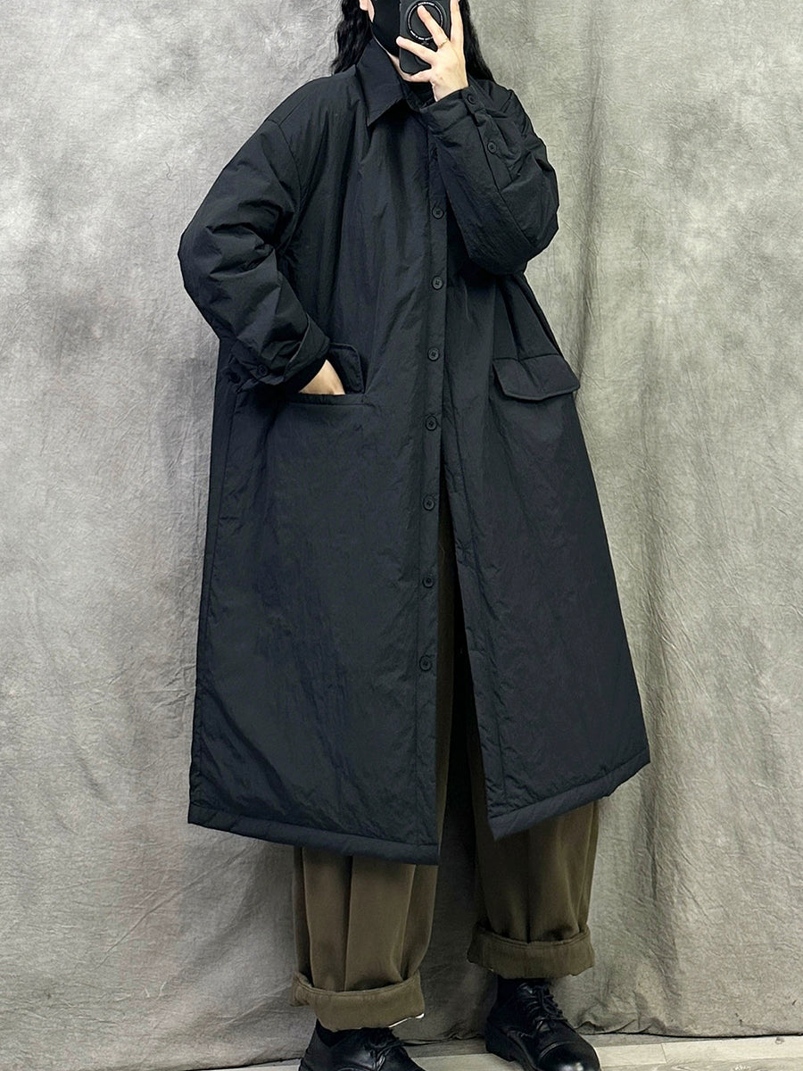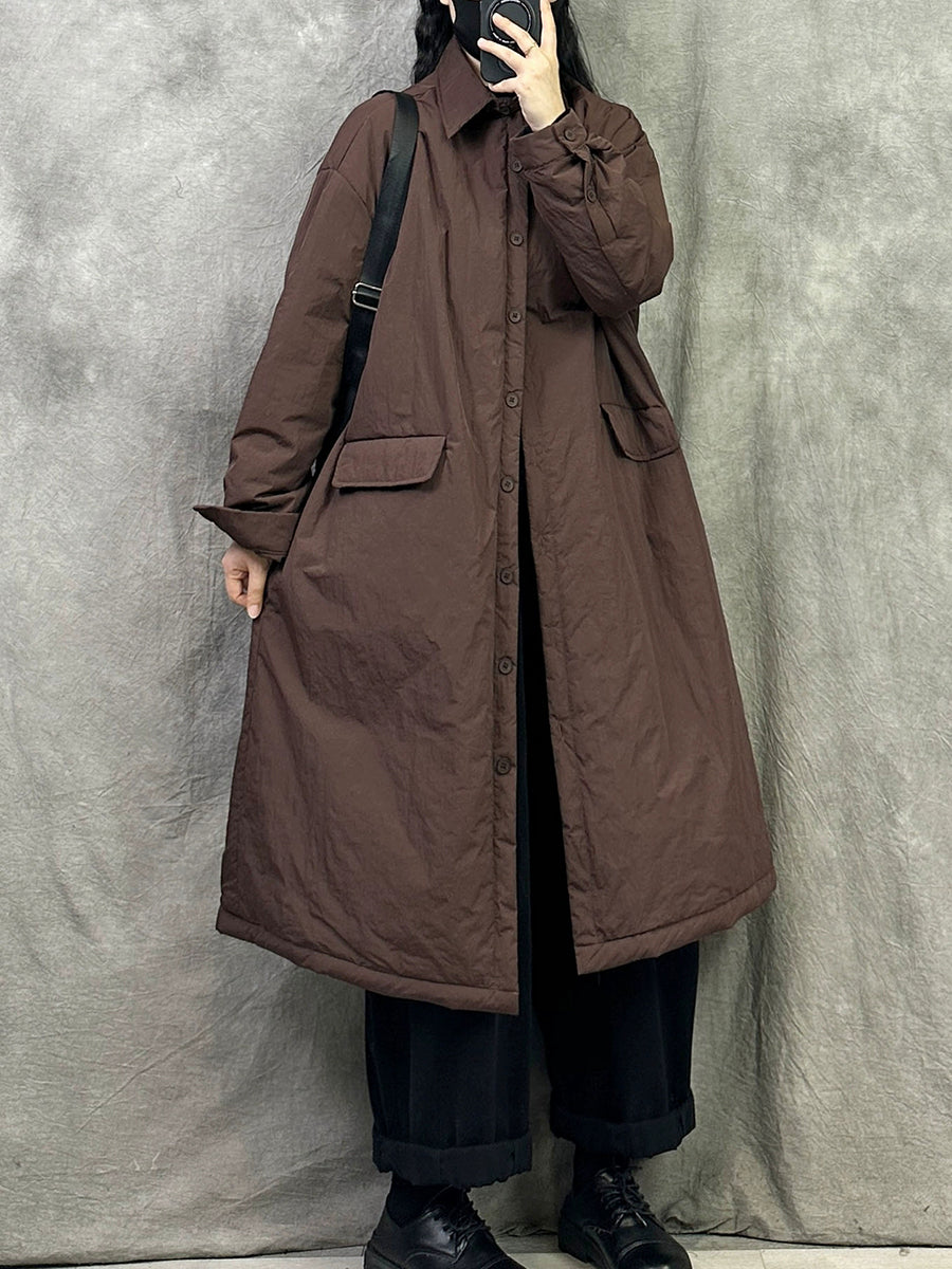 Women Winter Pure Color Turn-down Collar Padded Overcoat