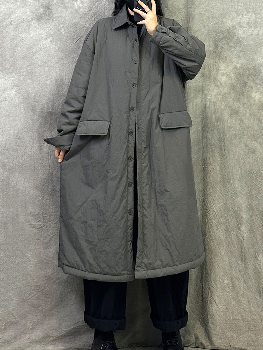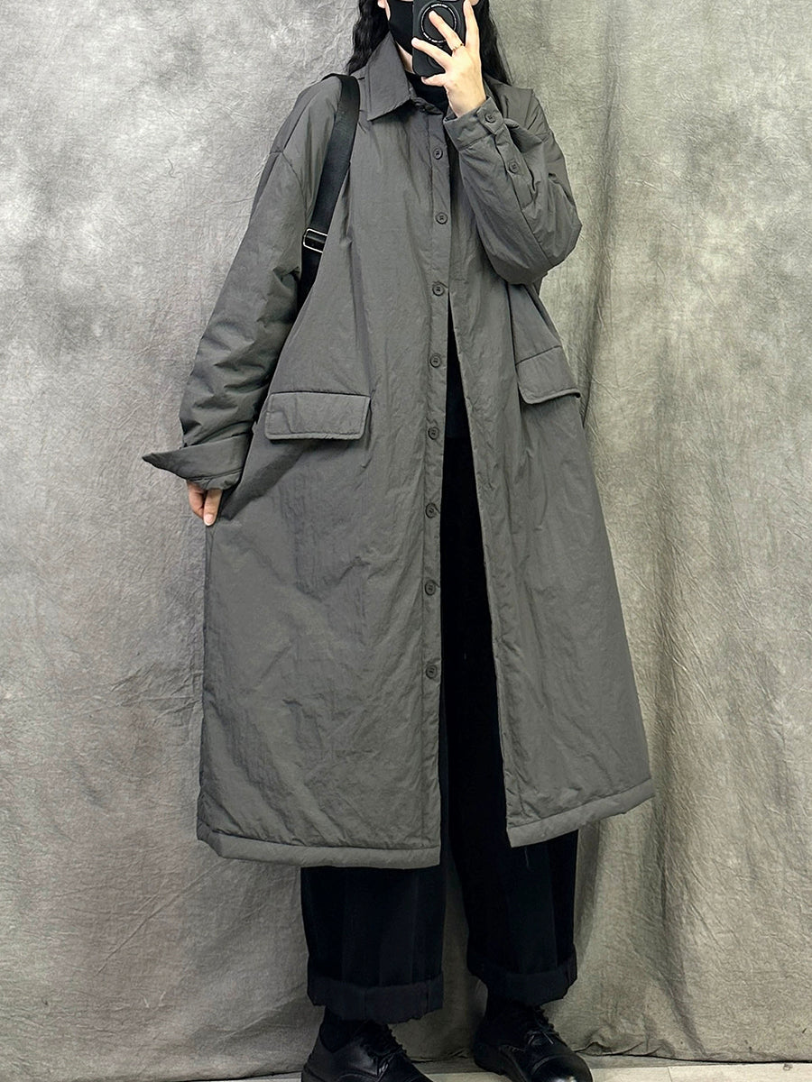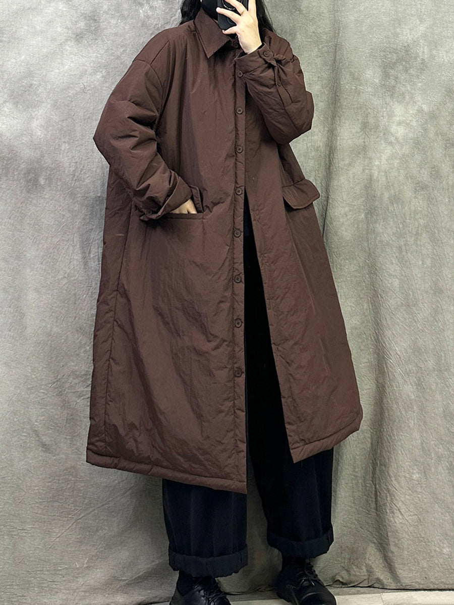 Women Winter Pure Color Turn-down Collar Padded Overcoat