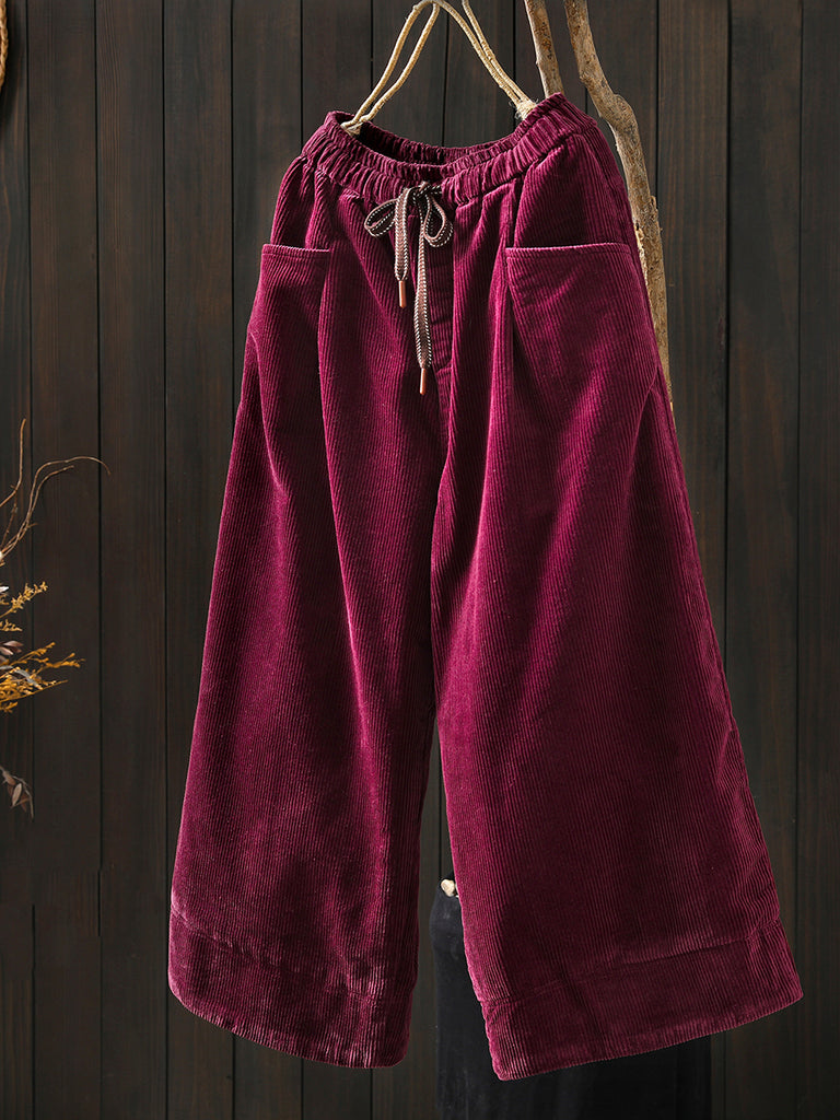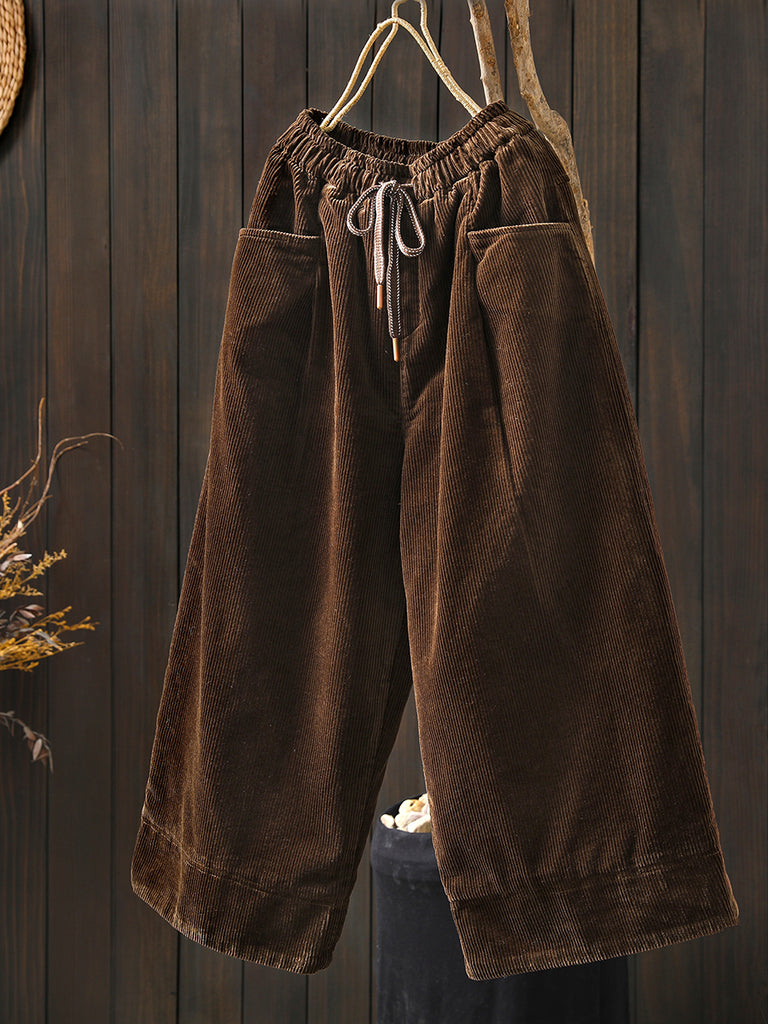 Women Winter Retro Corduroy Padded Wide-leg Pants